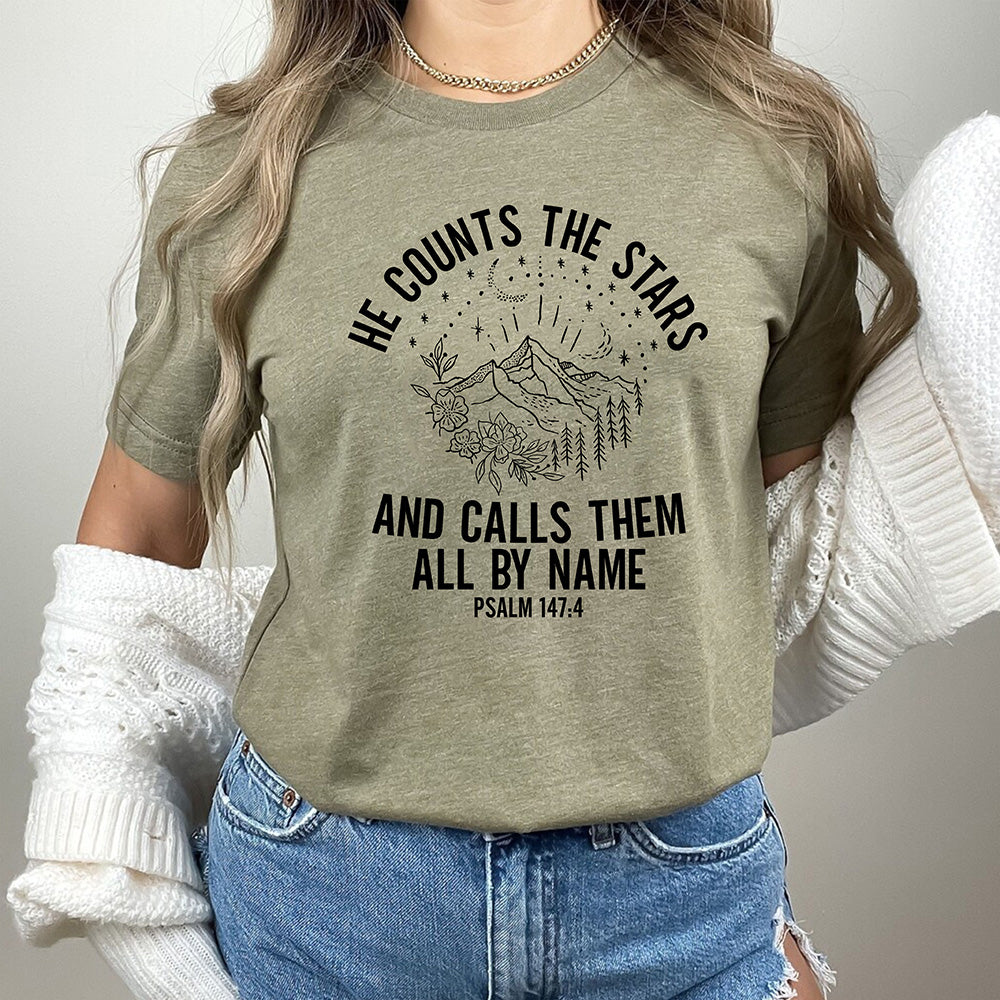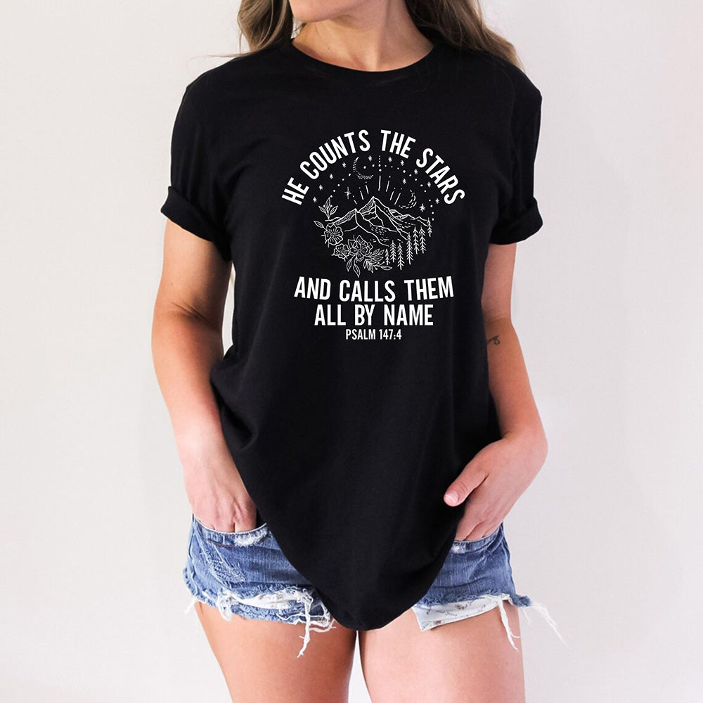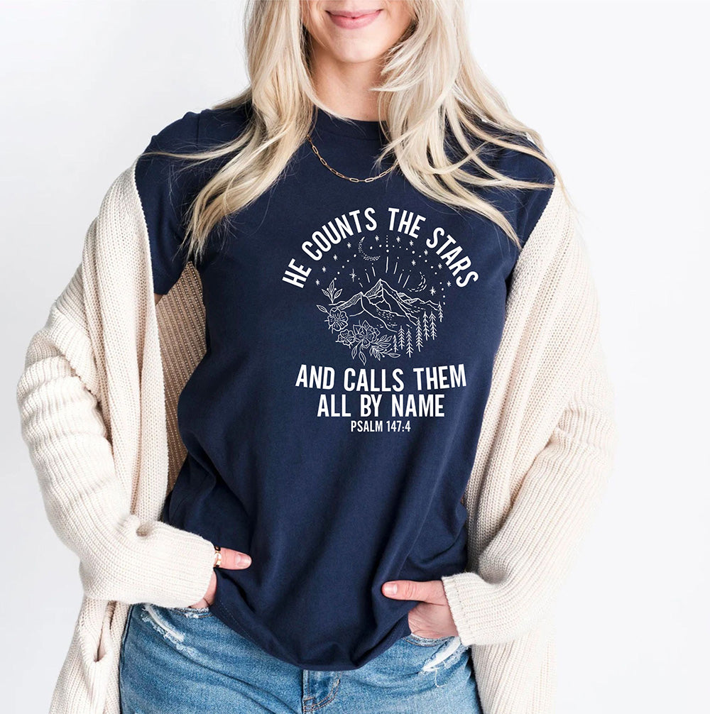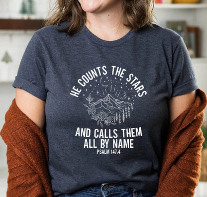 He Counts The Stars And Calls Them By Name Bible Verse Christian Shirt