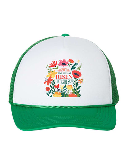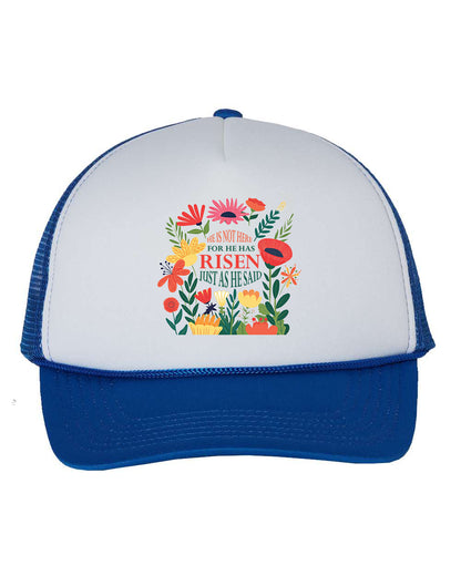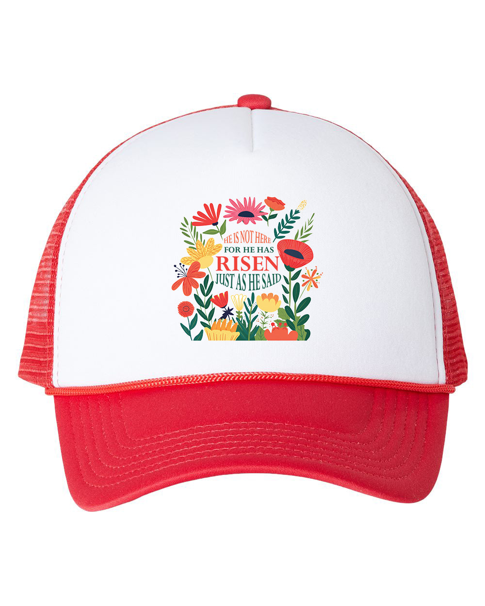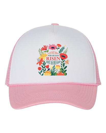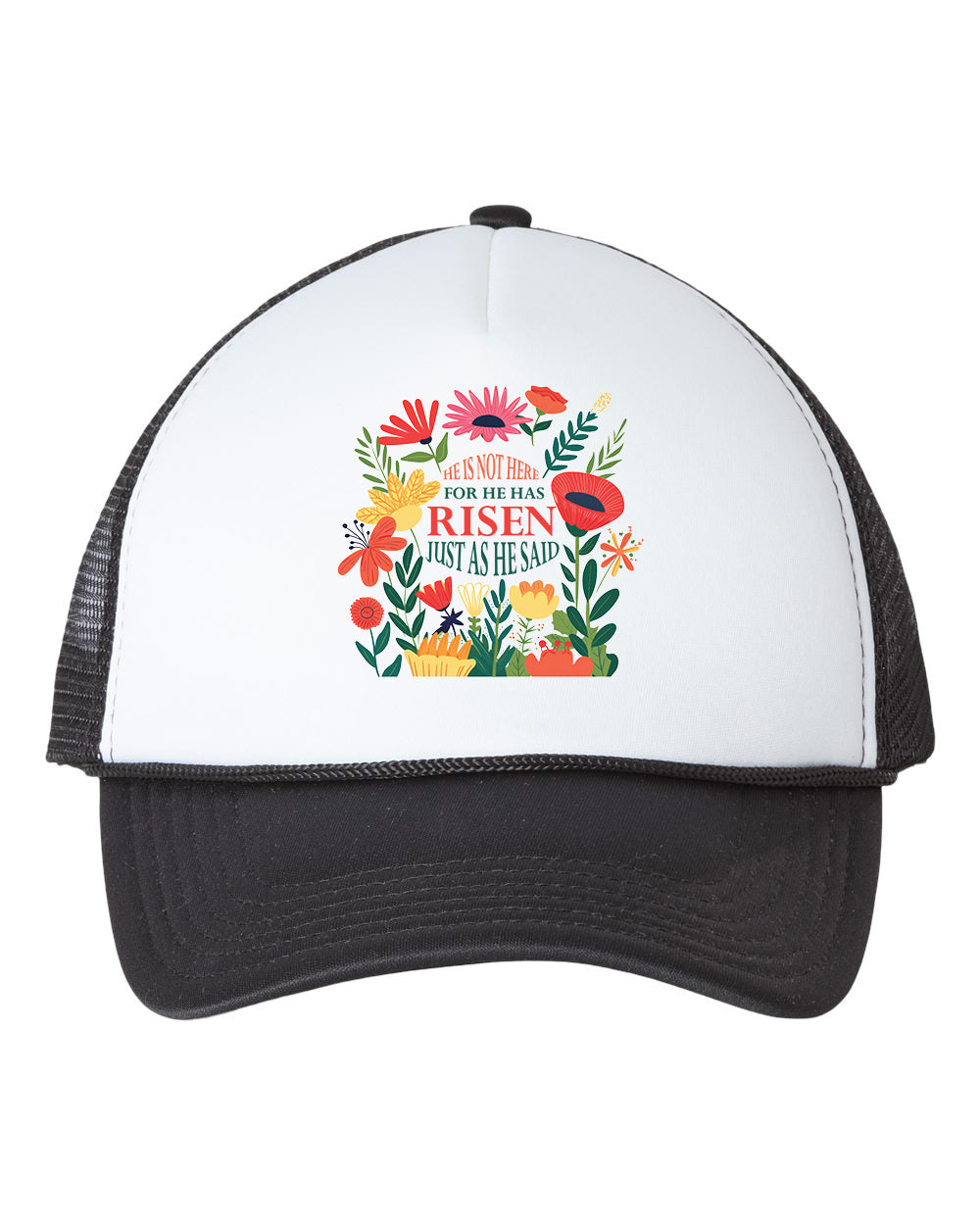 This He Has Risen Floral Christian Trucker Cap is perfect for those who want to display their faith in a stylish way. With a beautiful floral design and the uplifting message "He Has Risen," this cap is a great addition to any outfit. Made with high quality materials, it offers both comfort and durability.