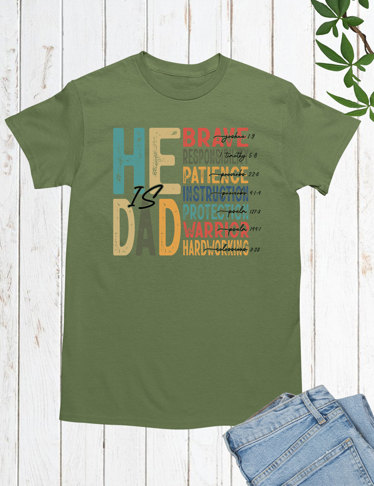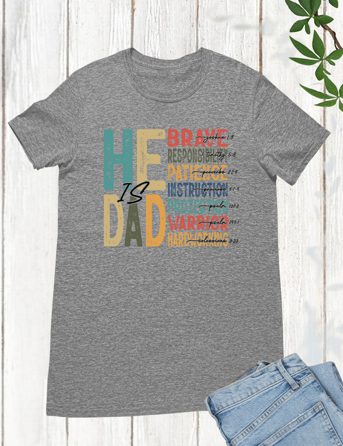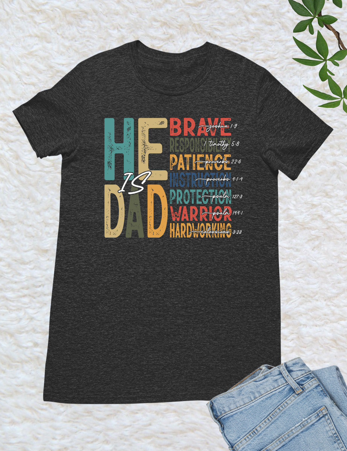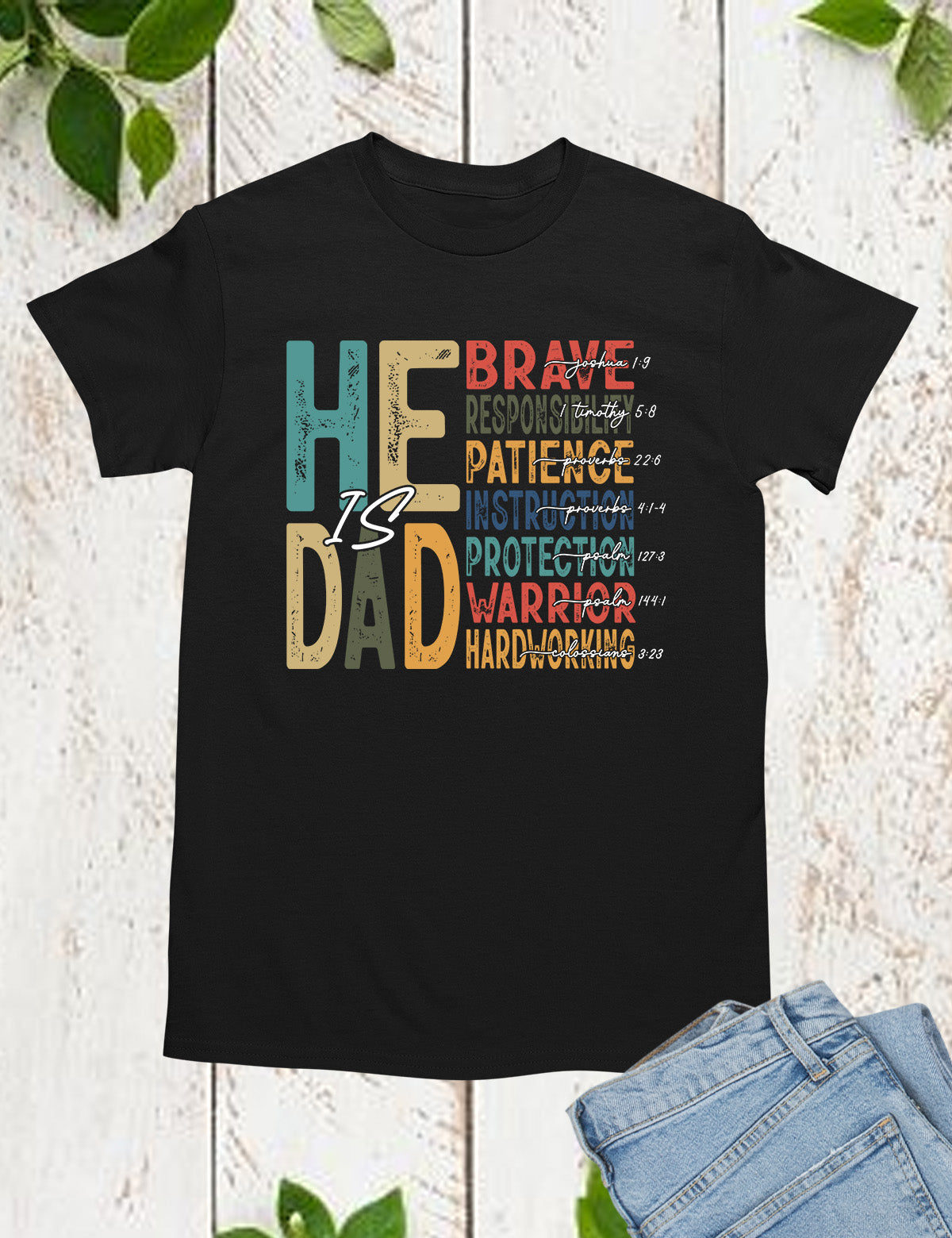 Celebrate the important role of being a father with our "He is Dad" Bible Verse T Shirts. Made with high-quality materials, this shirt serves as a reminder of the love and guidance a father offers. Share your faith and honor your dad with this stylish and meaningful t-shirt.