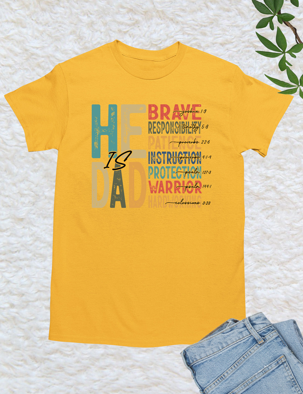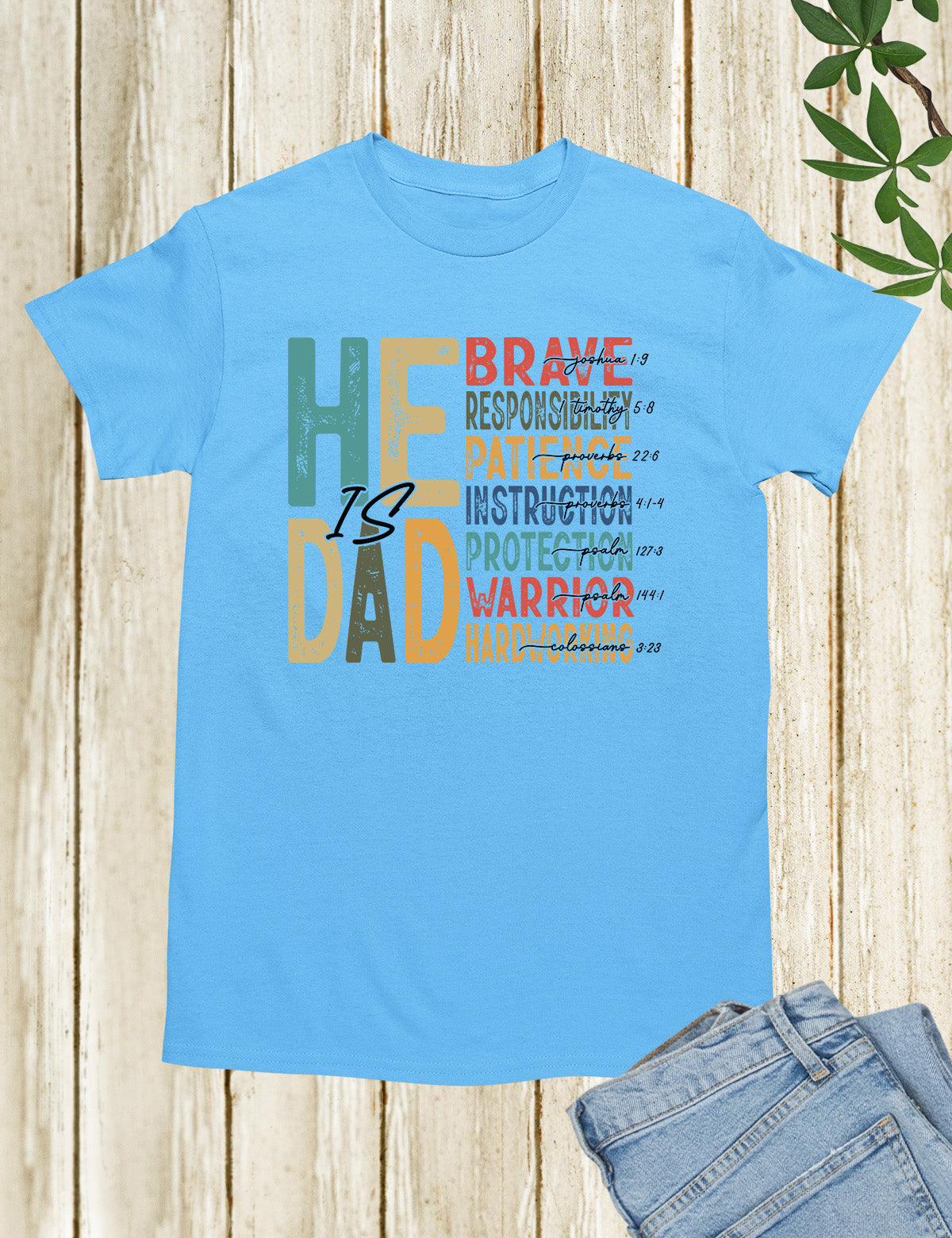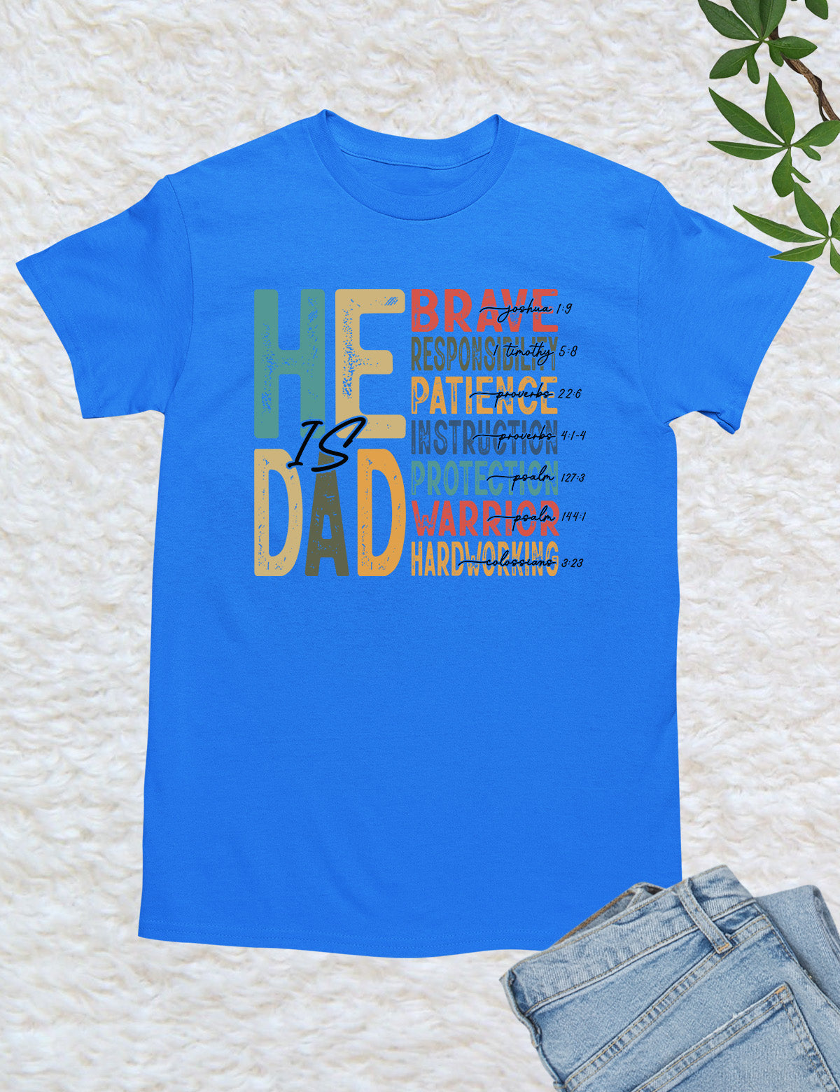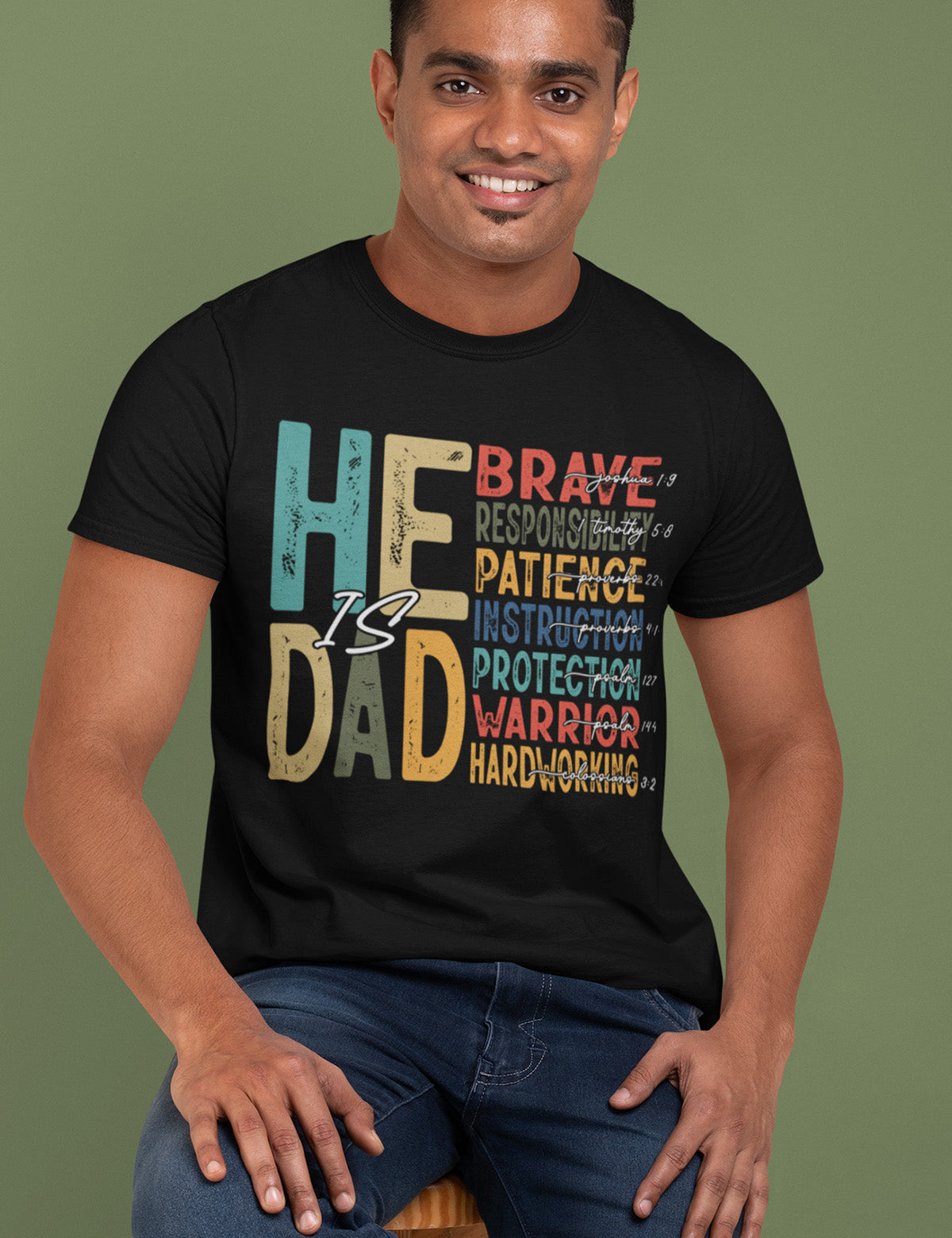 Celebrate the important role of being a father with our "He is Dad" Bible Verse T Shirts. Made with high-quality materials, this shirt serves as a reminder of the love and guidance a father offers. Share your faith and honor your dad with this stylish and meaningful t-shirt.