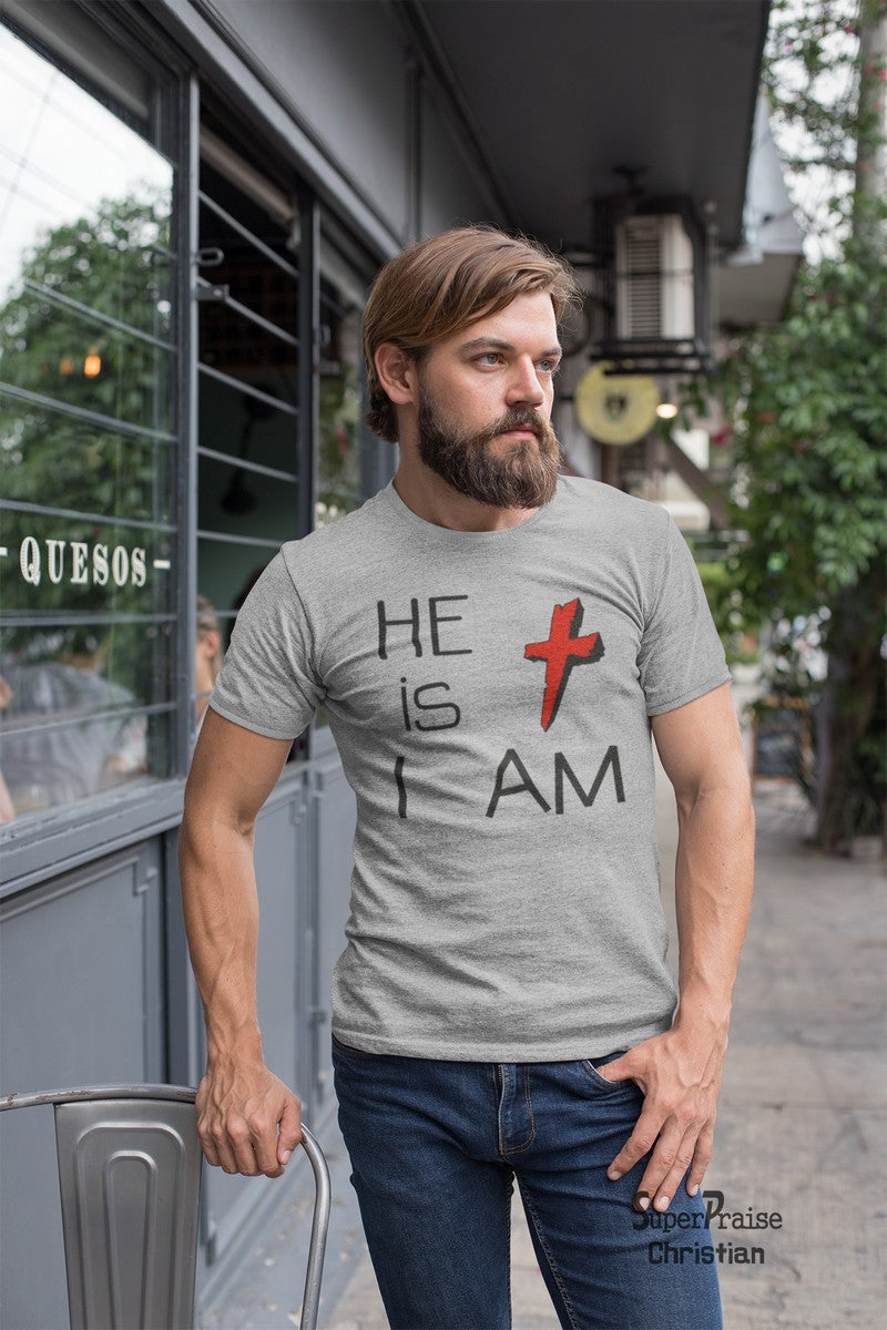 He is I am Christian T Shirt - Show your faith with this inspiring t-shirt. Made with high-quality fabric and designed for comfort, this shirt is perfect for wearing to church or in everyday life. It features a simple yet powerful message that will help start conversations and spread the word of God.