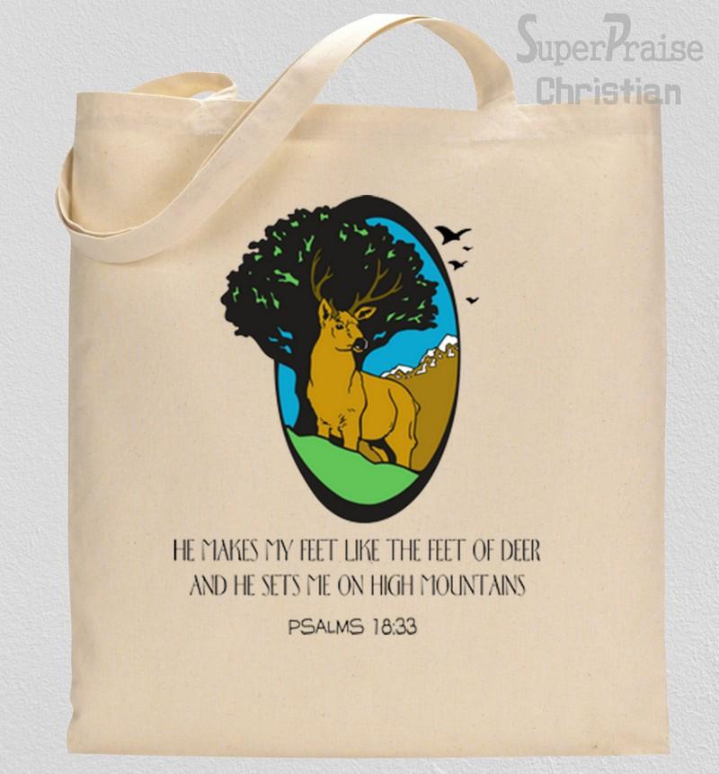 He Makes My Feet Like the Feet of Deer Tote Bag