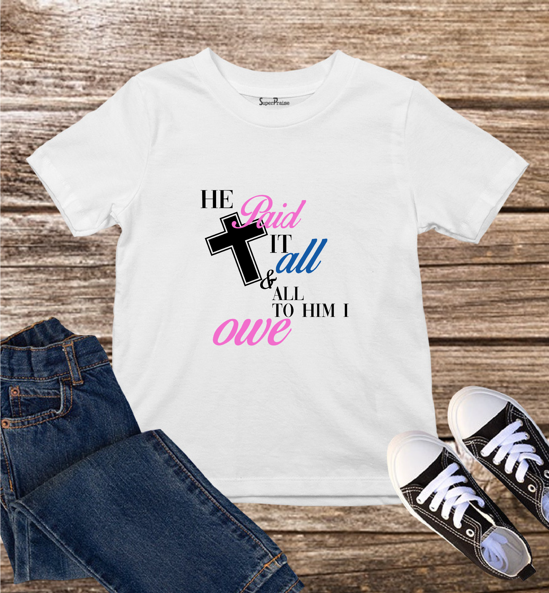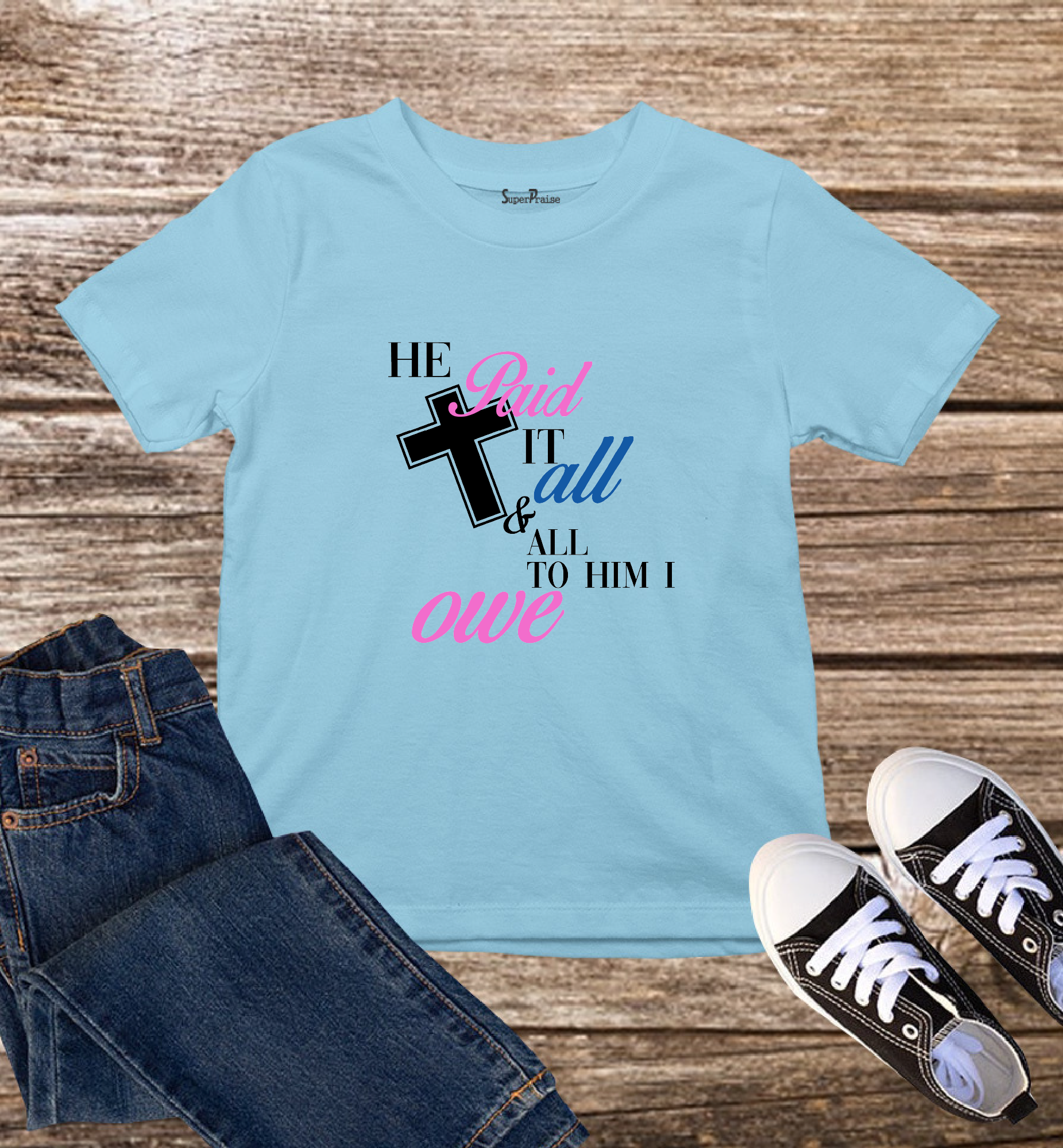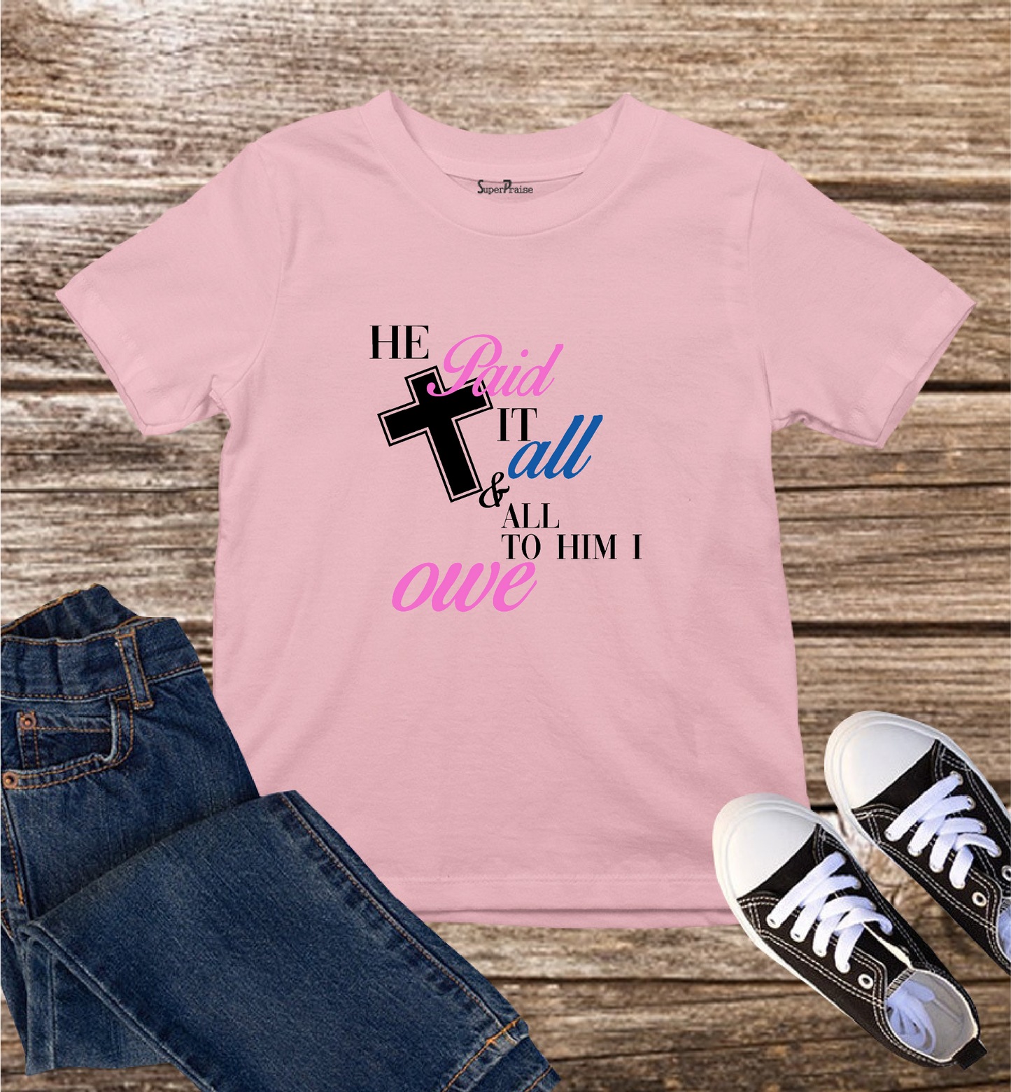 He Paid it Kids T Shirt is cool stylish and comfy to wear while proclaiming the gospel of Christ. This Christian children t shirts come in unisex style for boys and girls.