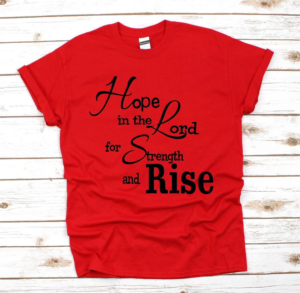 This t-shirt serves as a daily reminder to have hope in the Lord for strength and rise above any challenges. Made with high-quality materials, it offers comfortable wear and a powerful message. Perfect for those seeking inspiration and a boost of faith.