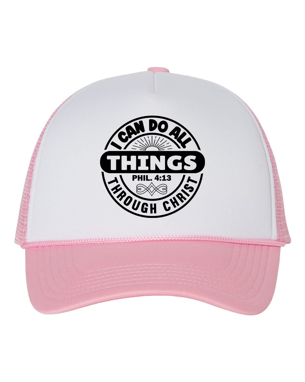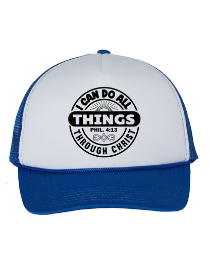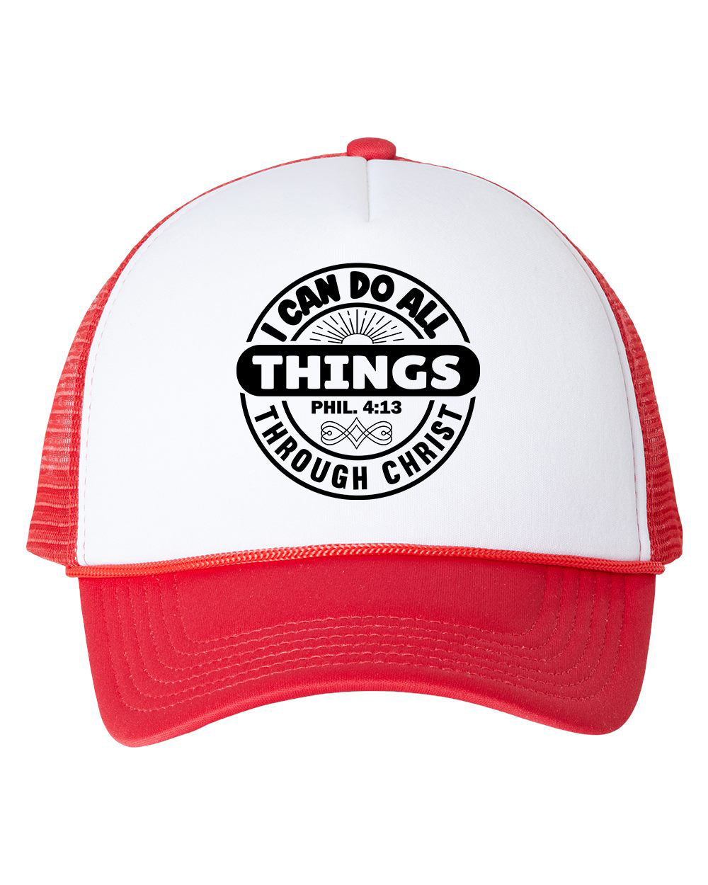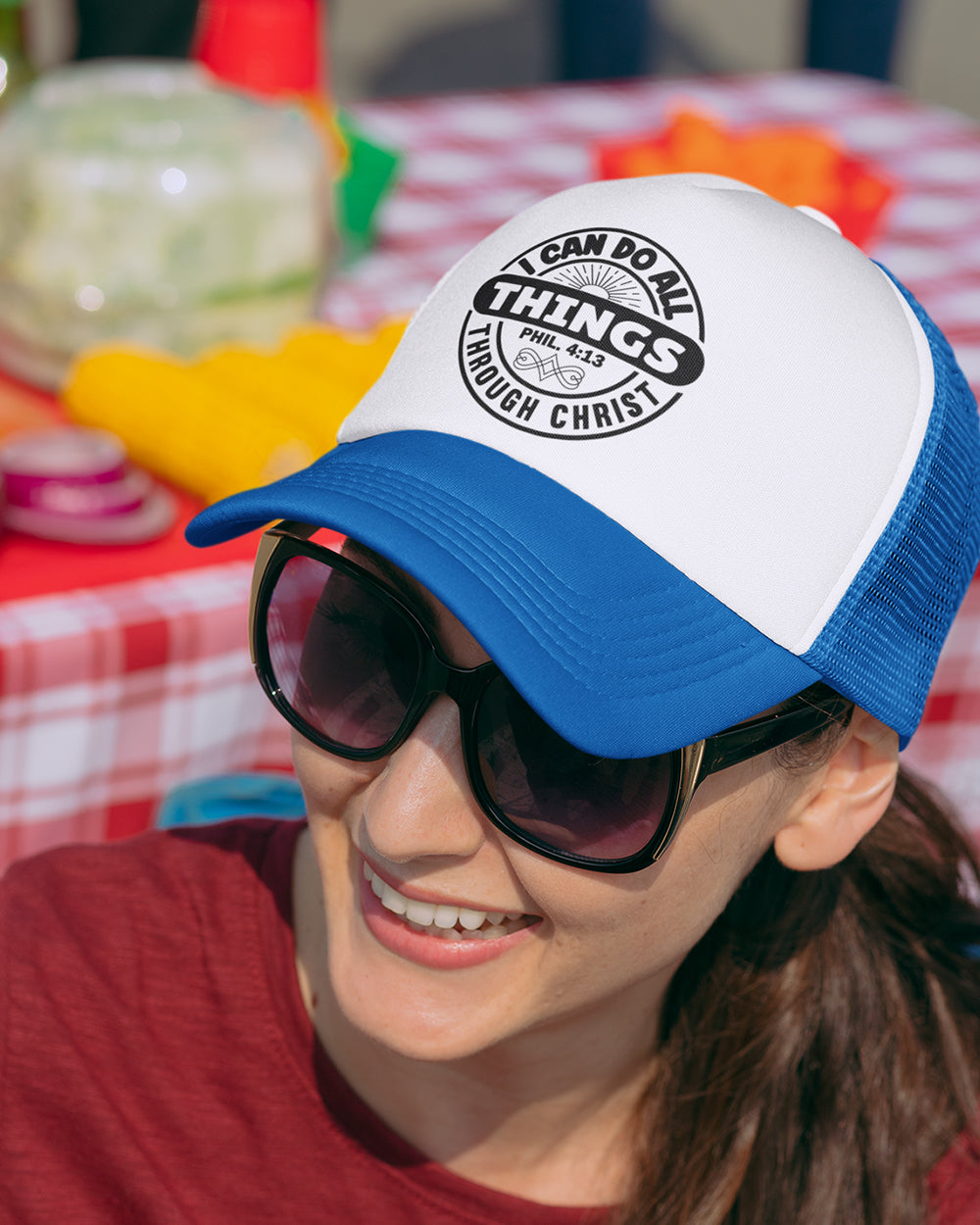 Stay inspired and motivated with the I Can Do All Things Through Christ Cap! This stylish trucker hat features a powerful message to remind you that nothing is impossible with faith. With a comfortable fit and durable design, you can wear this cap for any occasion and keep pushing through with the strength of Christ.
