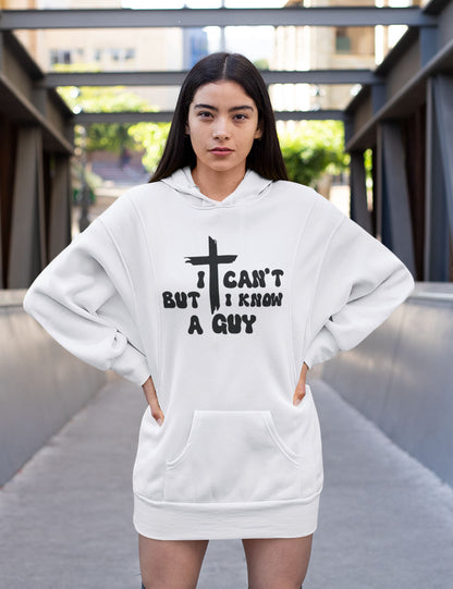 Stay warm and stylish with our I Can't But I Know a Guy Jesus Hoodie. Made with high-quality materials, this hoodie features a unique design that is perfect for both men and women. Show off your faith and fashion sense with this hoodie that will keep you cozy all day long.