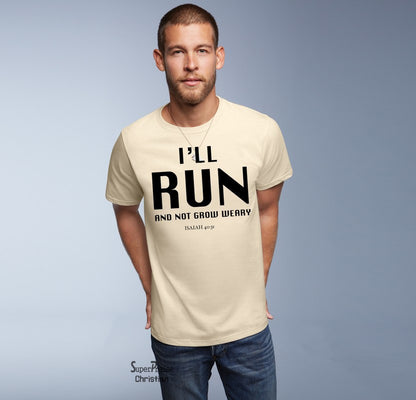 Stay motivated with the I Will Run Isaiah 40:31 T Shirt. This high-quality t-shirt features the uplifting message from the Bible verse Isaiah 40:31, reminding you to trust in the Lord and find strength in Him. Made with comfortable fabric, this shirt will keep you going on your daily runs.