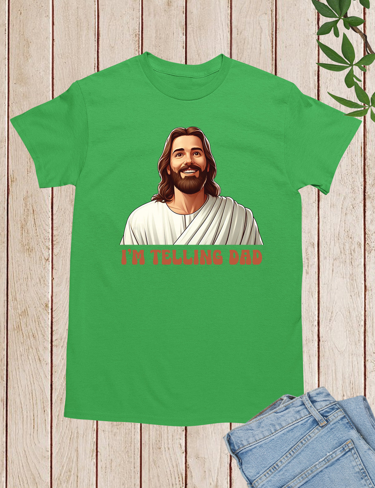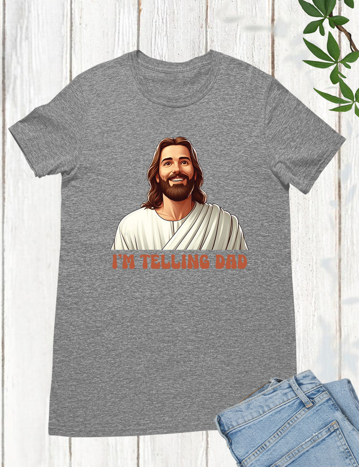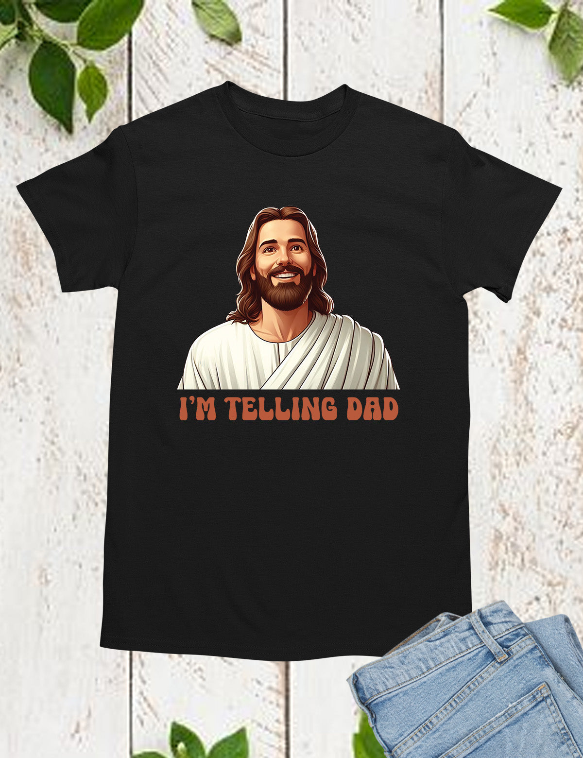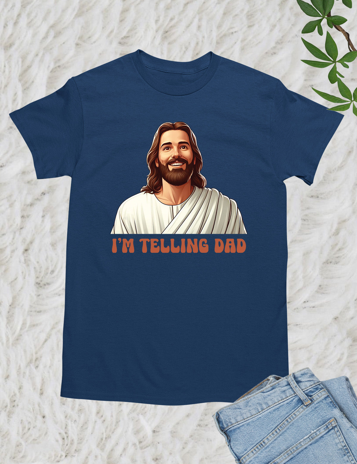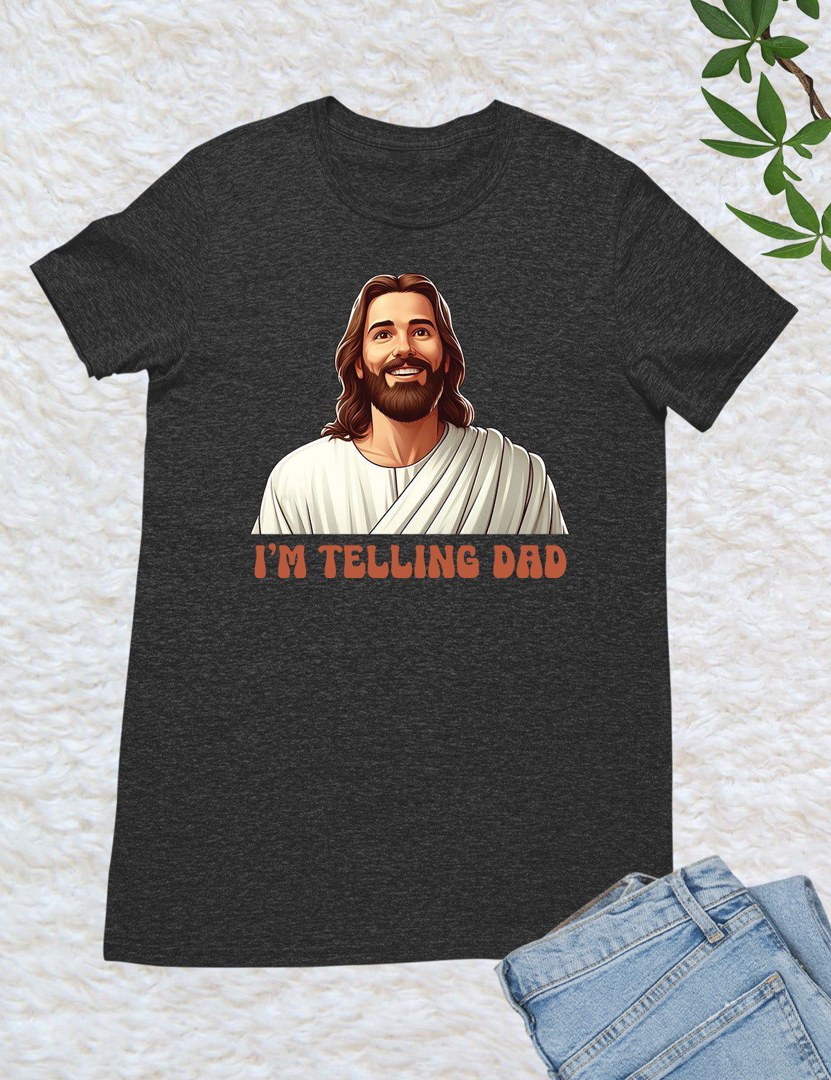 Get ready to spread the good news with our "I'm Telling Dad" Jesus shirts. Professionally designed with a modern twist, these shirts are perfect for showing your faith and starting conversations. Made with high-quality materials for comfort and durability. Be the light and share your faith with style.