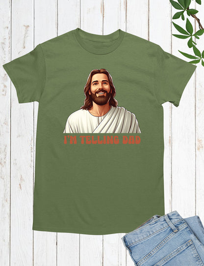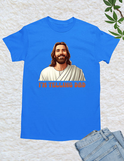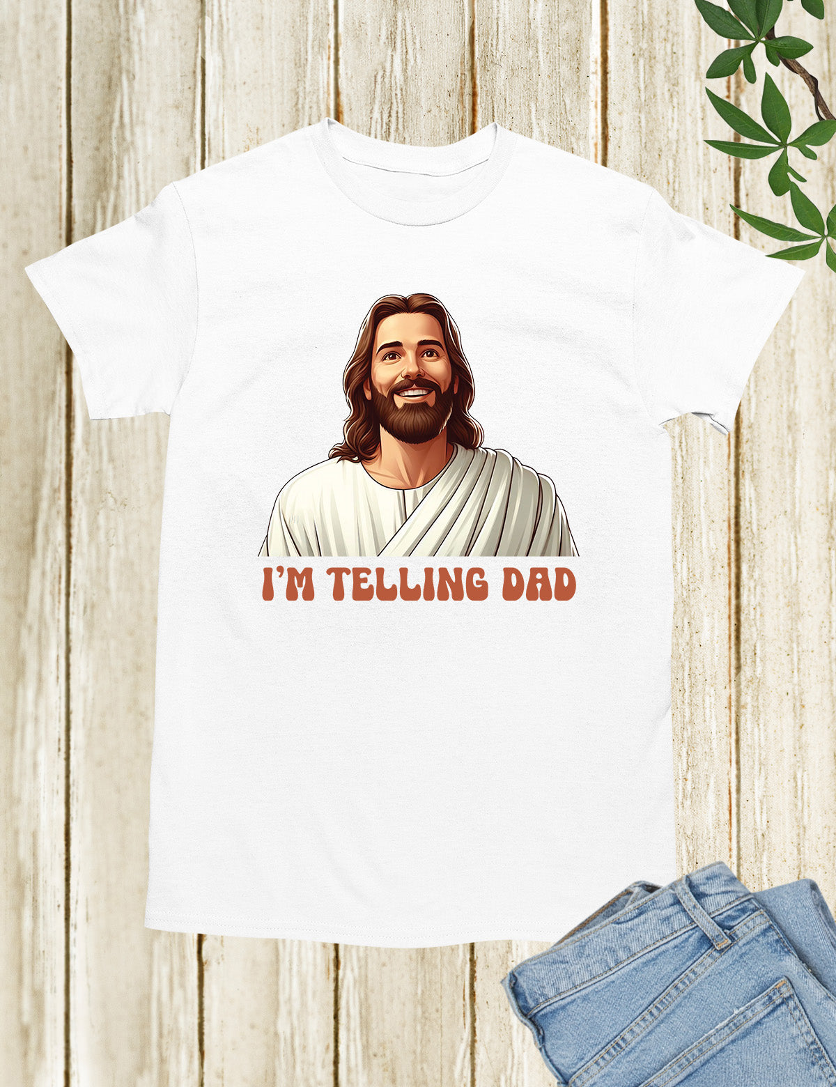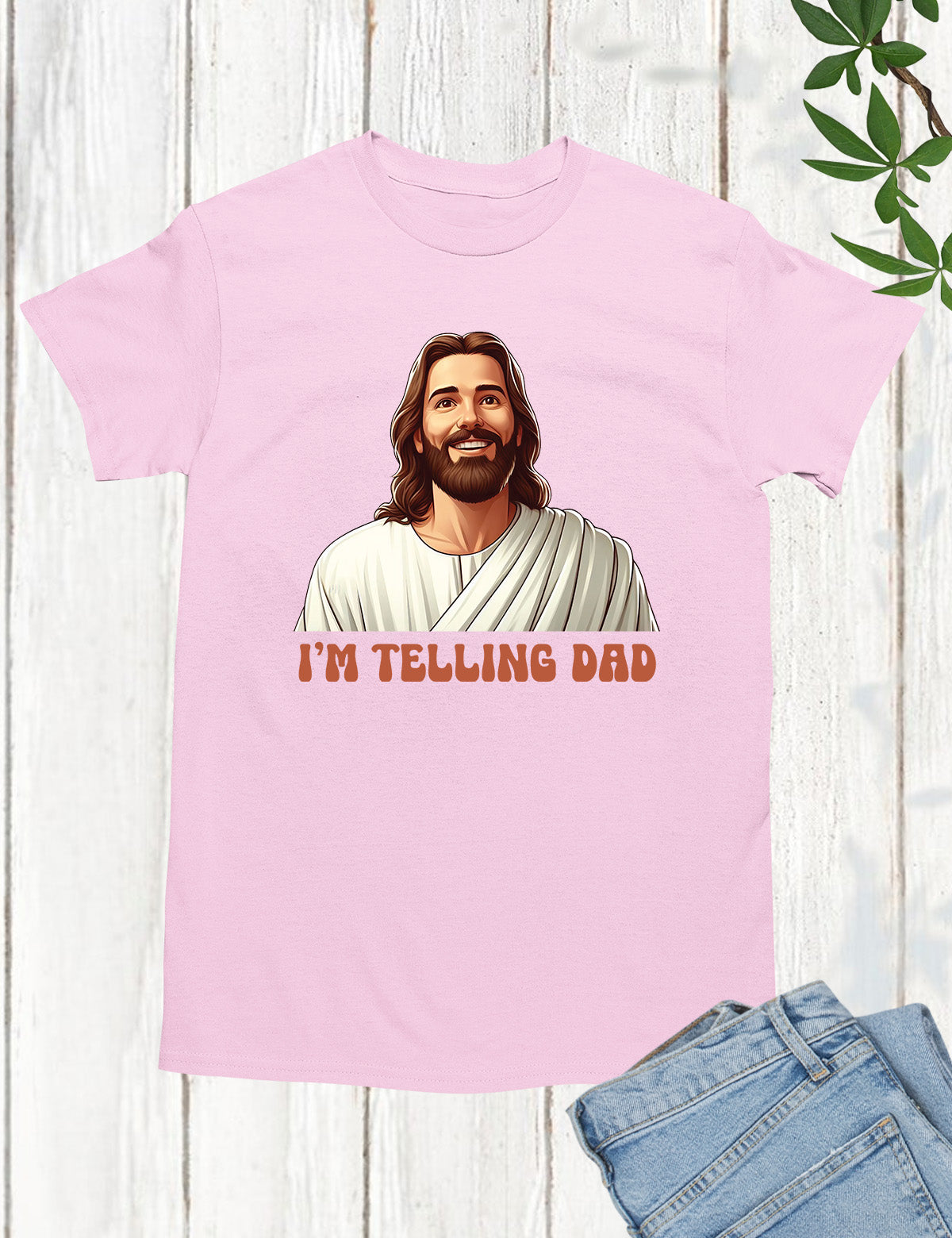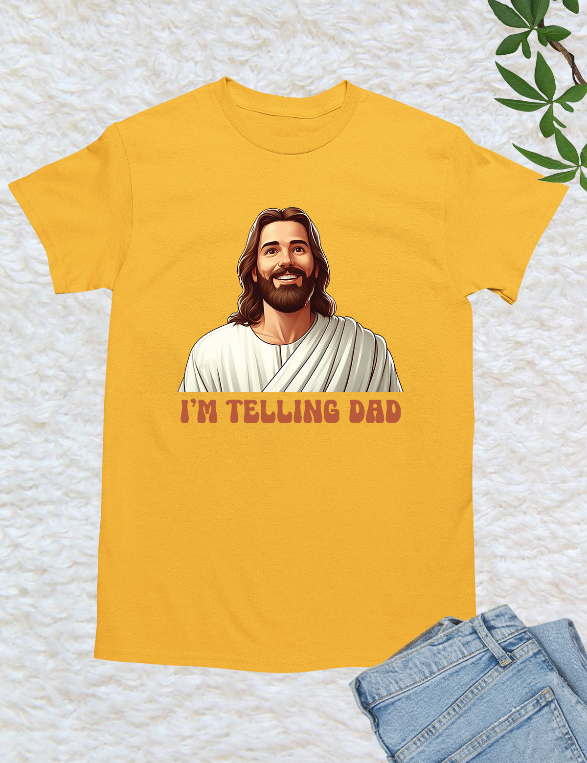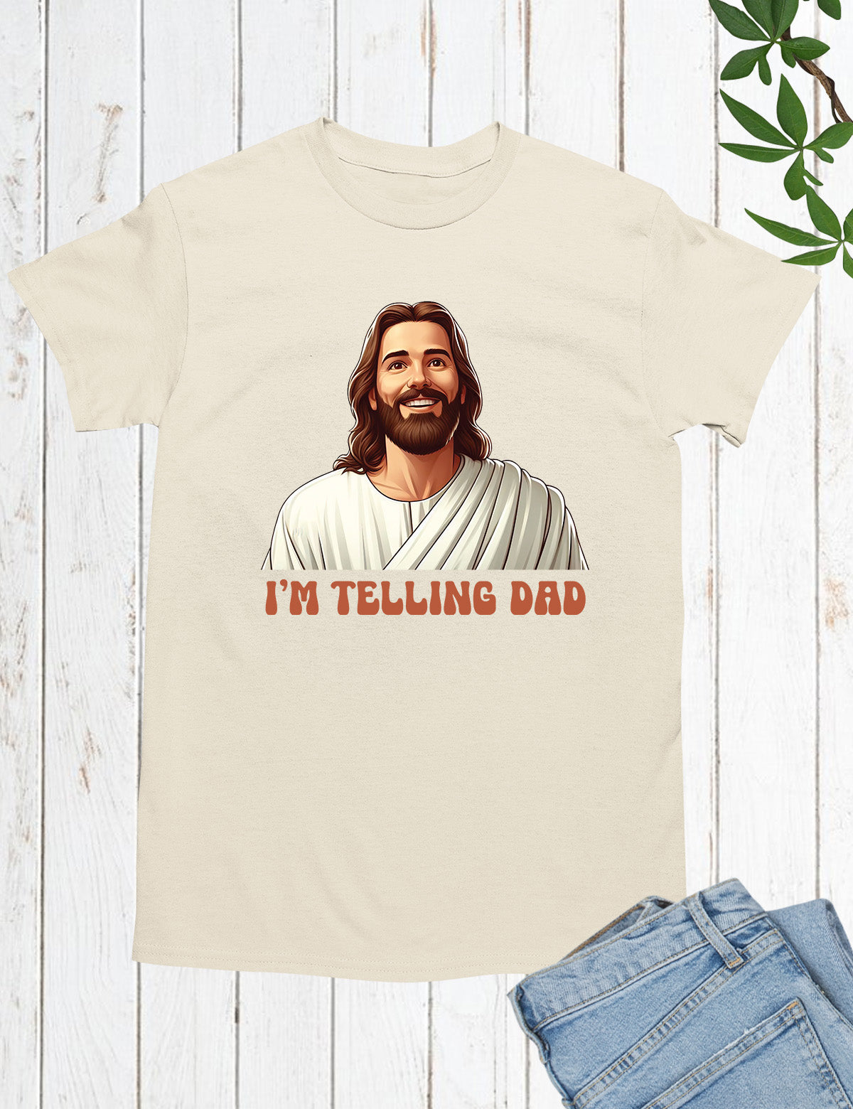 Get ready to spread the good news with our "I'm Telling Dad" Jesus shirts. Professionally designed with a modern twist, these shirts are perfect for showing your faith and starting conversations. Made with high-quality materials for comfort and durability. Be the light and share your faith with style.