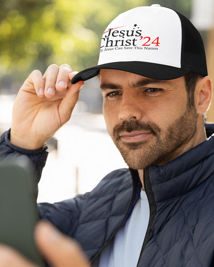 Stay shaded in style with the Jesus Christ 24 Trucker Hat Caps. Featuring a trendy trucker hat design, this cap showcases the iconic Jesus Christ 24 design. With its comfortable fit and breathable mesh panels, it's the perfect accessory for any outdoor adventure. Show off your faith with this must-have hat.