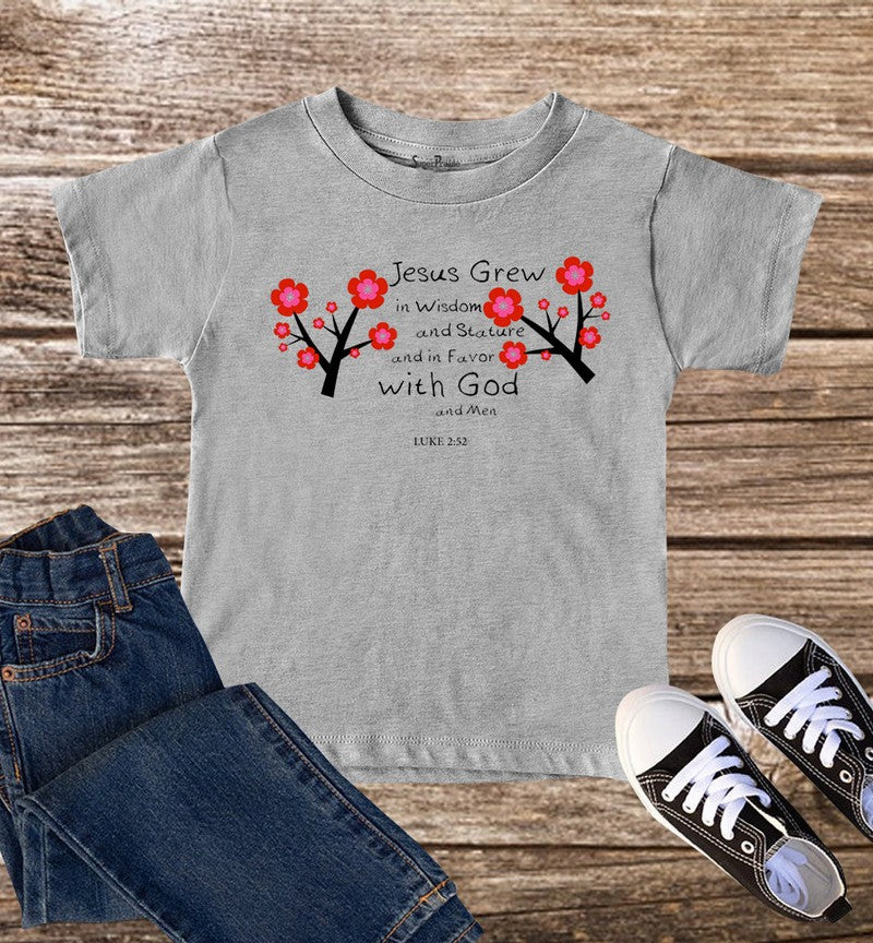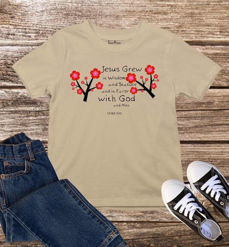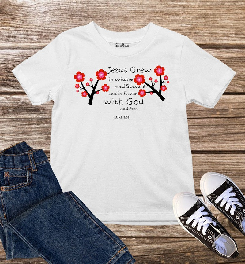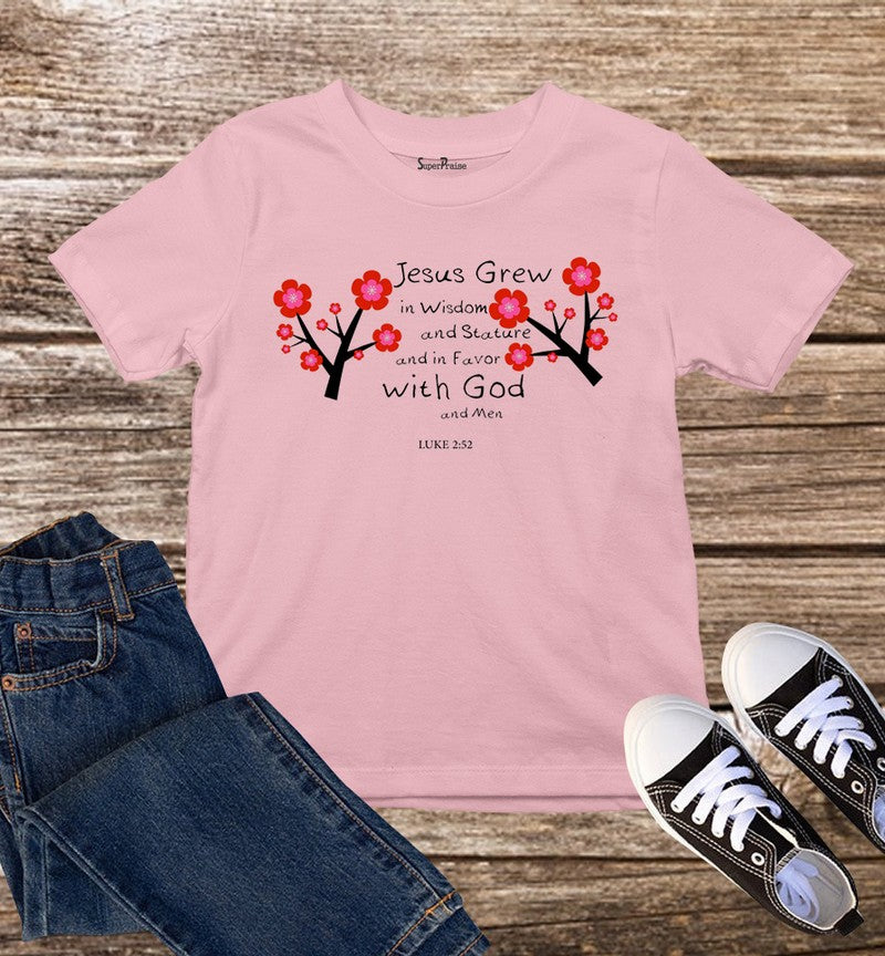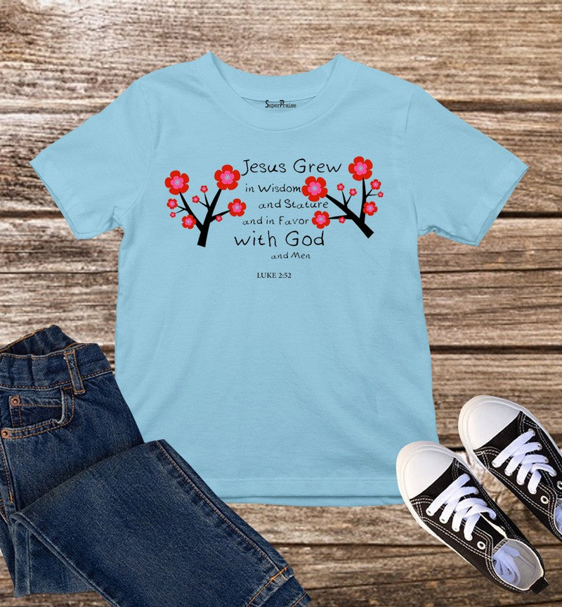 Jesus Grew In Wisdom Kids T Shirt is cool stylish and comfy to wear while proclaiming the gospel of Christ. This Christian children t shirts come in unisex style for boys and girls.
