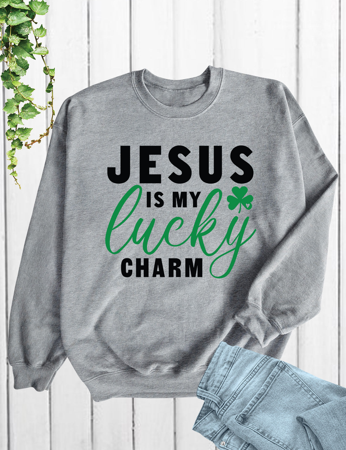 Highlight your faith with our Jesus is My Lucky Charm Sweatshirt. Made of soft, comfortable material, perfect for everyday wear. Spread the message of love and positivity with this unique and stylish piece. A must-have for any believer.
