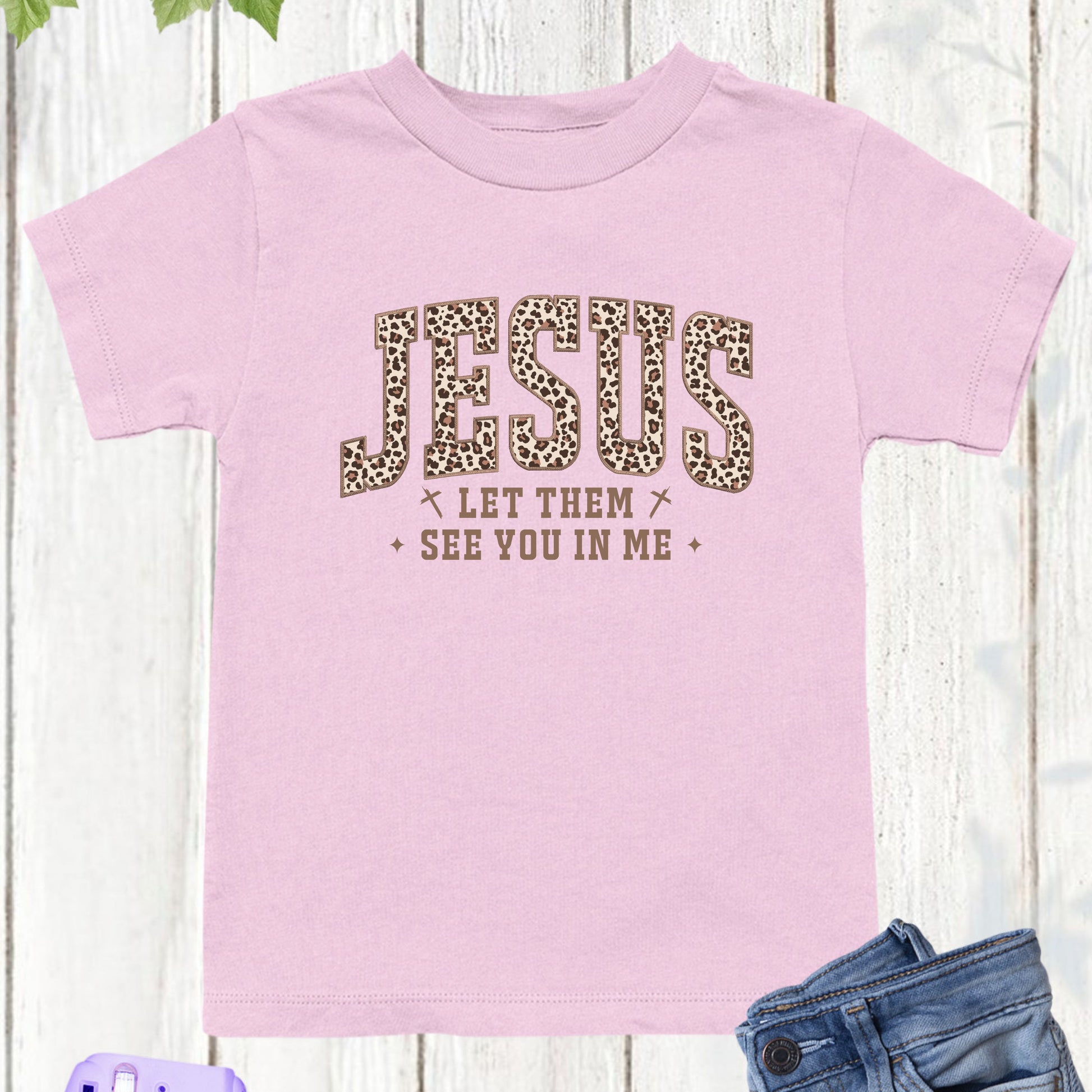 Jesus Leopard Print Kids T Shirt Let Them See you in Me