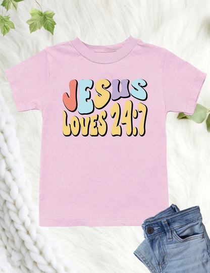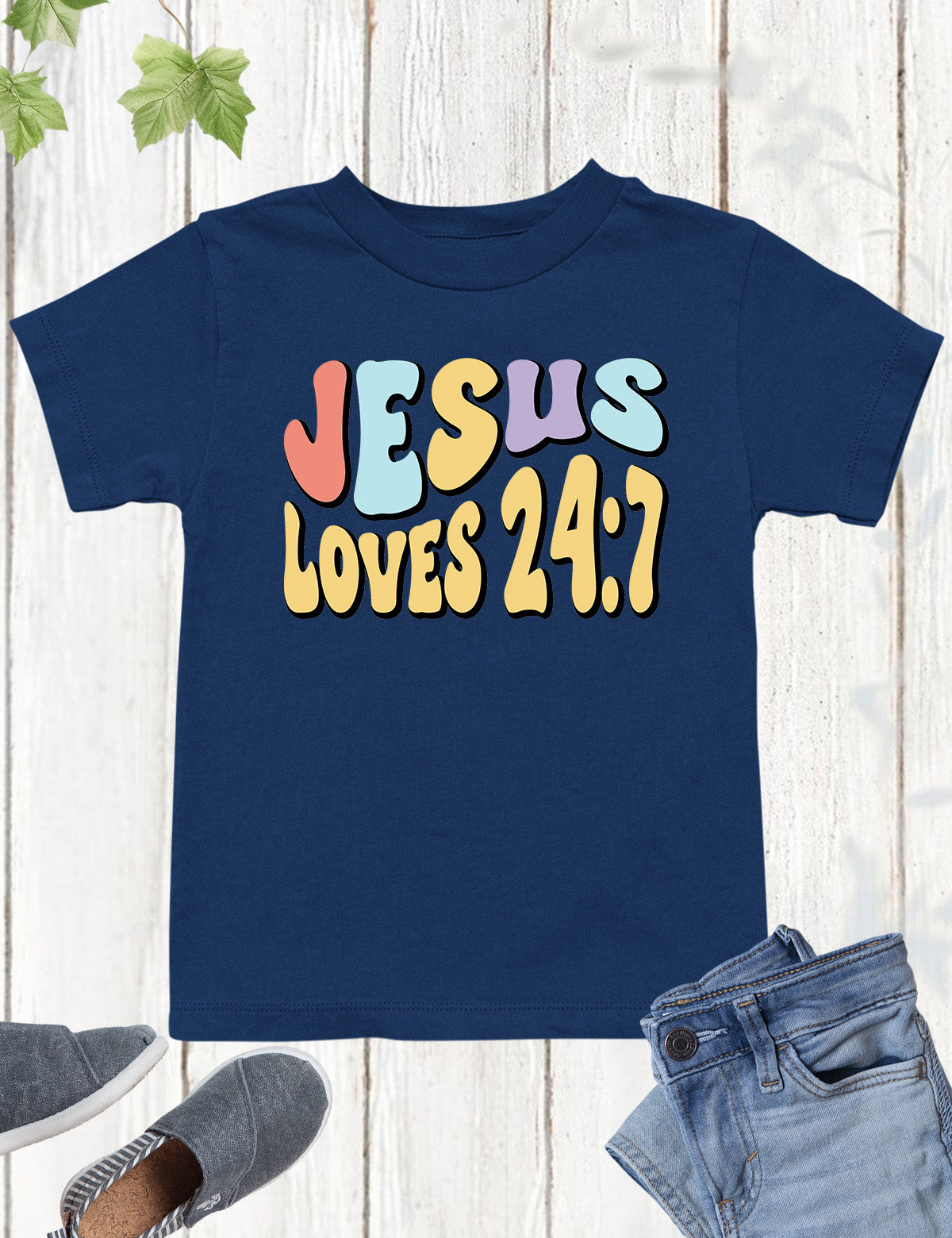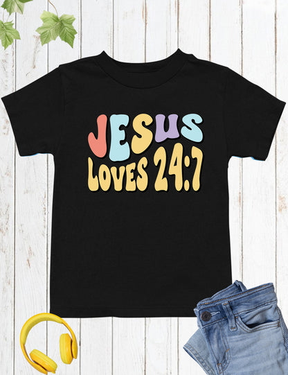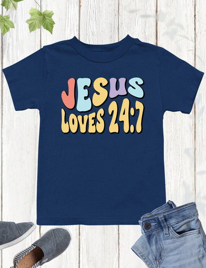 Expertly designed for youth, the Jesus Loves 24:7 Faith Youth Shirt is a powerful statement of faith. Made from durable materials, this shirt boldly declares the message of God's continuous love. Perfect for everyday wear, it serves as a reminder of God's unwavering presence in our lives.