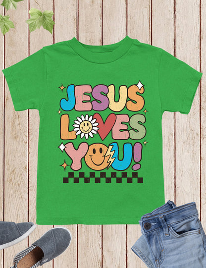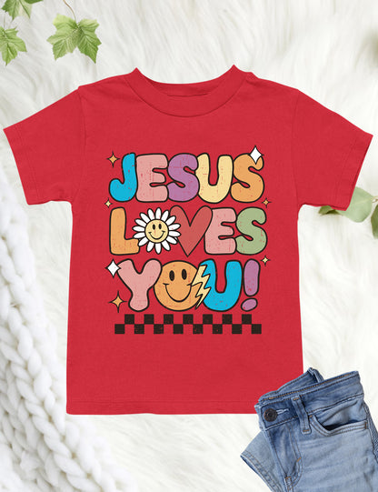 This Jesus Loves You Christian Kids sweatshirt and t-shirt is the perfect way to share your faith with the world. Made with comfortable materials, your child will love wearing this while spreading the message of love and acceptance.