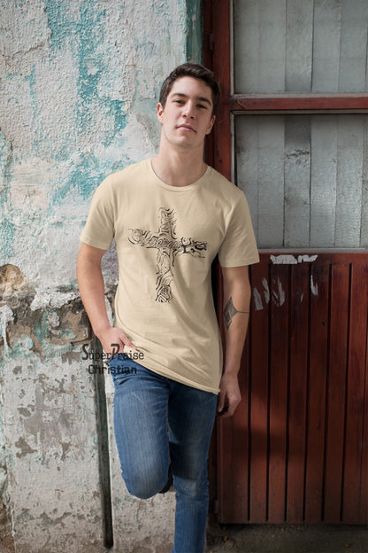 This t-shirt depicts Jesus on the cross, a powerful symbol of sacrifice and redemption. Made from high-quality materials, it is comfortable to wear and durable. Perfect for those who want to honor their faith and make a statement. Show your devotion with this meaningful and stylish t-shirt.
