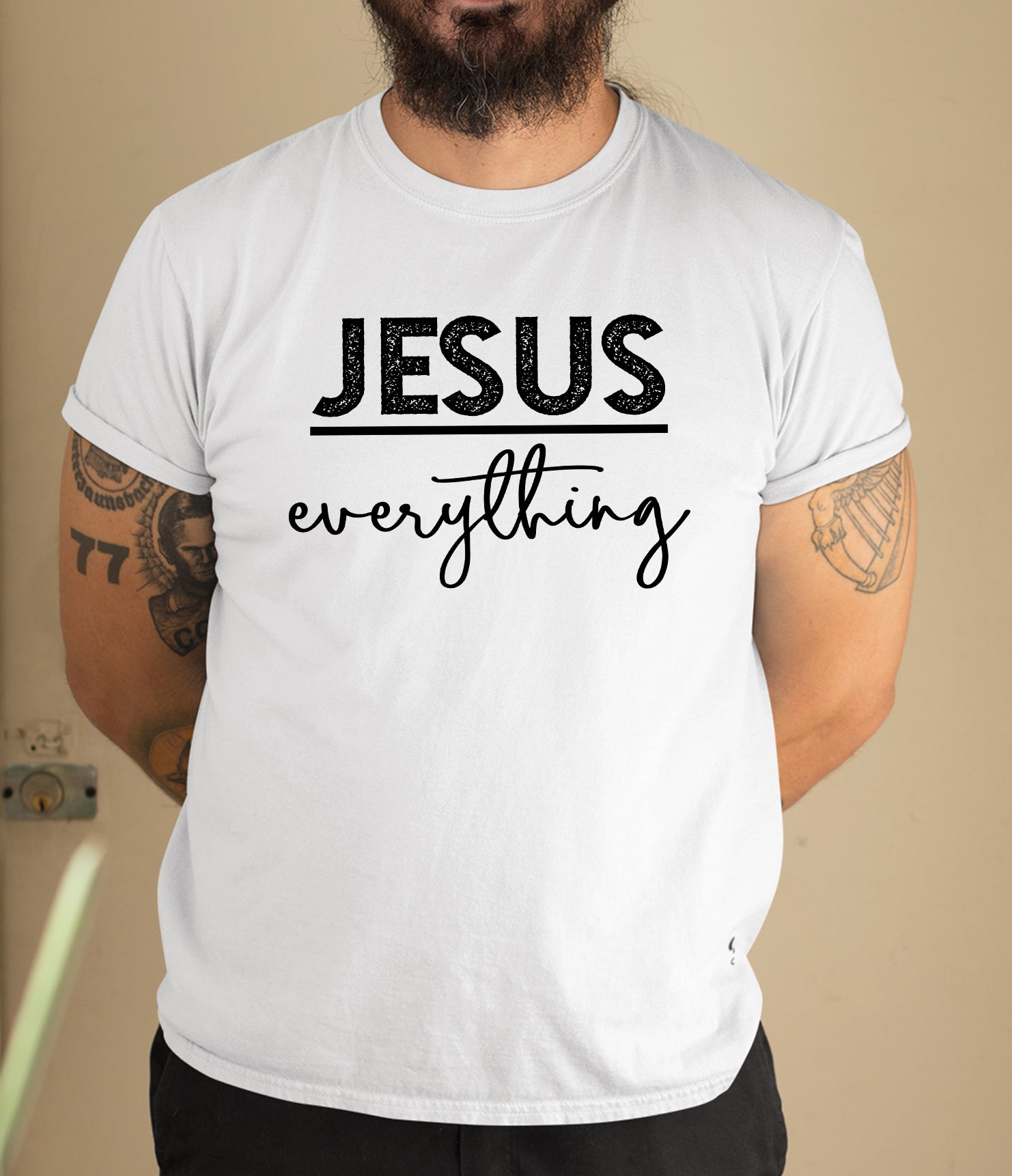 Celebrate your faith with the Jesus Over Everything Christian T Shirt. Made with high-quality materials, this shirt proudly displays your devotion to Jesus Christ. With a sleek and stylish design, this shirt is perfect for any occasion and serves as a reminder to keep Jesus at the center of everything we do.
