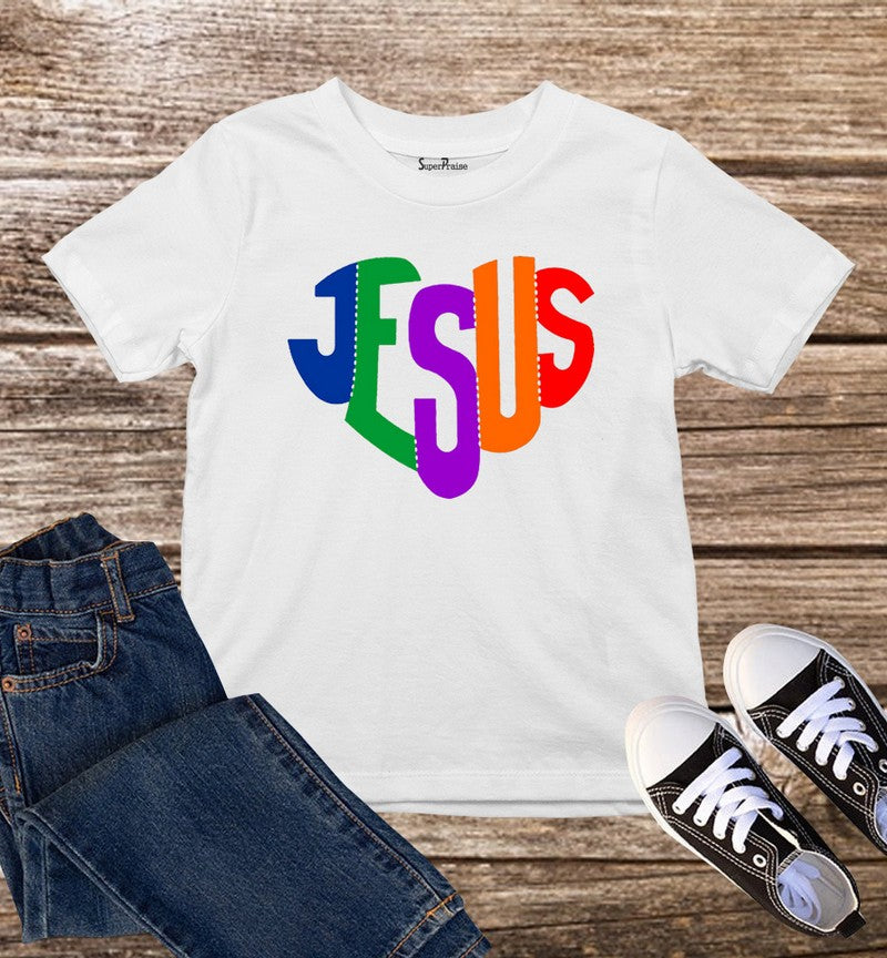 Jesus Rainbow Kids T Shirt is cool stylish and comfy to wear while proclaiming the gospel of Christ. This Christian children t shirts come in unisex style for boys and girls.