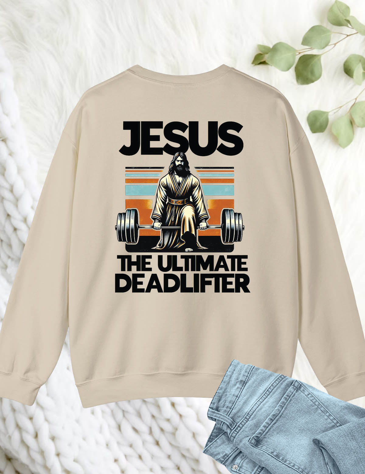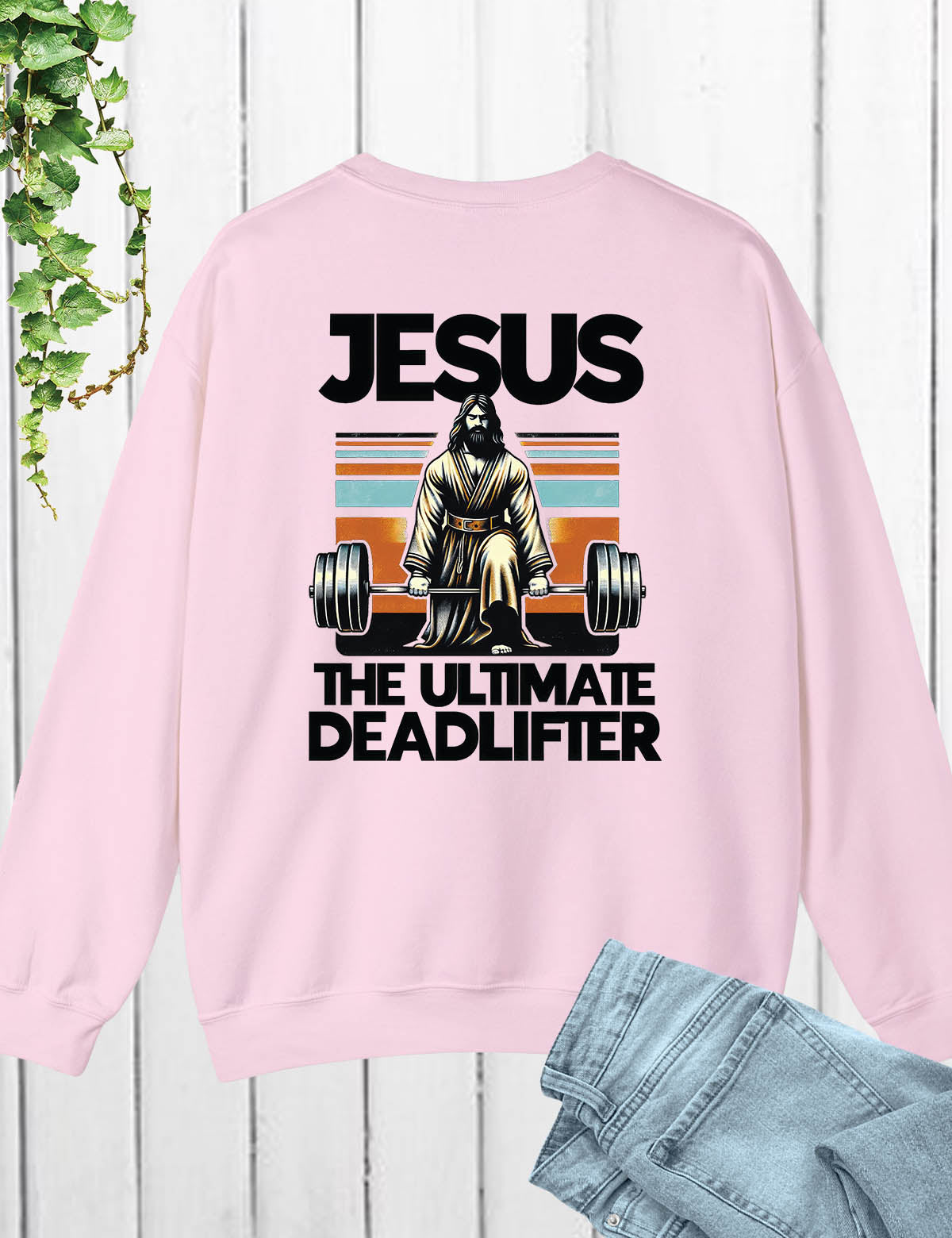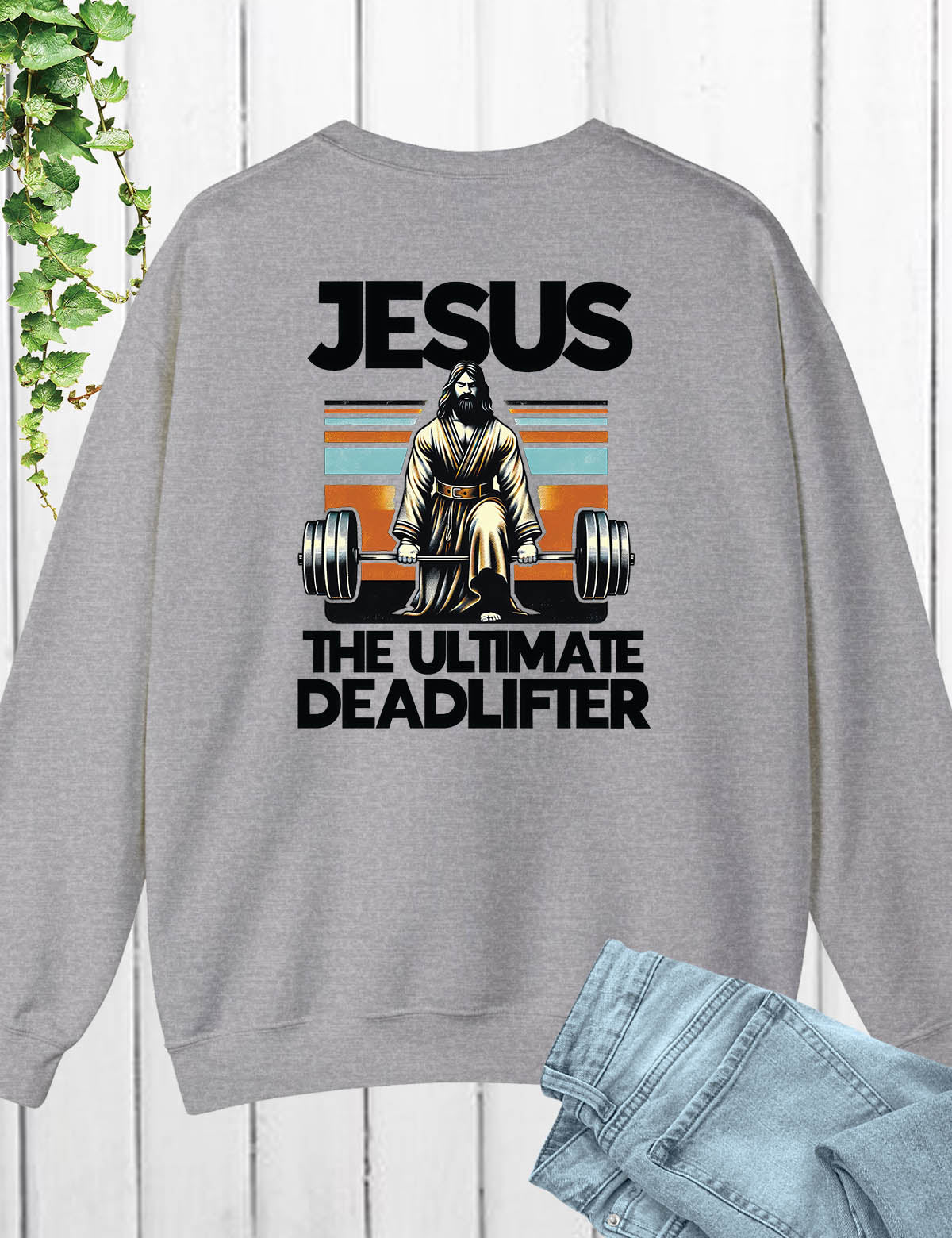 Jesus The Ultimate Deadlifter Trendy Christian Back Print Sweatshirt