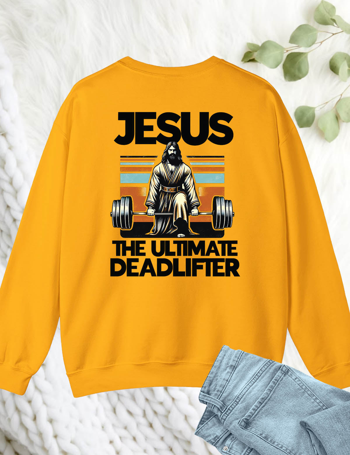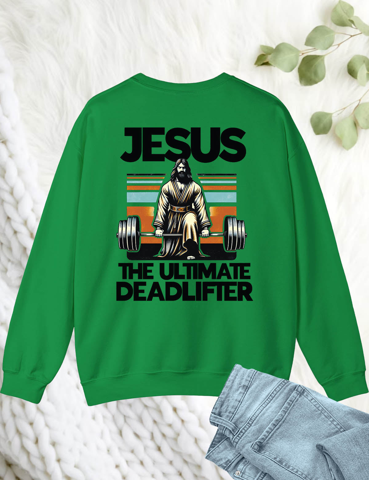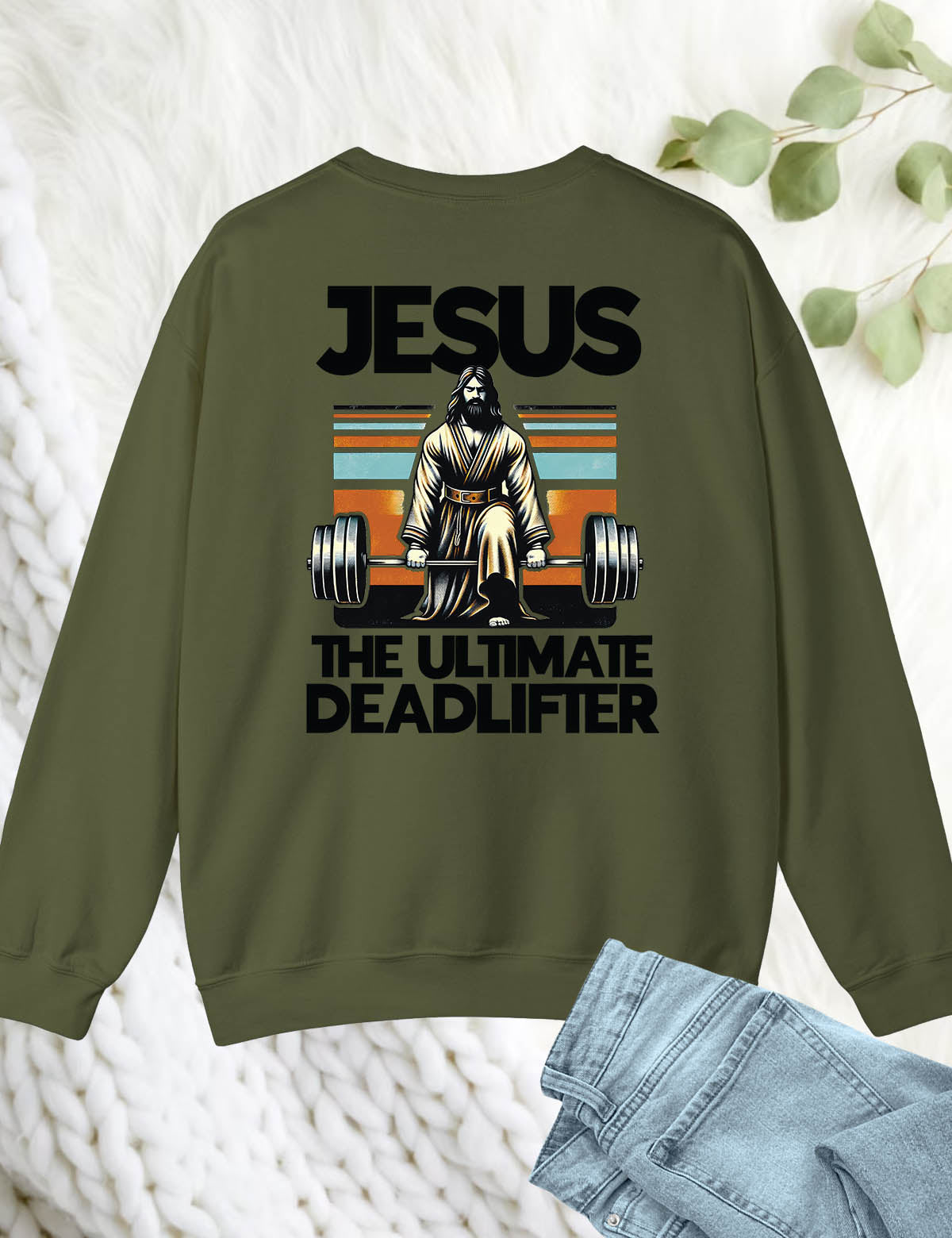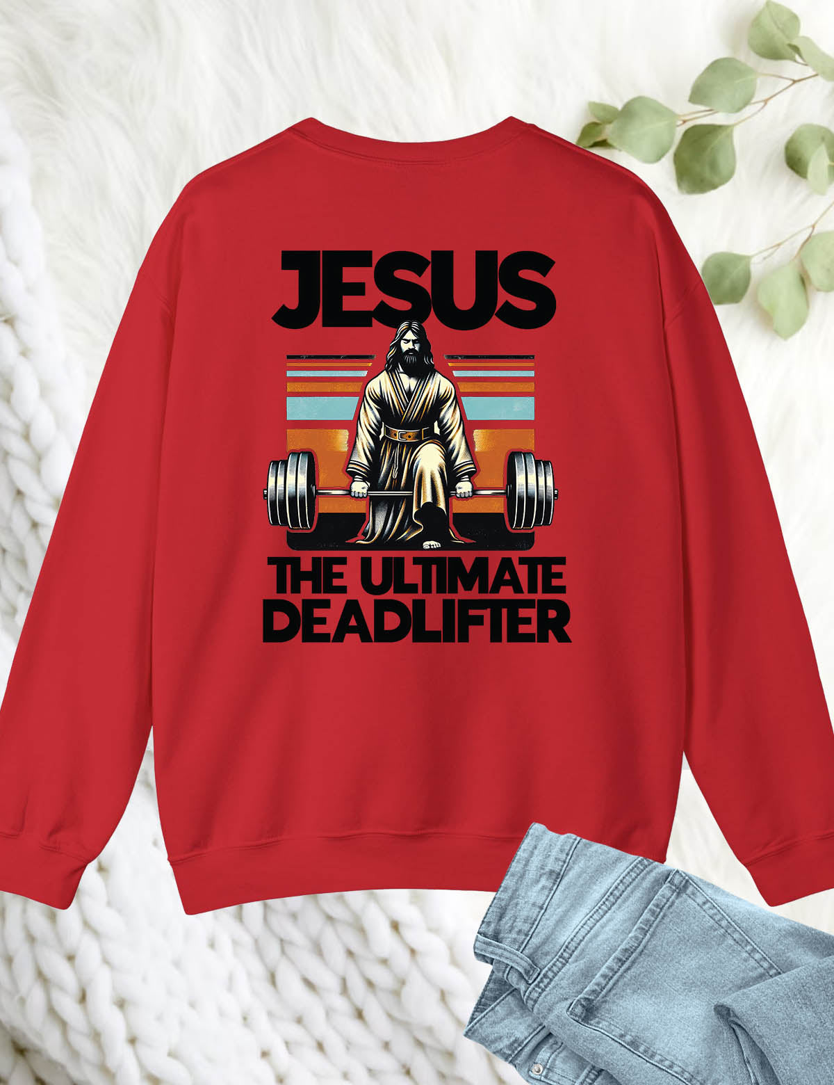 Jesus The Ultimate Deadlifter Trendy Christian Back Print Sweatshirt