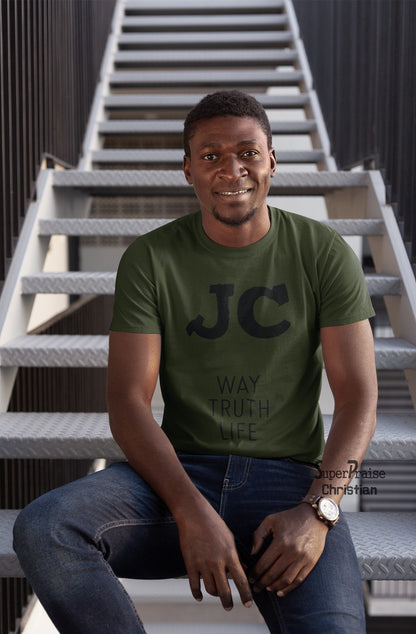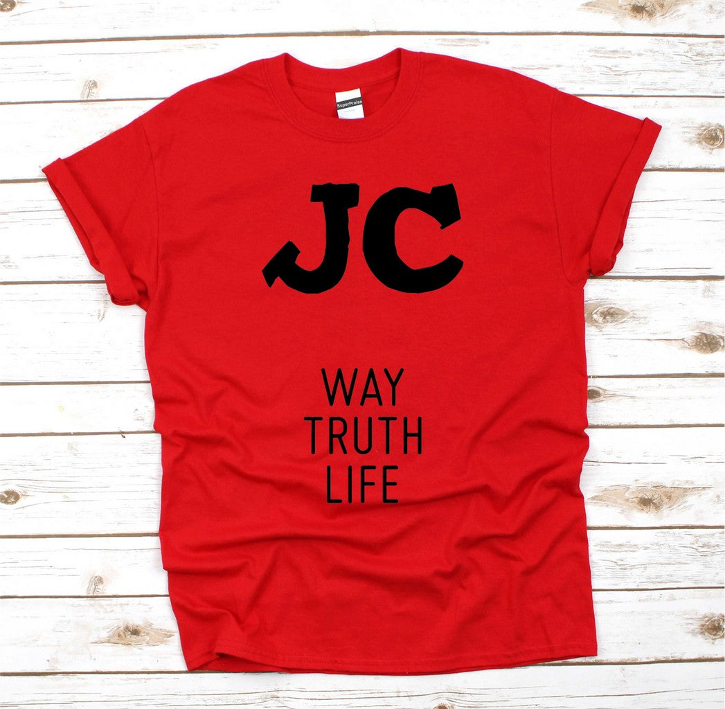 This Jesus the way the truth the life T Shirt combines style and faith. Made from durable materials, this shirt features a bold design that proclaims the message of salvation. Show your devotion and add meaning to your wardrobe with this timeless and powerful piece of clothing.