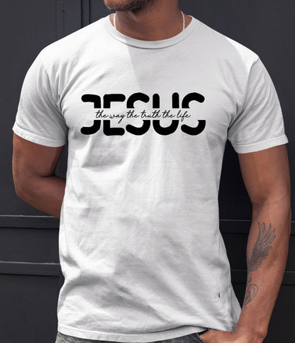 This t-shirt is designed to showcase your faith and devotion to Jesus. Made with high-quality materials, it features the powerful message of "Jesus The Way The Truth The Life" in a simple yet impactful design. Let your shirt be a testimony to others and a reminder to yourself of the beauty and truth of your faith.
