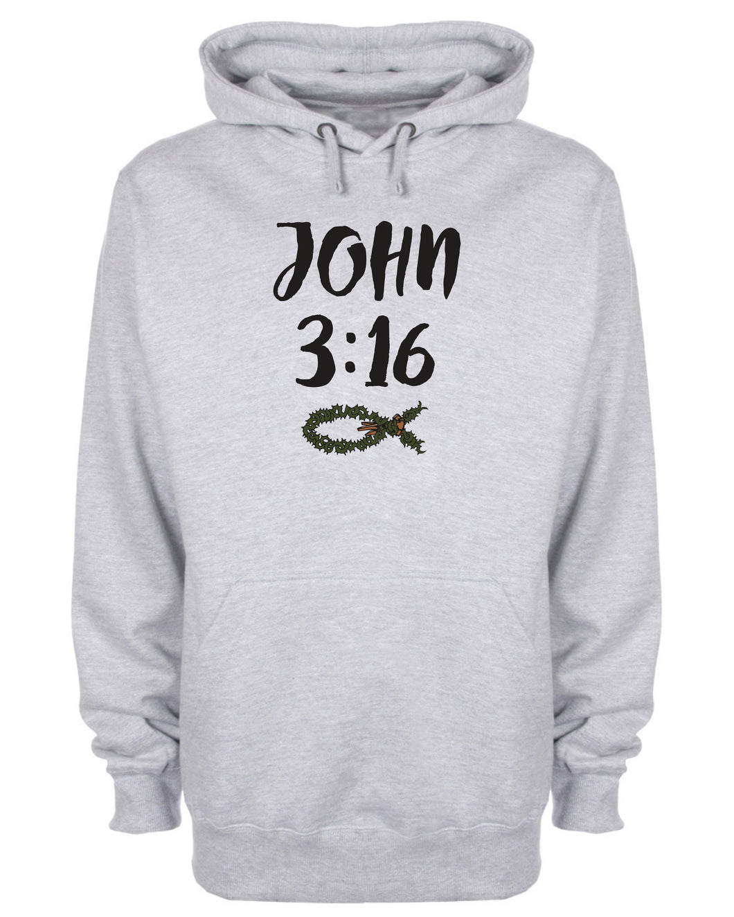 John 3:16 Christian Fish Sign Hoodie Bible Scripture Sweatshirt