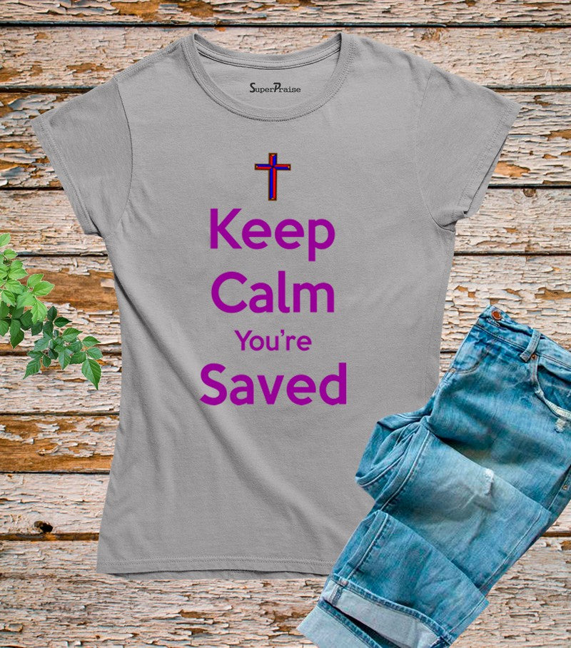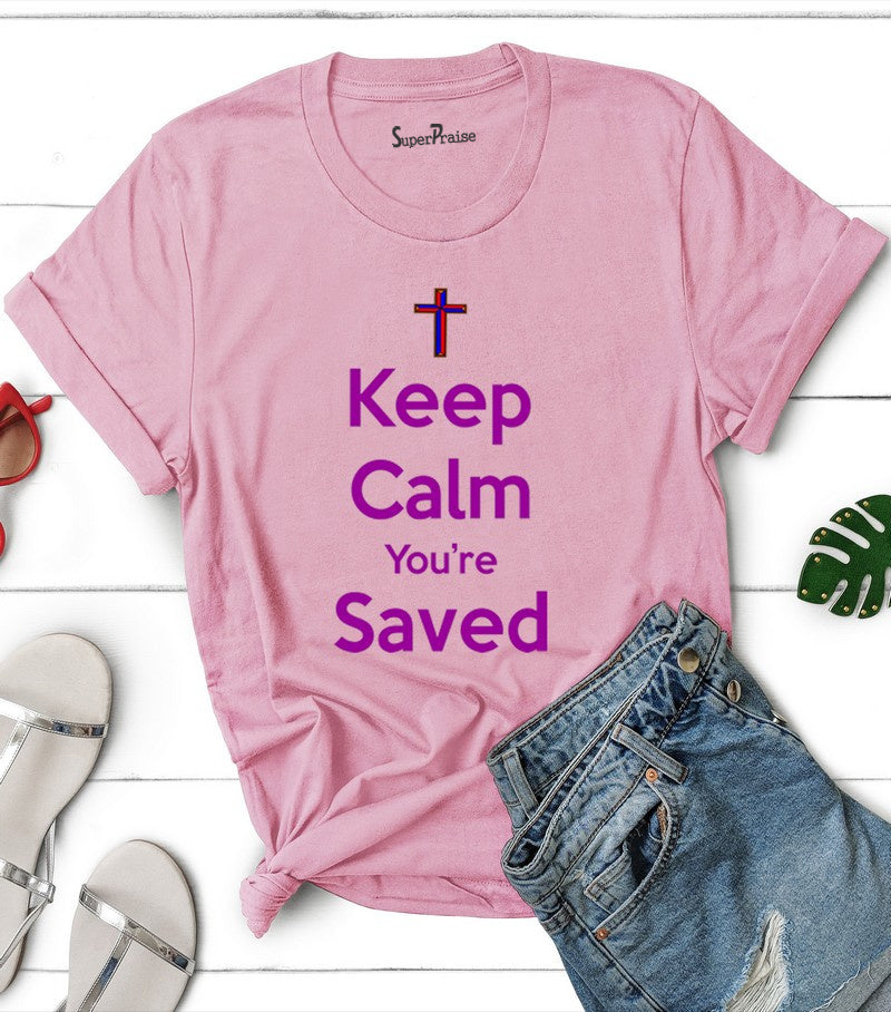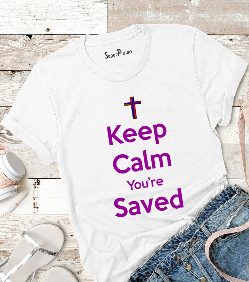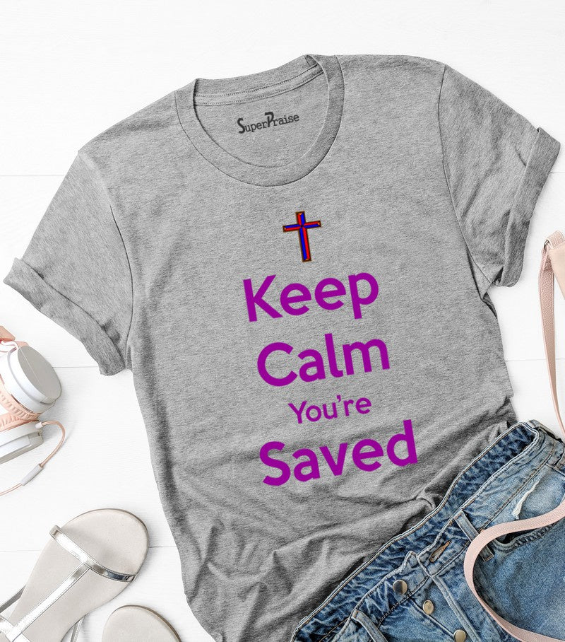 Keep Calm You're Saved T Shirt is stylish and comfortable to wear while spreading the gospel. This printed bible scripture tee is a way to let people know that you belong to Jesus Christ and proclaim the love of God without saying a word.