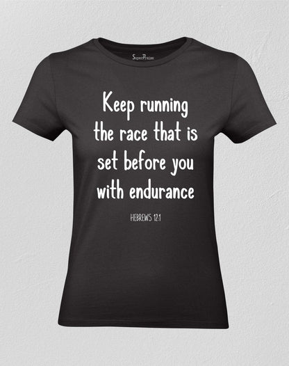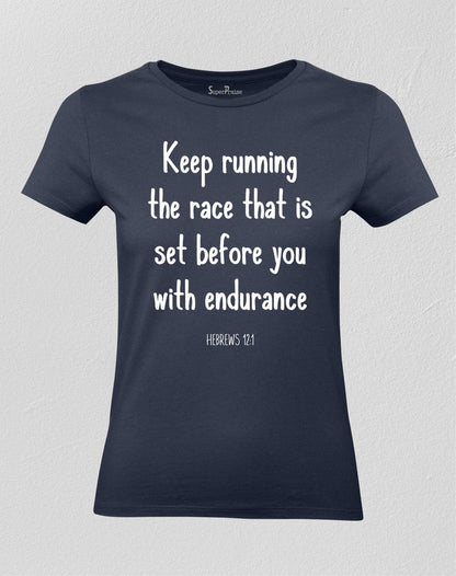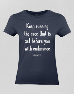 Christian Women T shirt Keep Running Spiritual Motivation Salvation Hope