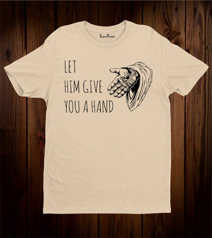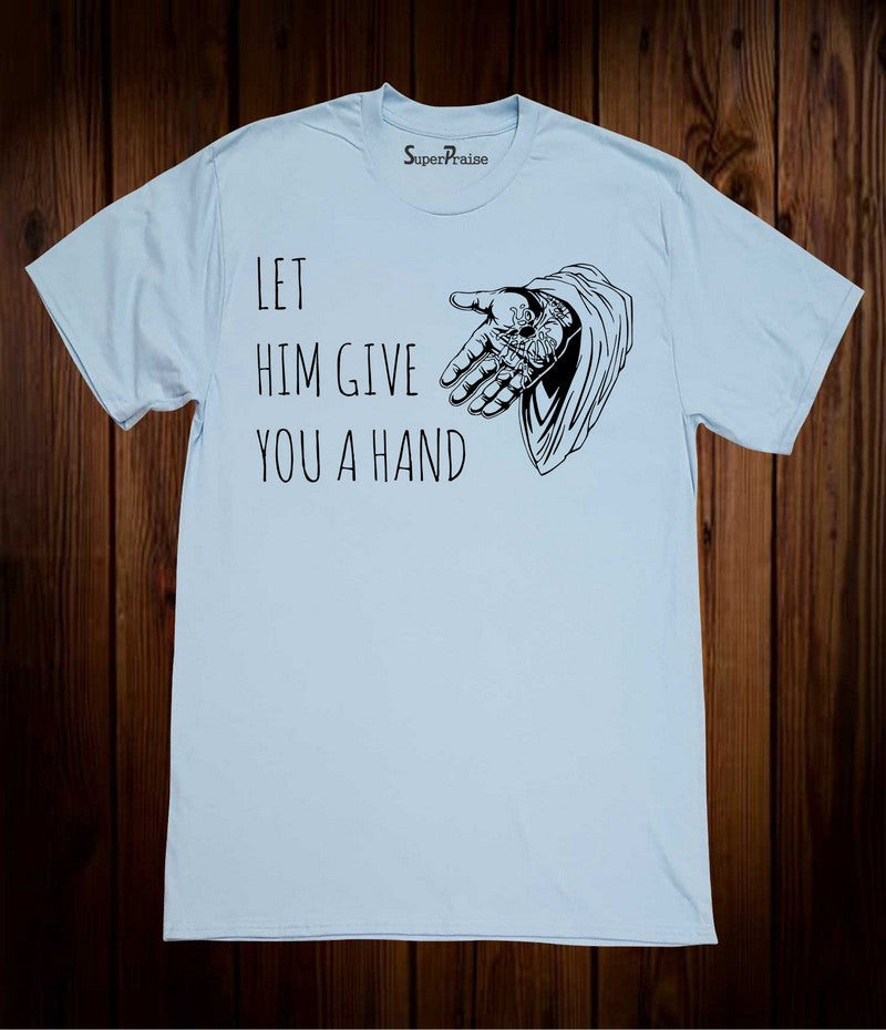 Introducing the Let Him Give You a Hand Faith T Shirt, the perfect addition to your wardrobe for those looking to embrace their faith. Crafted from high-quality materials, this t-shirt features a unique design that serves as a daily reminder to let go and let God take the reins. Stay true to your beliefs while making a statement with this comfortable and stylish t-shirt.