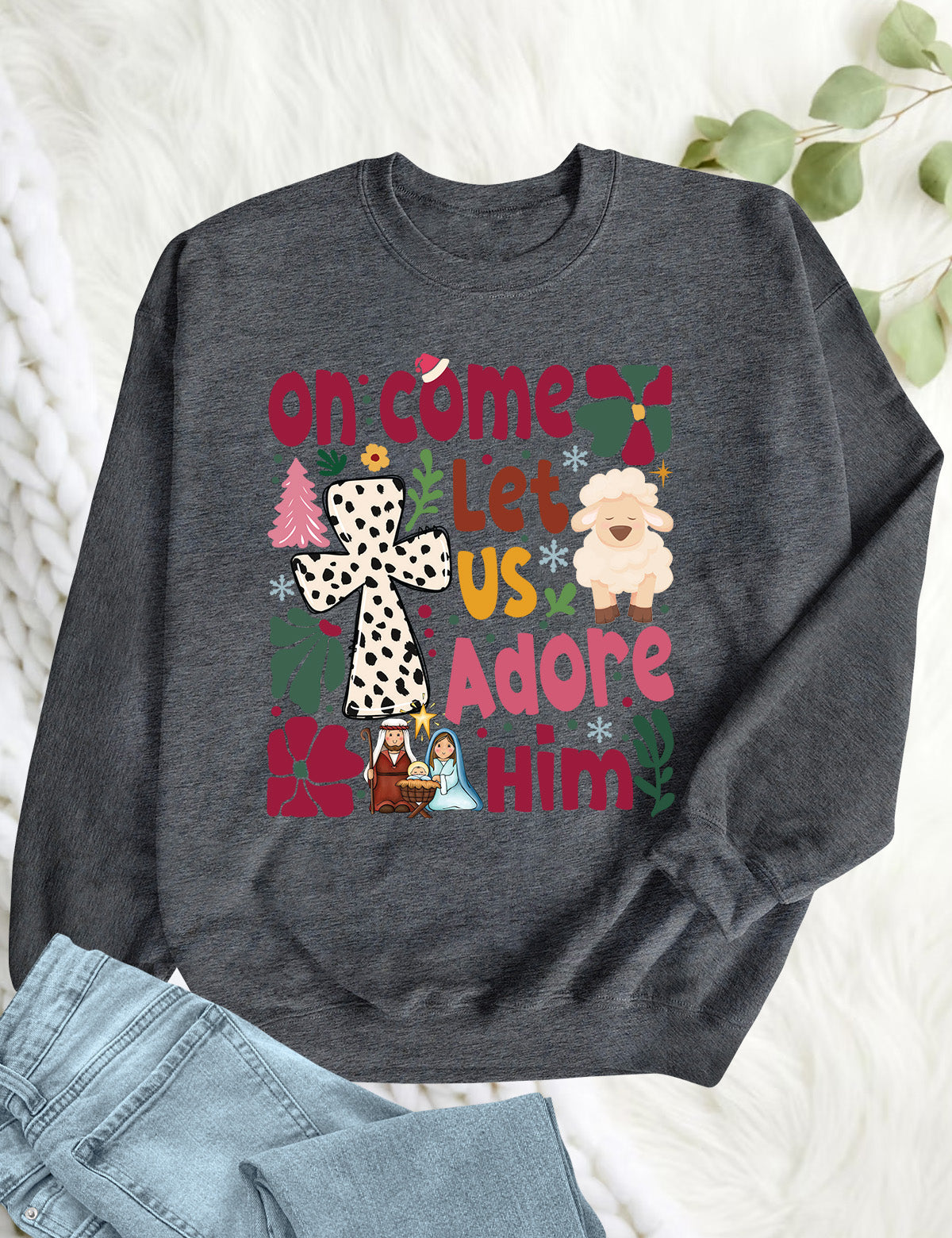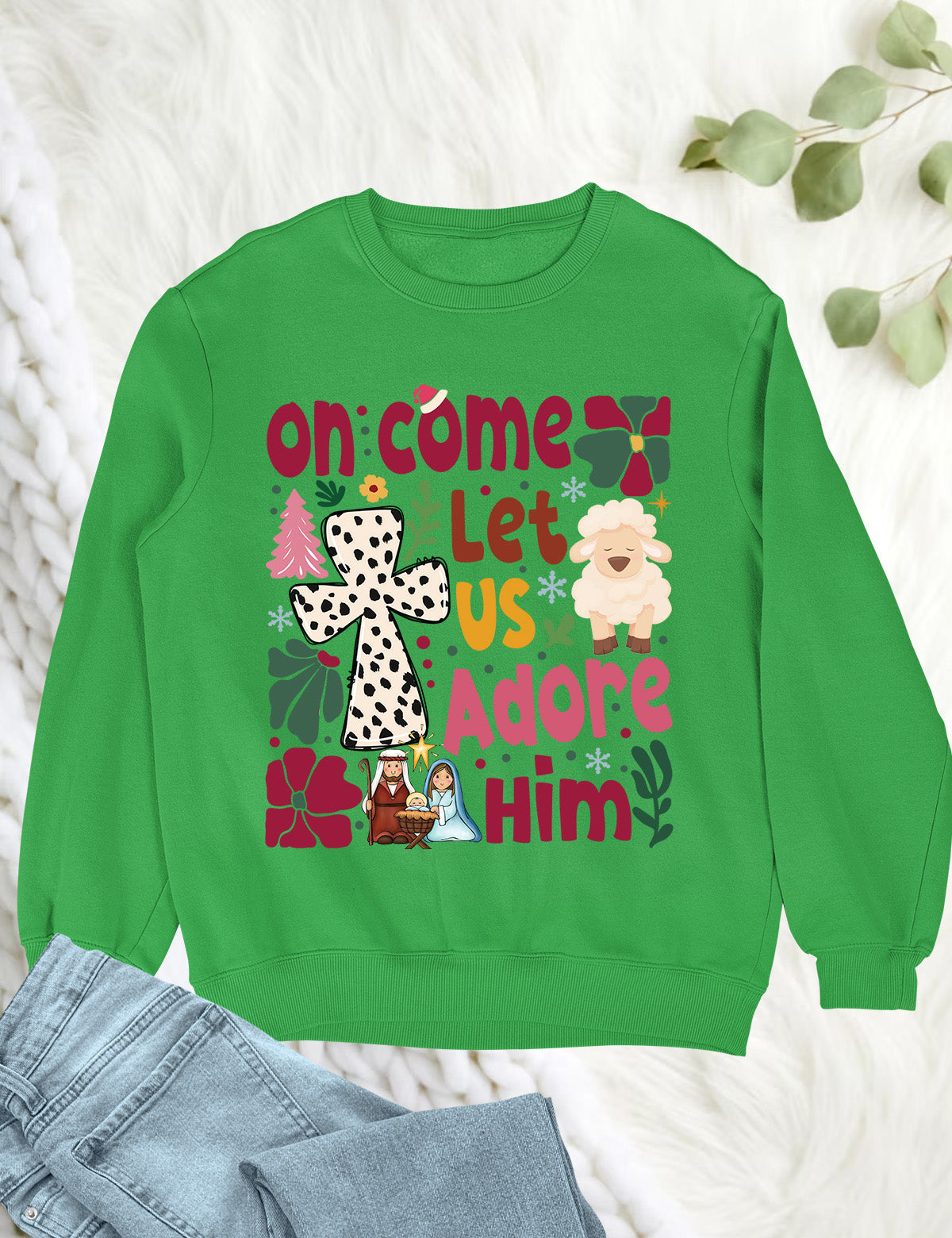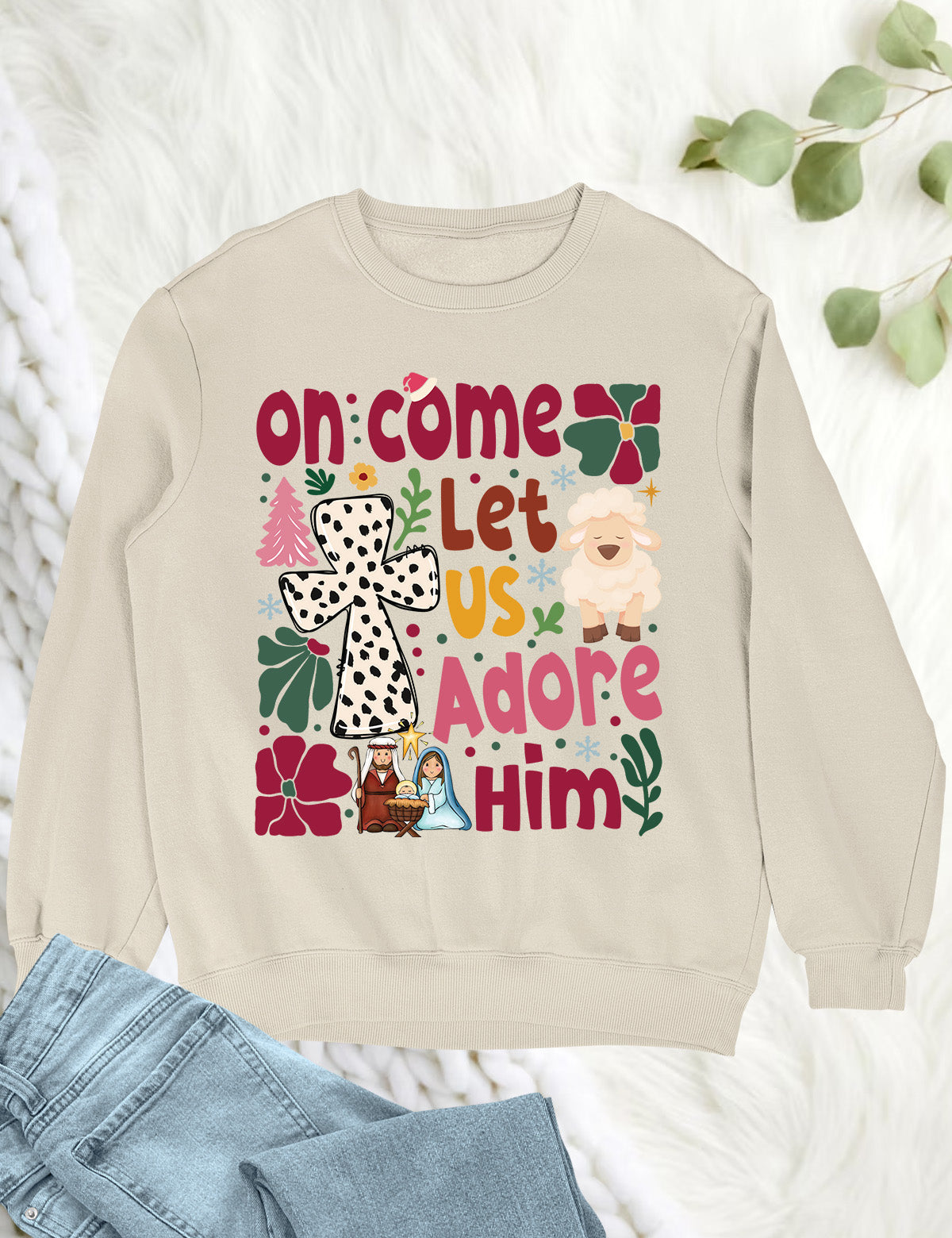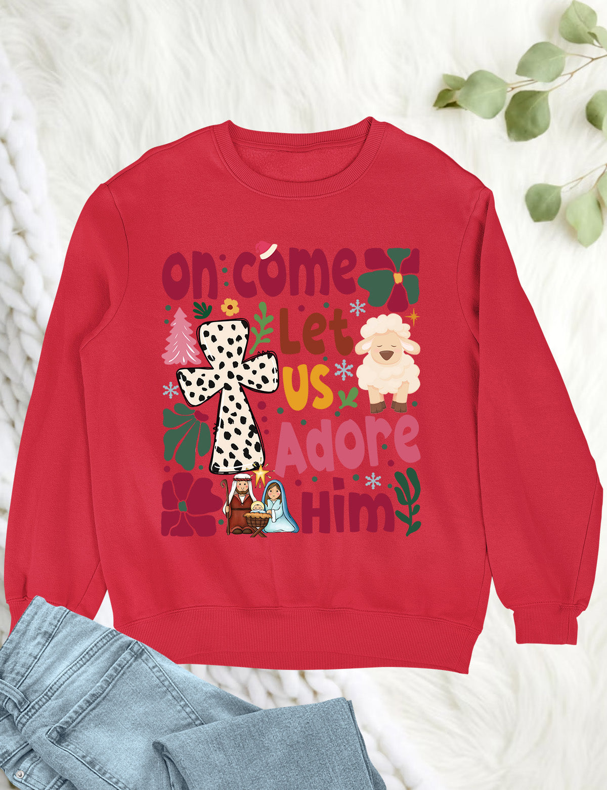 This Let us Adore Him Christmas Hoodie is a festive addition to your holiday wardrobe. Made with high-quality materials, it features a comfortable fit and a beautiful graphic design of the nativity scene. Show your love for the season and spread the message of joy with this stylish hoodie.
