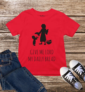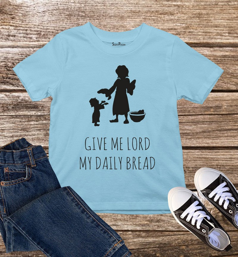 Lord Give My Daily Bread Kids T Shirt is cool stylish and comfy to wear while proclaiming the gospel of Christ. This Christian children t shirts come in unisex style for boys and girls.