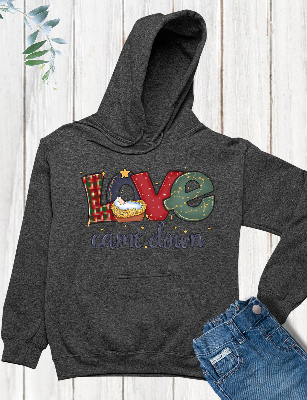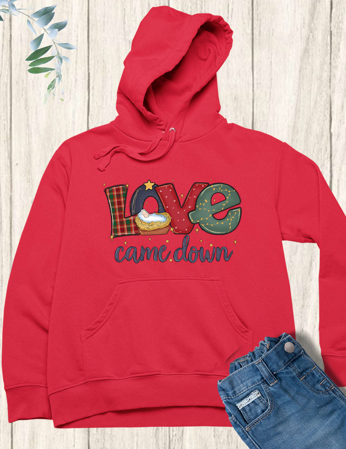 The Love Came Down Jesus Hoodie is a must-have for believers. This high-quality hoodie boasts a powerful message that will inspire and uplift. Made with soft material and featuring a timeless design, it's perfect for daily wear or as a statement piece. Spread love and share your faith with this one-of-a-kind hoodie.