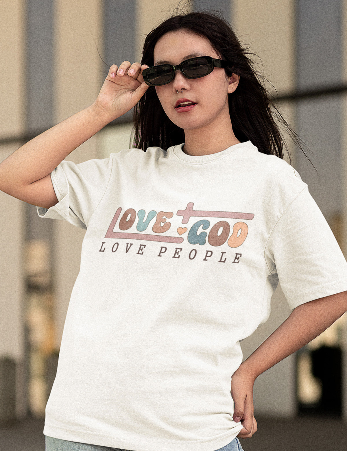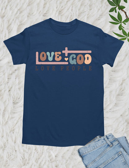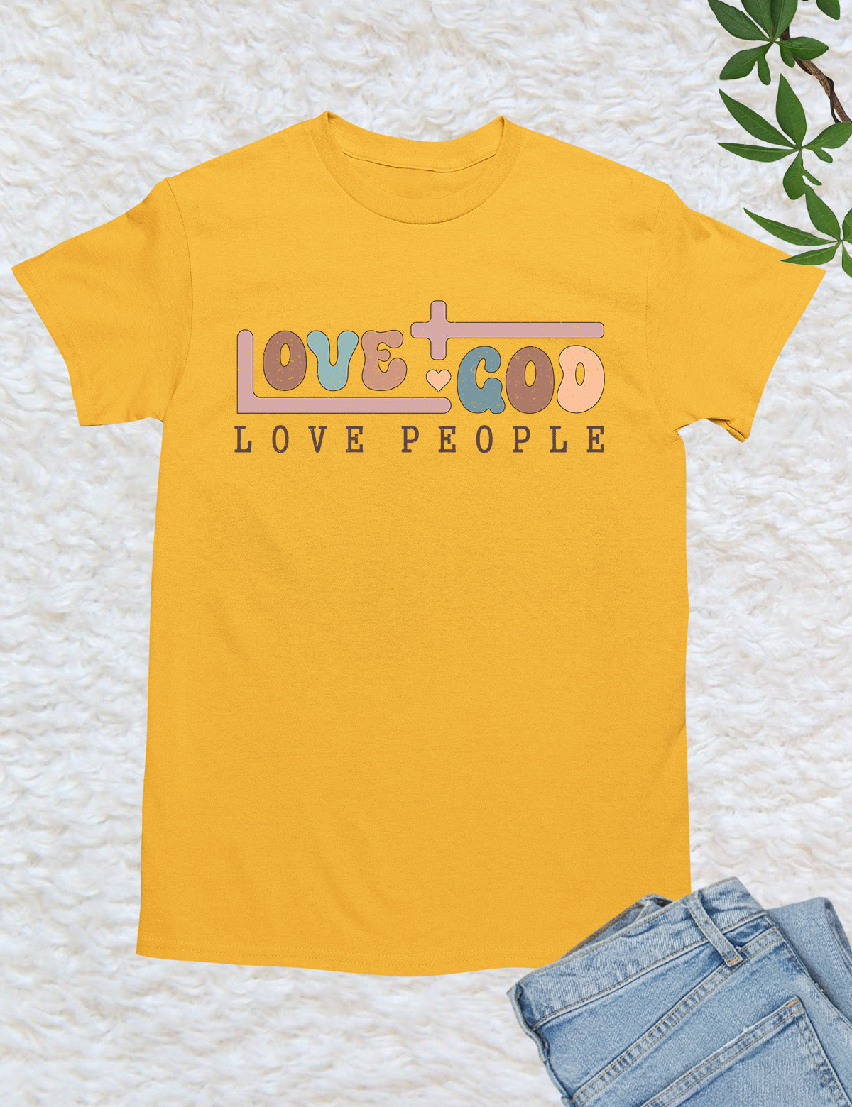 Show your love for faith and humanity with our Love God Love People Minimalistic T Shirt. The minimalistic design brings a modern edge while the message remains timeless. Made with high-quality fabric, this shirt will be a staple in your wardrobe. Spread positivity and kindness with this one powerful statement piece.