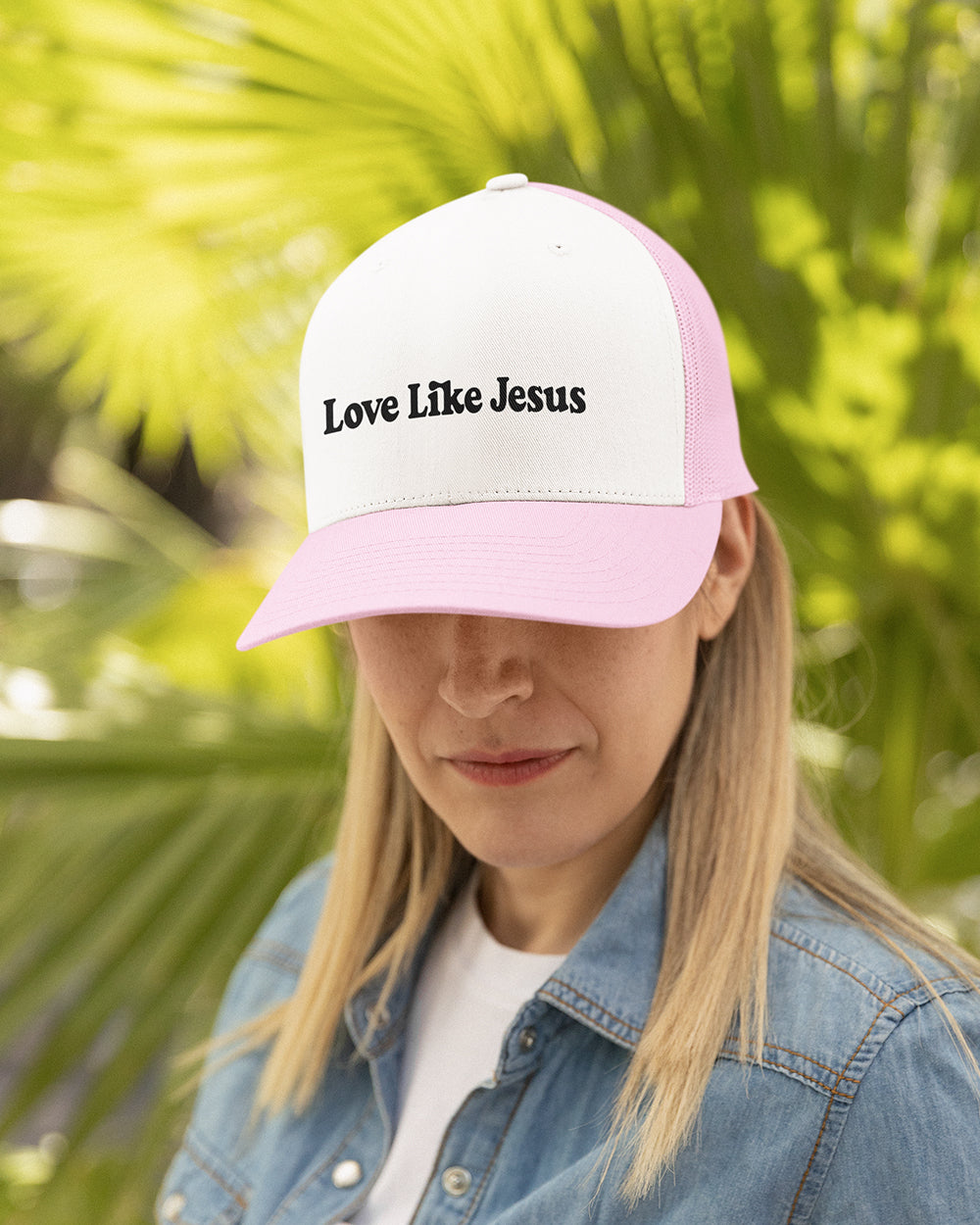 Elevate your style while spreading a message of love and kindness with our Love Like Jesus Cap Trucker Hat. Made with high-quality materials, this cap is a comfortable and stylish way to show your faith. Embrace the values of compassion and acceptance with this must-have accessory.