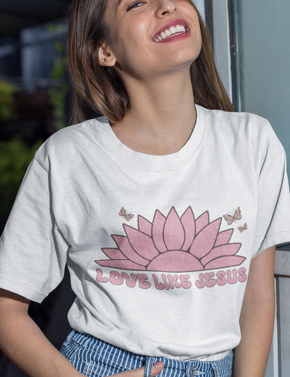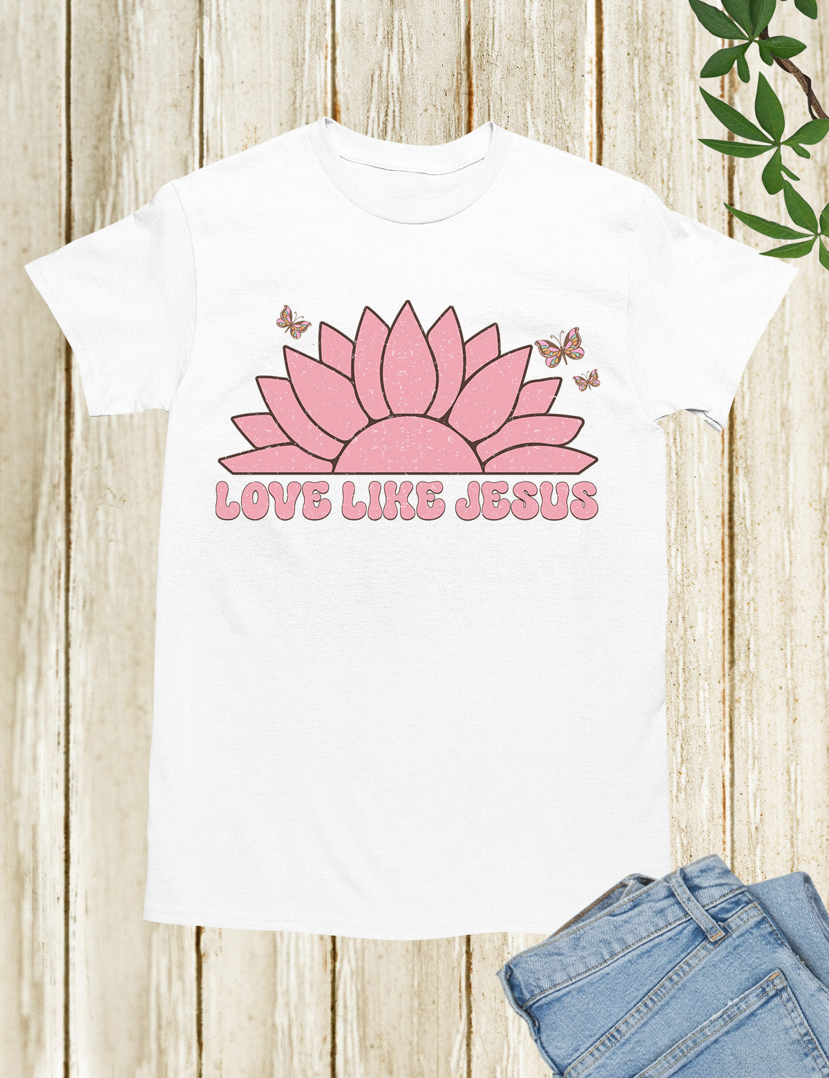 Express your faith and spread love with our Love Like Jesus Sunflower T-Shirt. Featuring a beautiful sunflower design, this comfortable and stylish shirt is a reminder of the power of love. Made from high-quality materials, it's perfect for everyday wear and makes a great gift for yourself or a loved one.