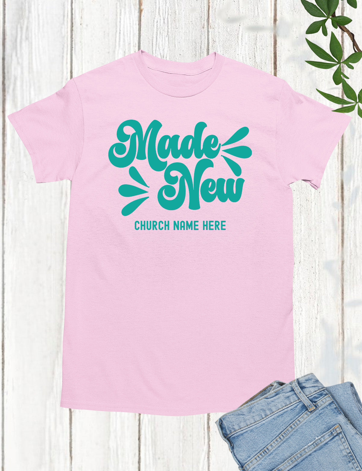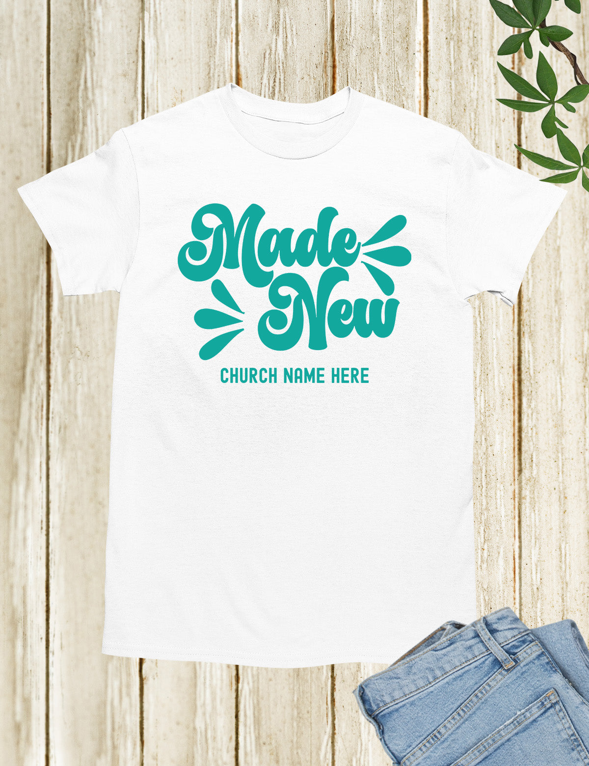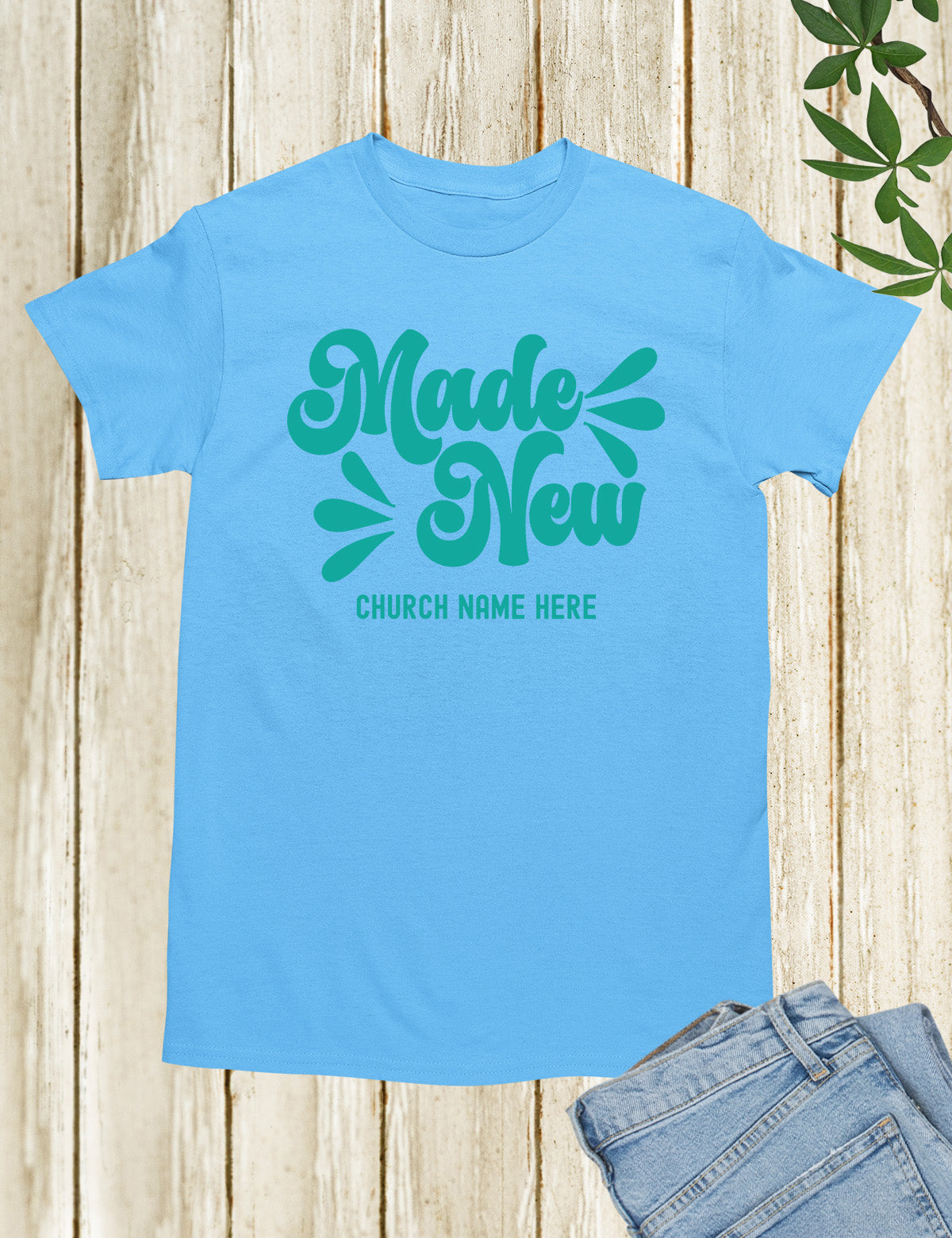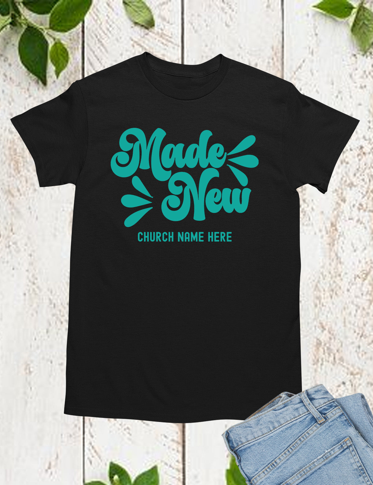 Introduce church officials and members to the new and innovative Made New Custom Church T Shirts. With a personalized design, these shirts are sure to make a statement while showcasing unity and pride within the congregation. The perfect way to showcase faith and togetherness.