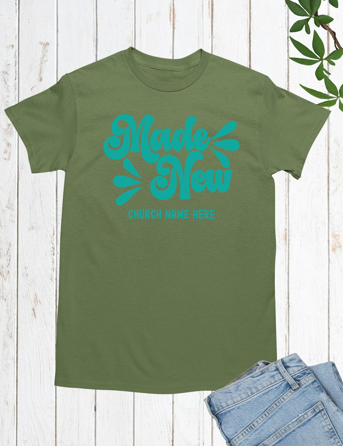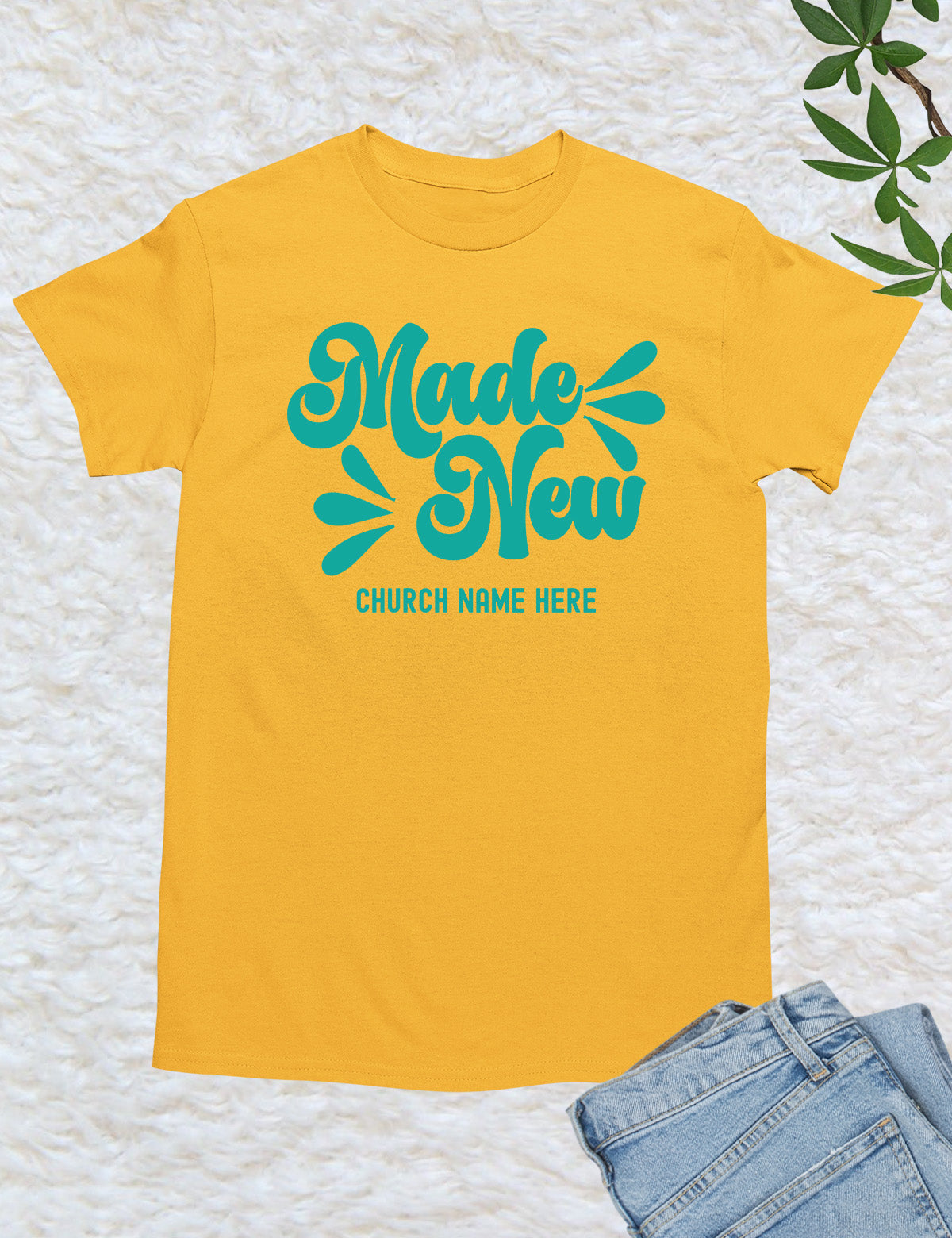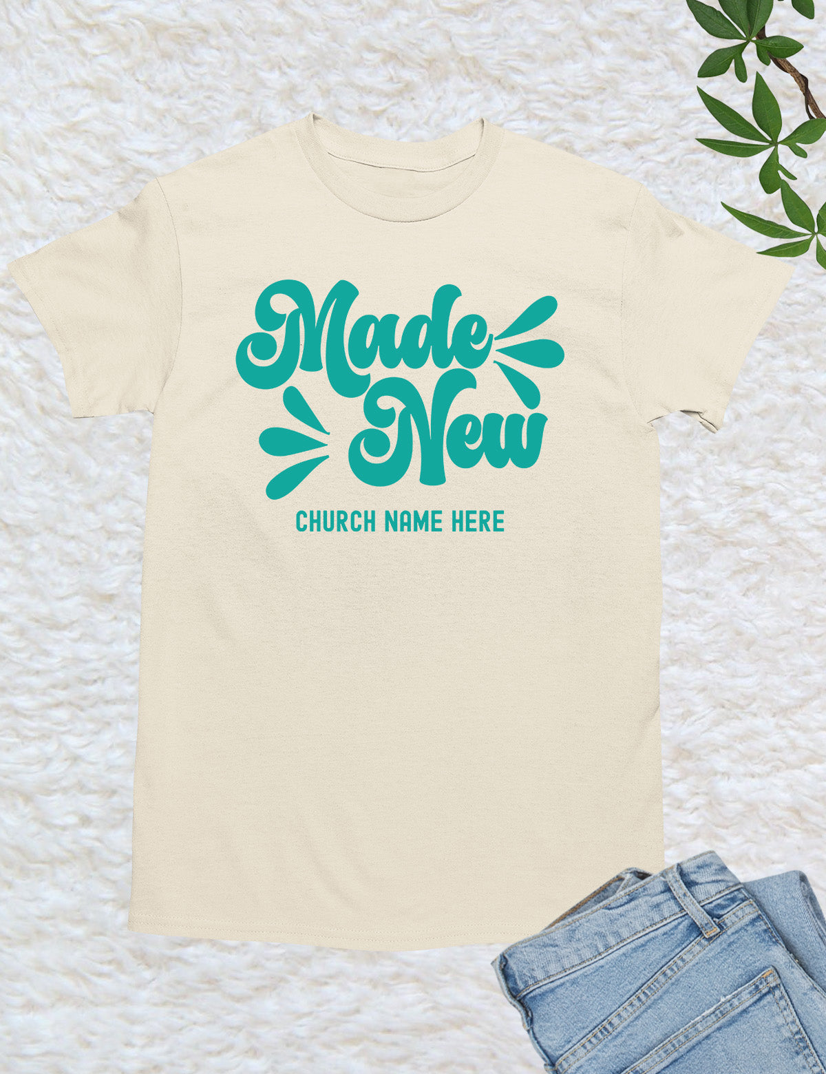 Introduce church officials and members to the new and innovative Made New Custom Church T Shirts. With a personalized design, these shirts are sure to make a statement while showcasing unity and pride within the congregation. The perfect way to showcase faith and togetherness.