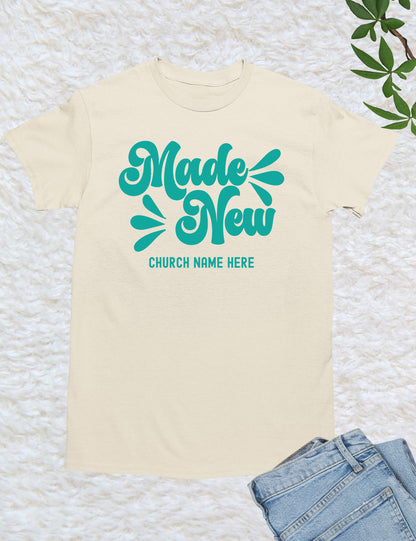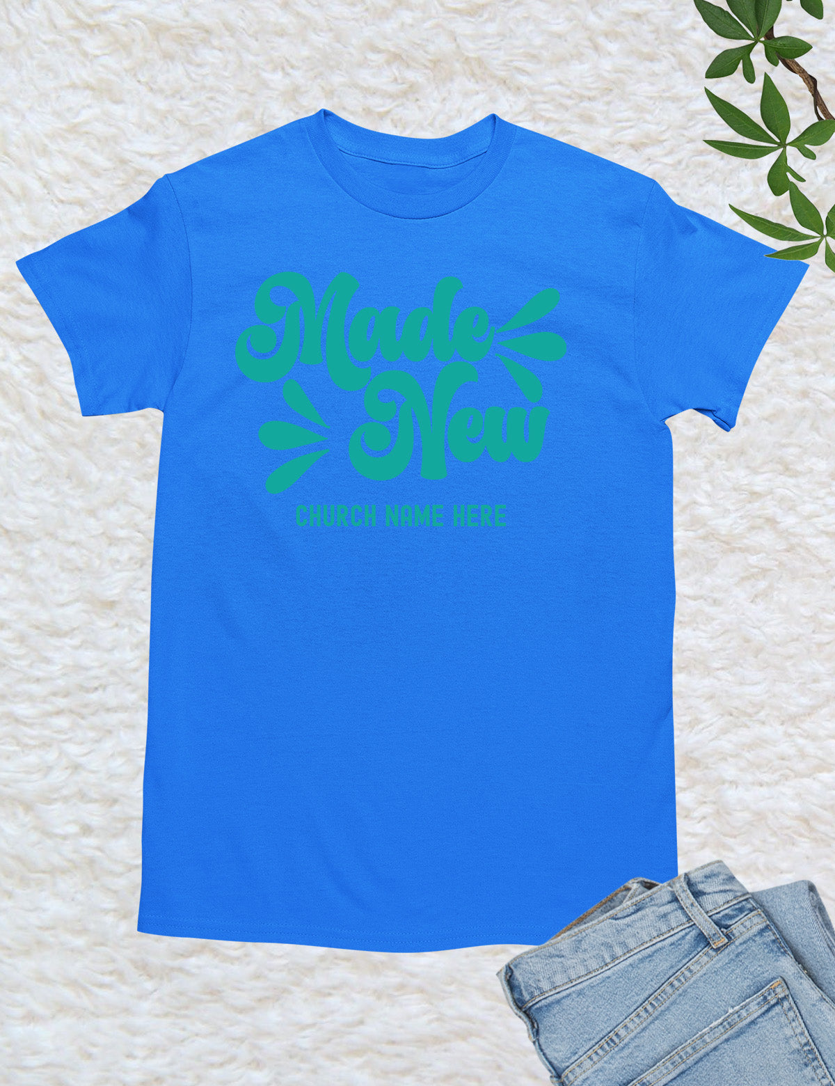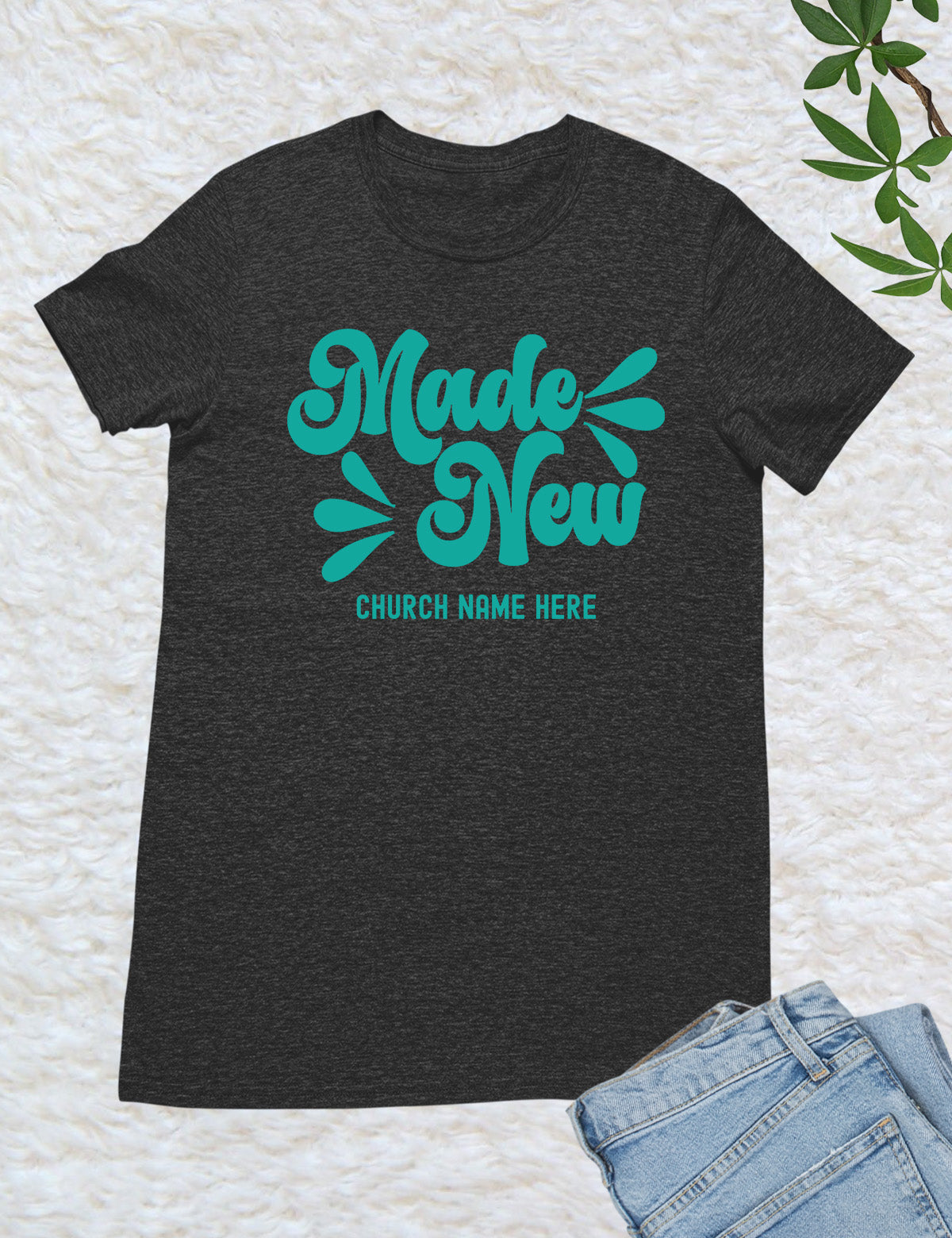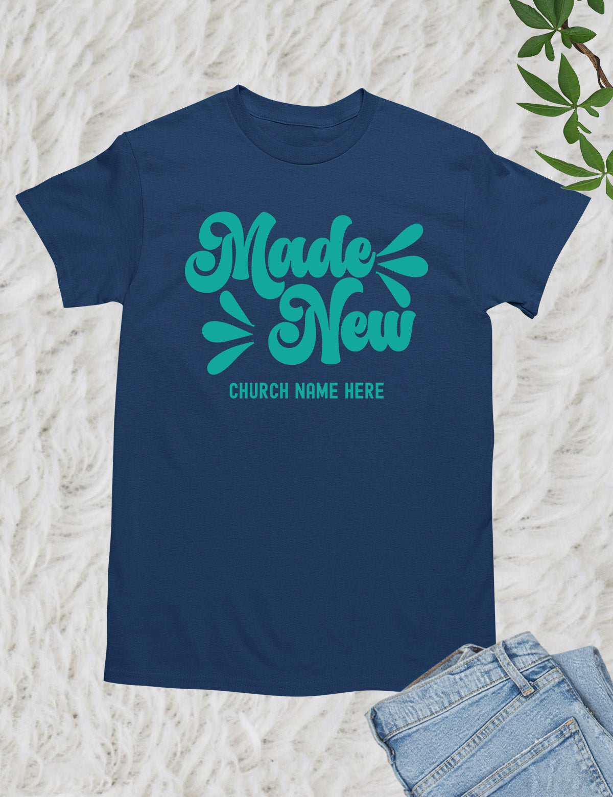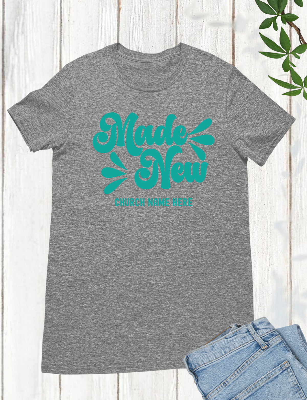 Introduce church officials and members to the new and innovative Made New Custom Church T Shirts. With a personalized design, these shirts are sure to make a statement while showcasing unity and pride within the congregation. The perfect way to showcase faith and togetherness.