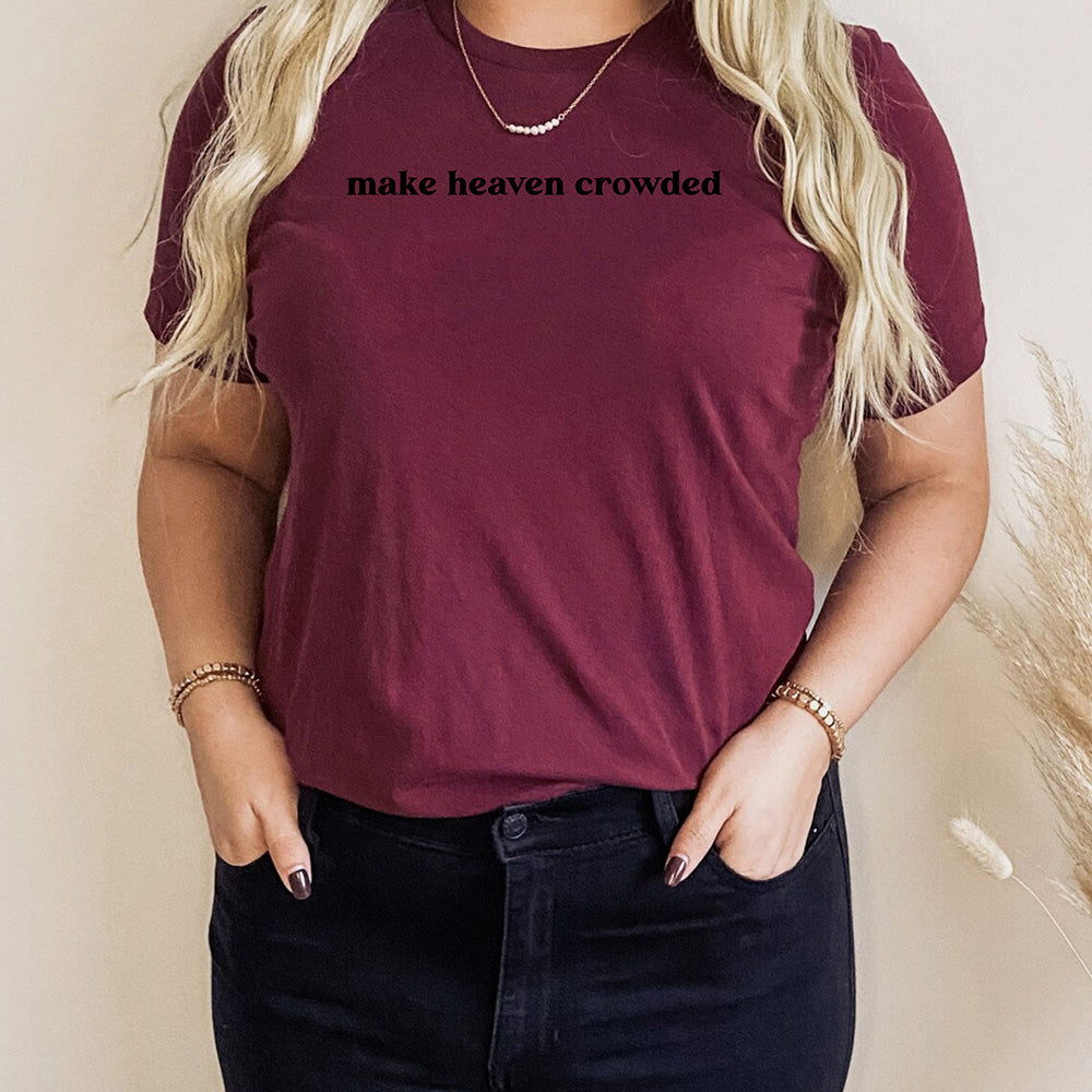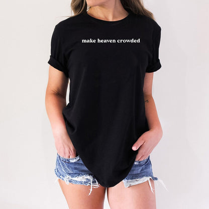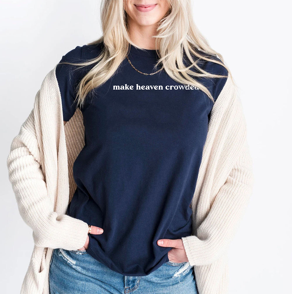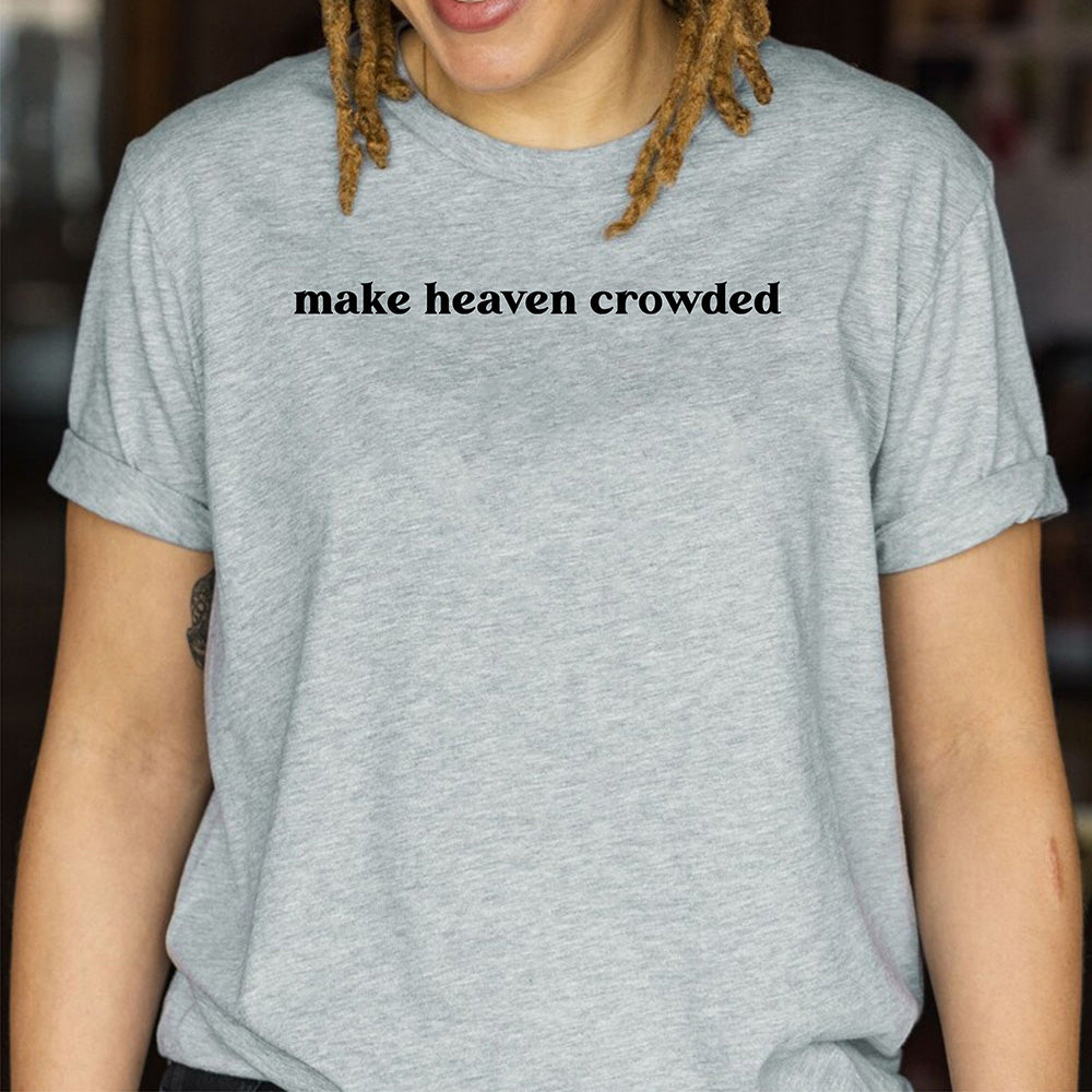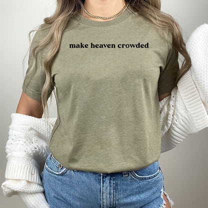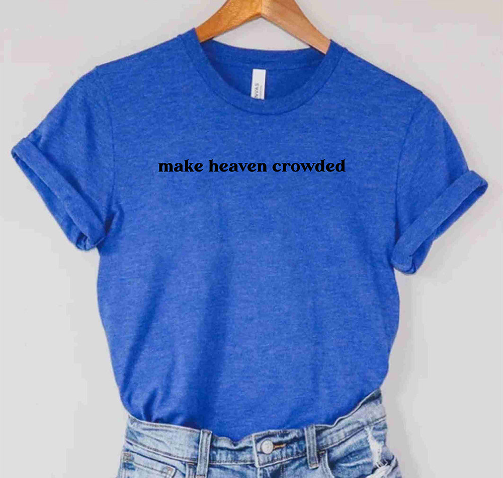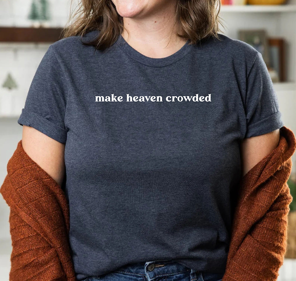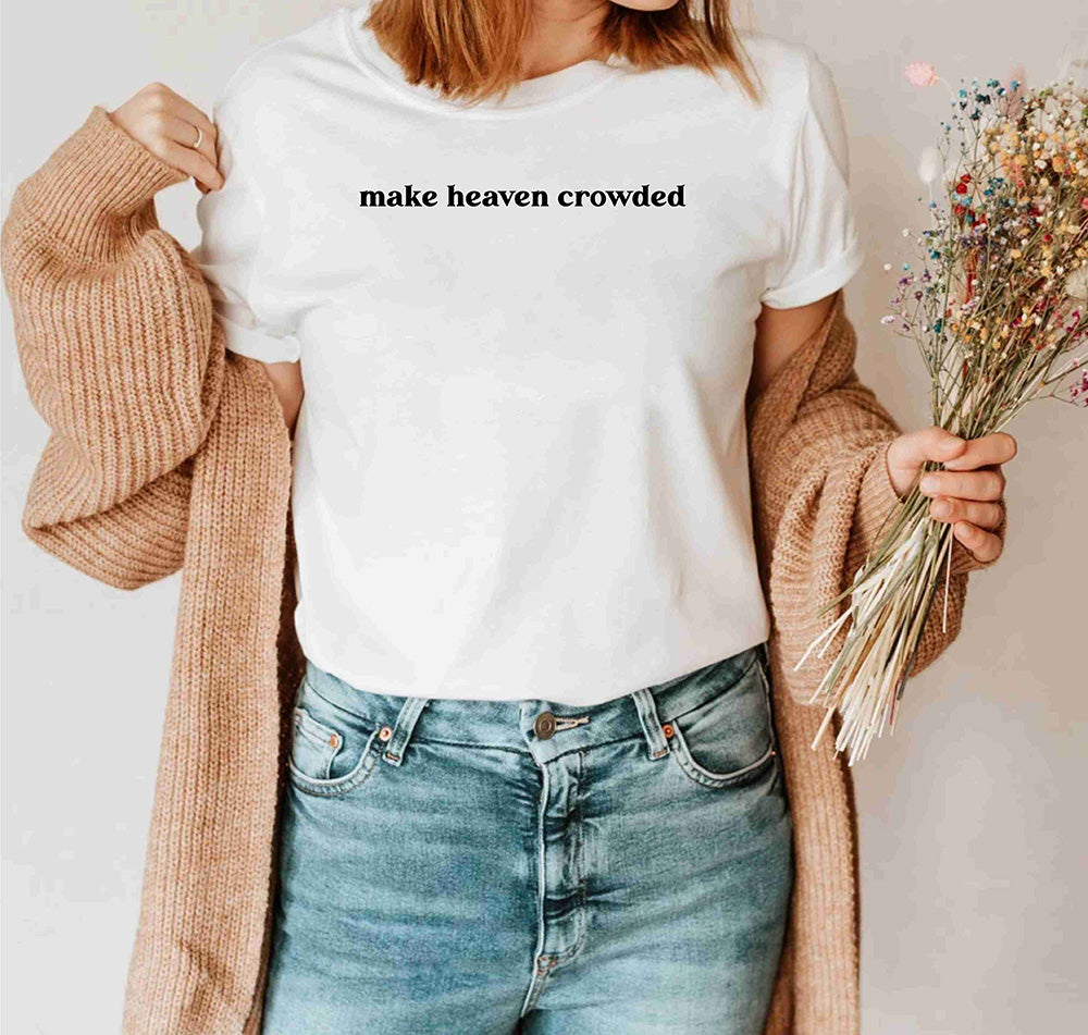 This custom shirt features a unique design with the words "Make Heaven Crowded" and a Faith Bible illustration. Perfect for anyone looking to show their religious beliefs in a stylish and personalized way. Made with high-quality materials for long-lasting wear.