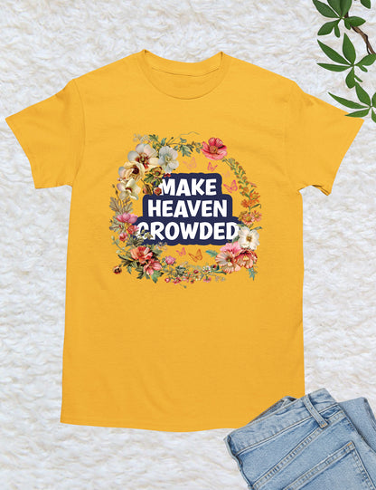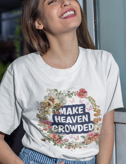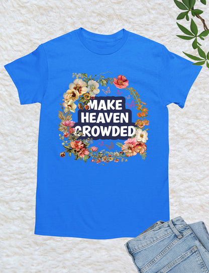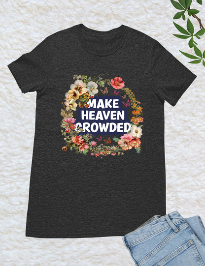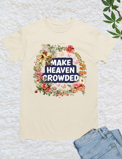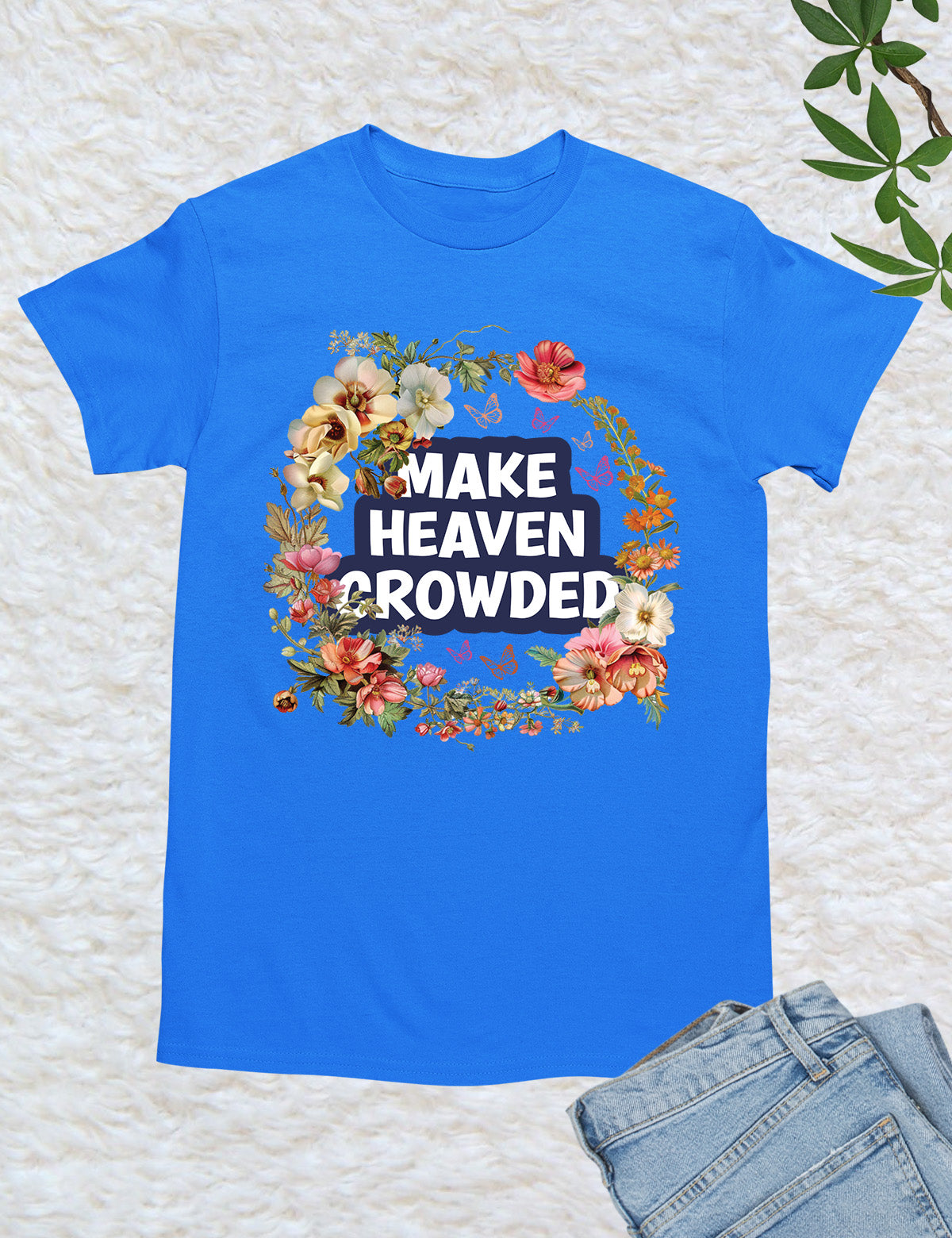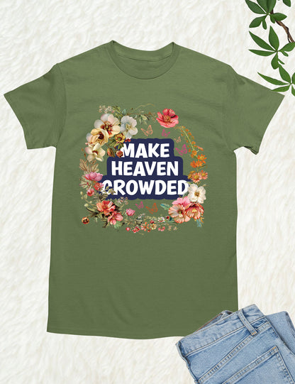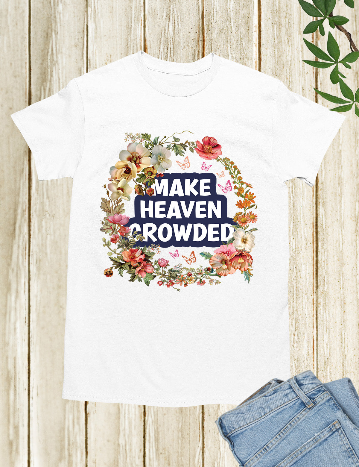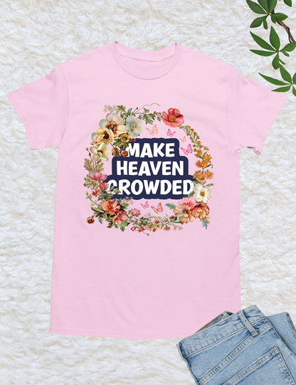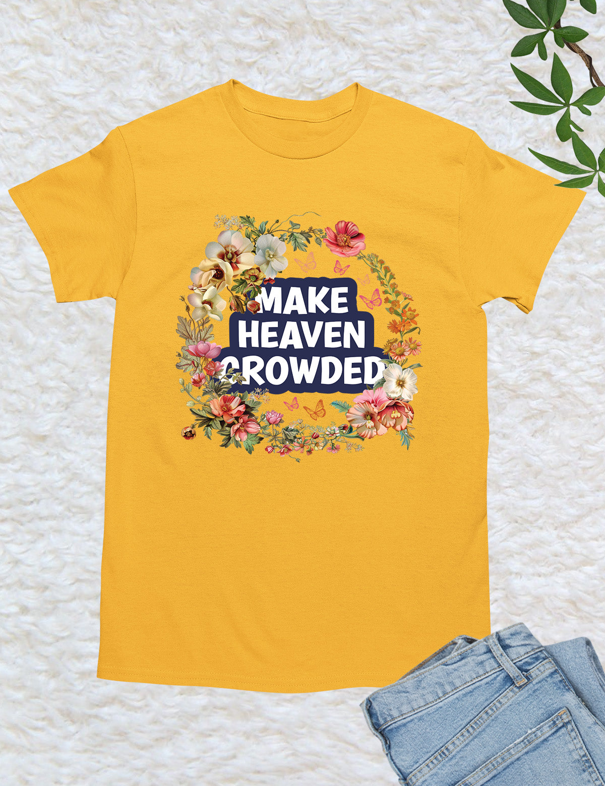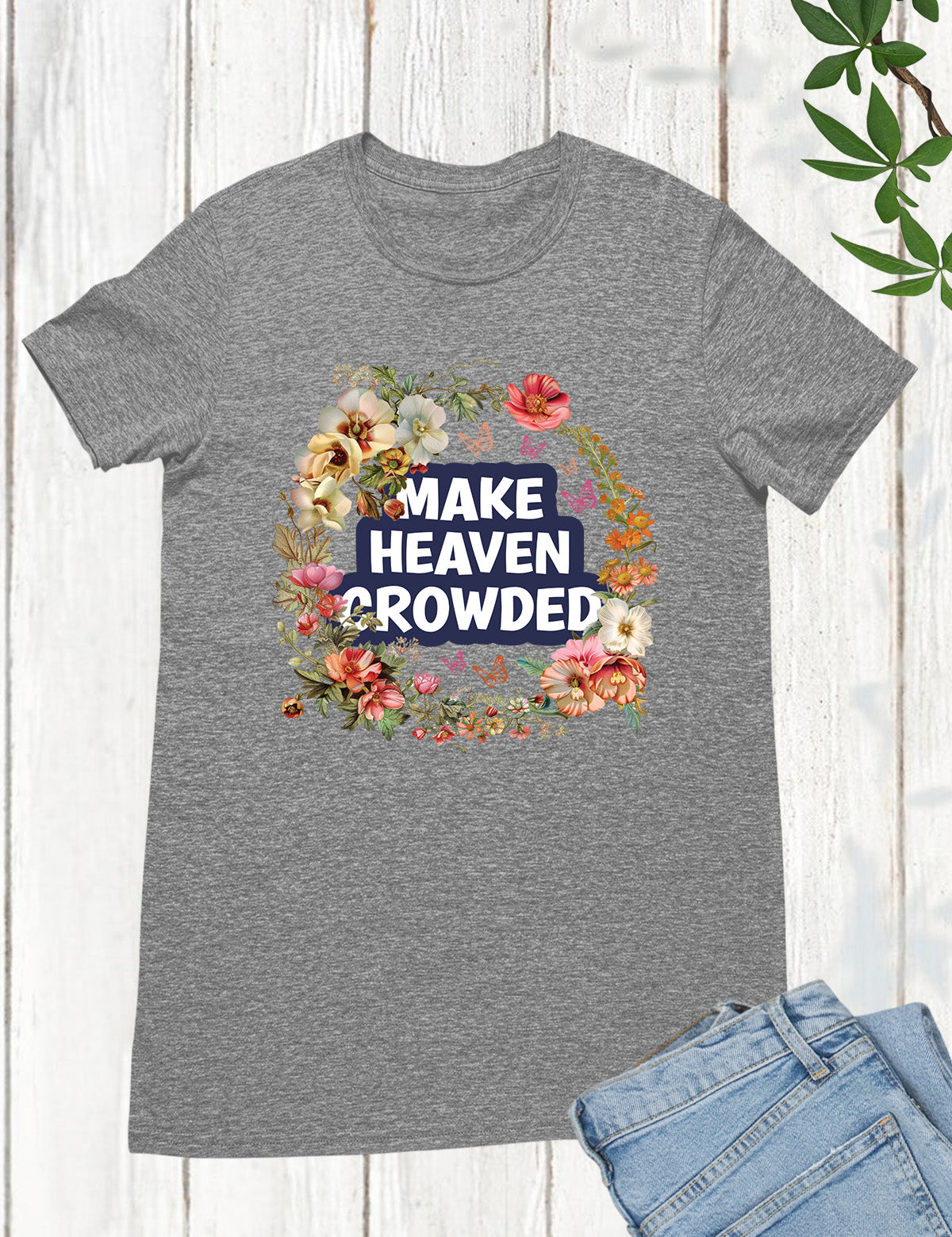 This Make Heaven Crowded Flower Wreath T Shirt features a beautiful design with a meaningful message. Made with high-quality material and expert craftsmanship, it offers both style and comfort. Perfect for everyday wear or special occasions, it's a must-have addition to any wardrobe. Show your love for nature and spread positivity with this one-of-a-kind shirt.