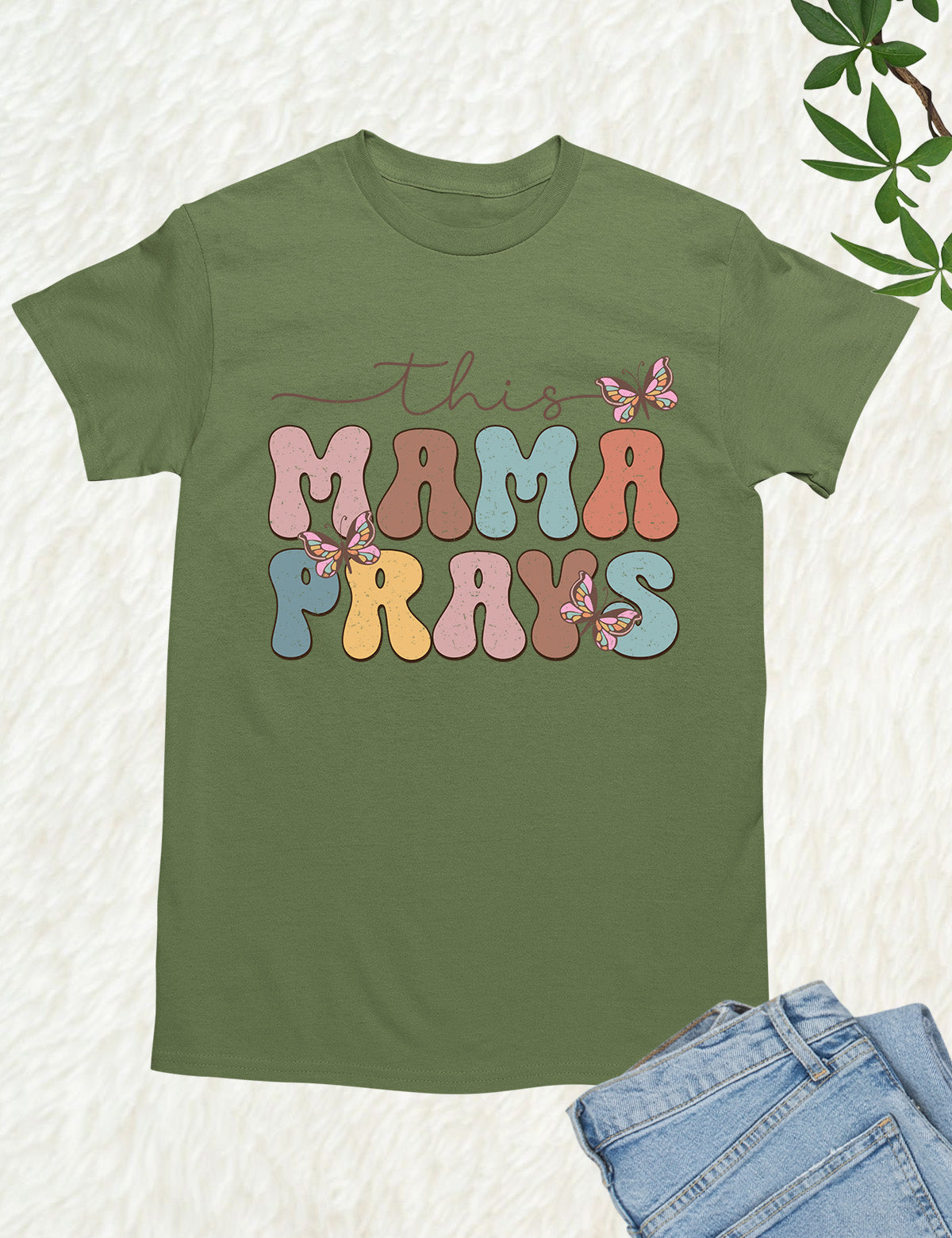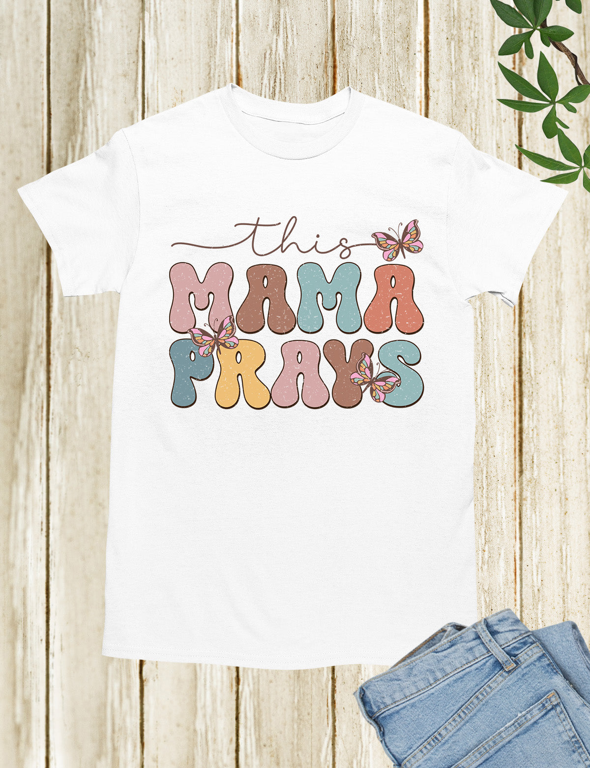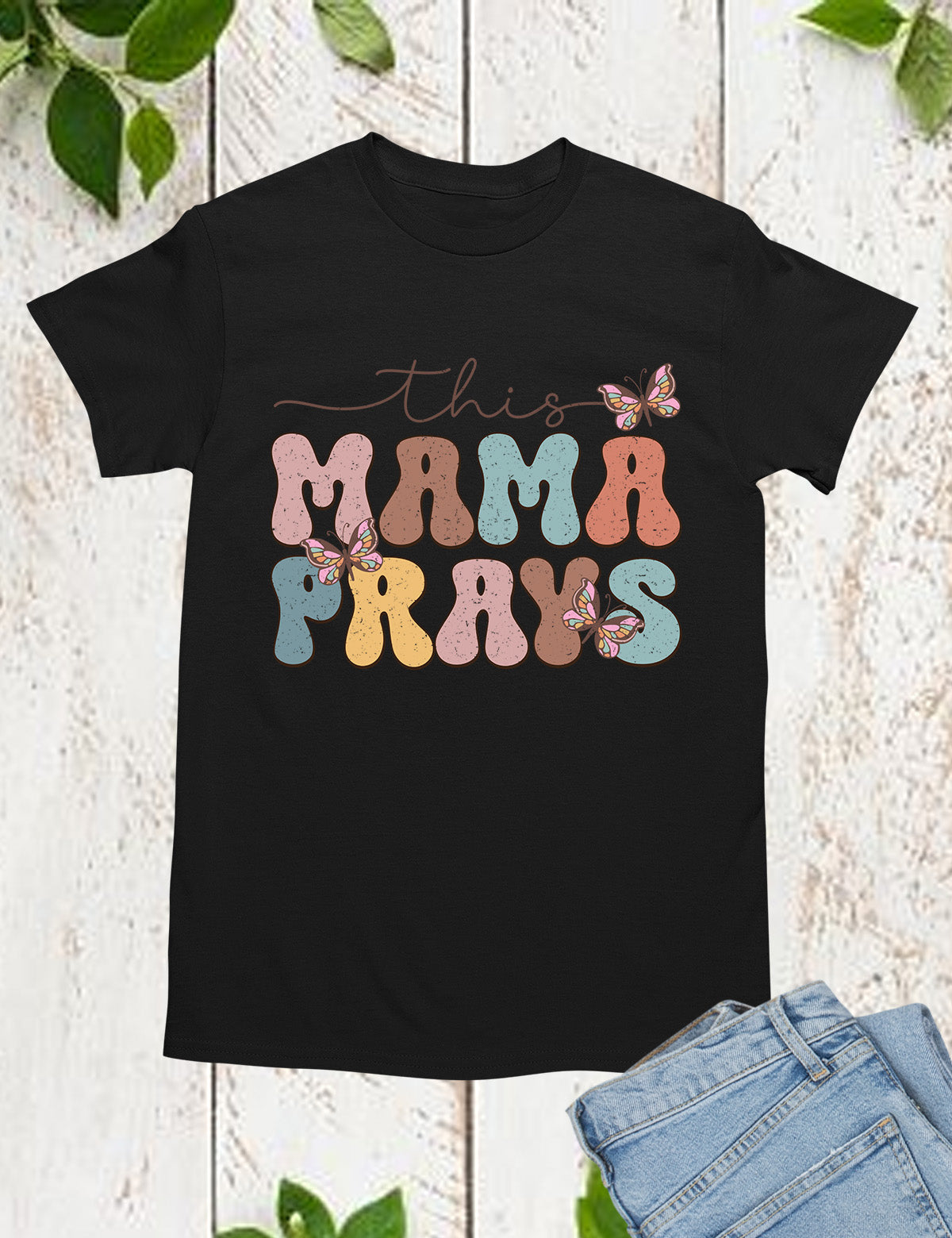 Present your love and appreciation with this Mama Prays Women T Shirt Gift. Showcasing a thoughtful design, this shirt is perfect for mothers who pray for their children's well-being. Made with comfortable fabric, make your mama feel loved and cherished while she wears this special gift.