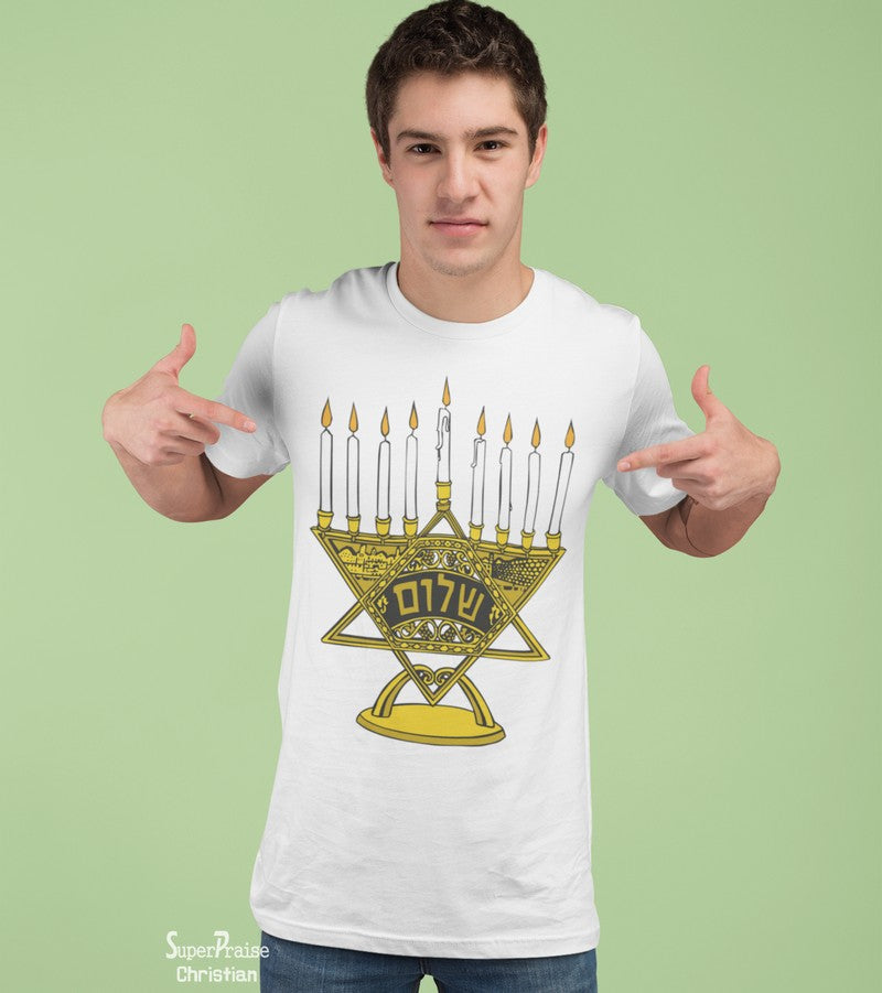 This Menorah Bible Verse T Shirt is the perfect addition to any wardrobe. Made of high-quality materials, it features a beautiful menorah design and a powerful Bible verse that will inspire and uplift. Show off your faith in style with this comfortable and meaningful shirt.