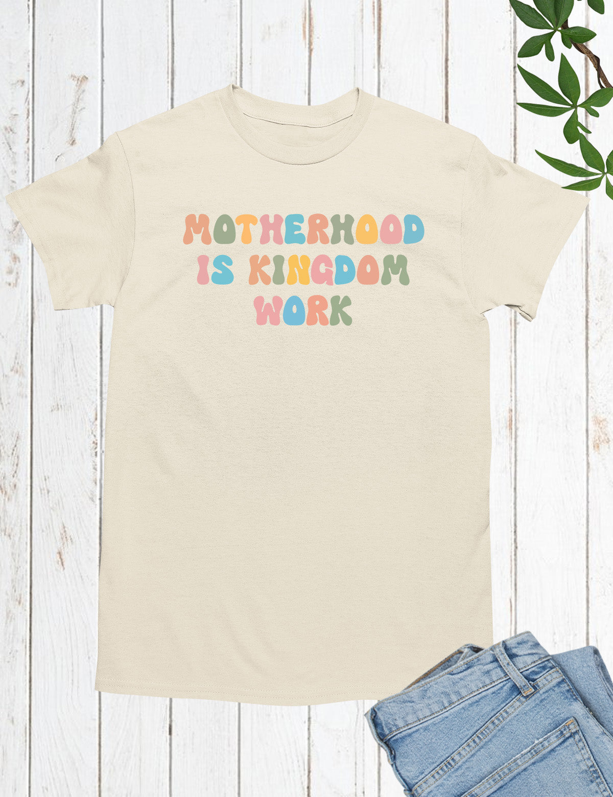 These stylish and comfortable Motherhood is Kingdom Work Shirts are perfect for any mom on the go. With a flattering fit and soft, durable fabric, these shirts are ideal for everyday wear. Plus, they showcase your dedication to both motherhood and your faith. Elevate your wardrobe with these empowering shirts.