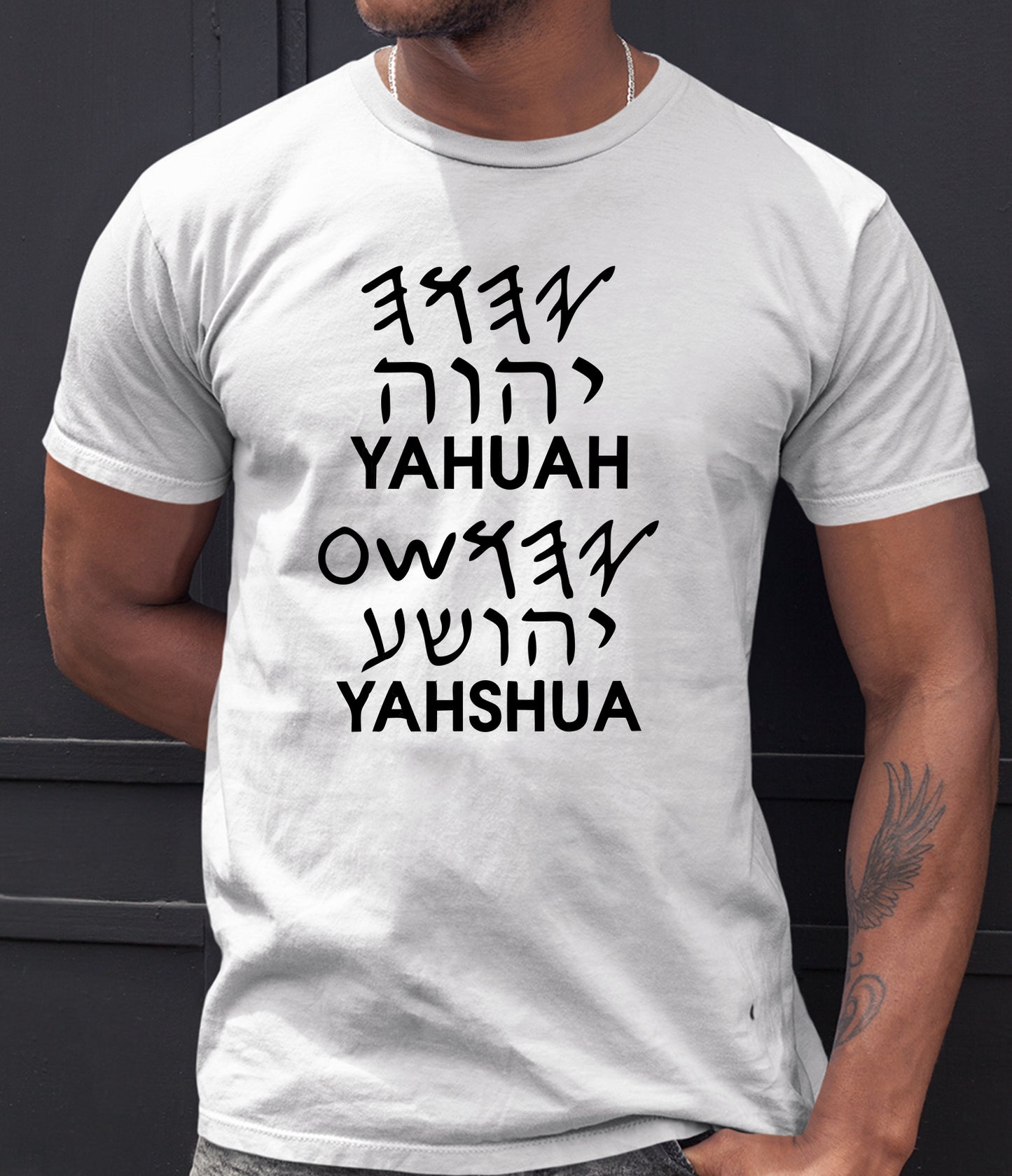 Show your faith with our Name YAHWEH YAHSHUA Paleo Hebrew T Shirt. Made with premium materials and featuring the Paleo Hebrew script, this shirt is a unique and powerful way to profess your belief. Perfect for everyday wear and as a conversation starter among fellow believers.