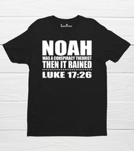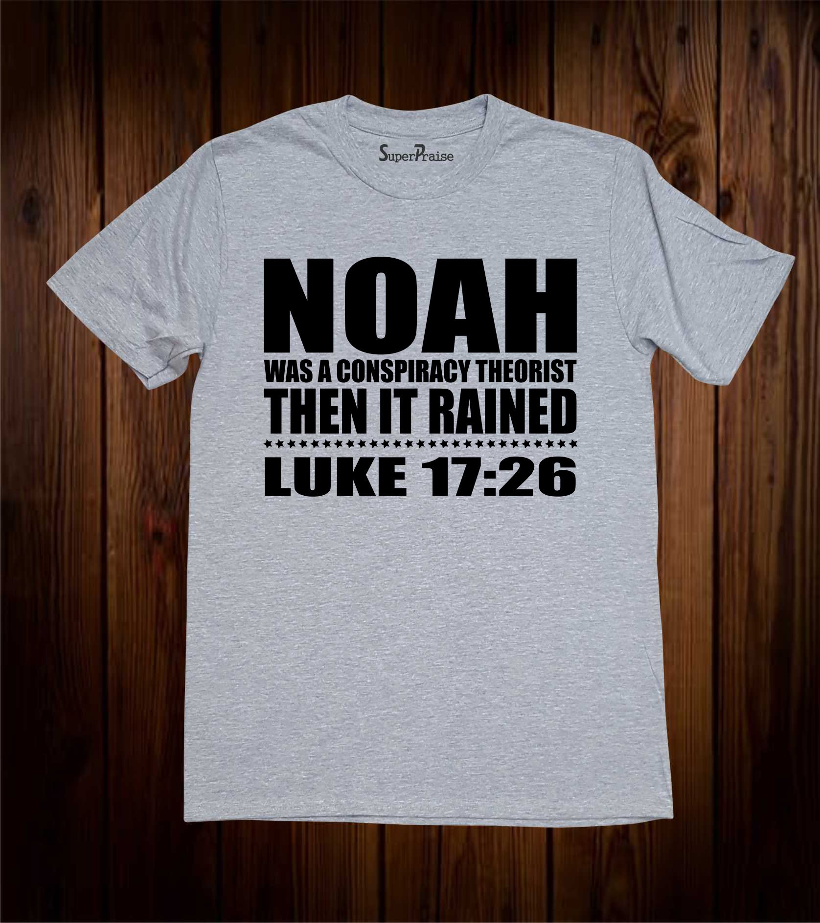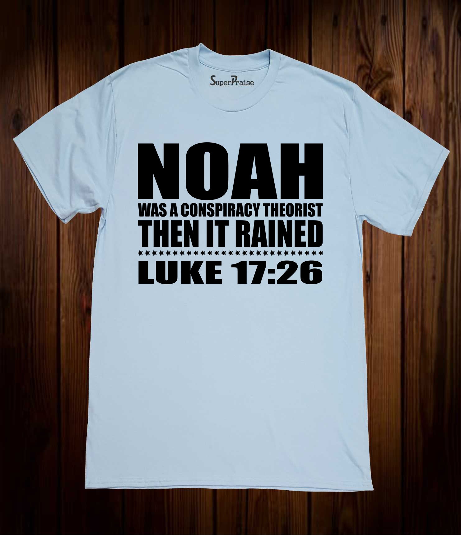 Introducing the Noah Conspiracy Theorist Christian T-shirt. Designed with high-quality materials, this shirt embodies expert craftsmanship and comfort. With its eye-catching design, this shirt is perfect for those who embrace a different perspective and wish to share their beliefs. Join the conversation and let your shirt do the talking.