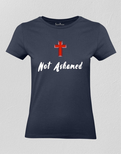 Christian Women T shirt Never Ashamed Christian Symbol Holy God Cross