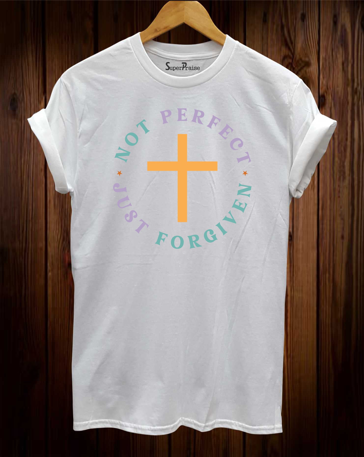 Not Perfect Just Forgiven Jesus Bible Verse Quotes Faith Based T-Shirt