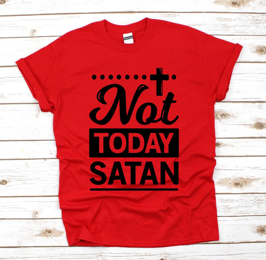 This stylish t-shirt is perfect for anyone looking to make a statement. Made with high-quality material, it features a bold "Not Today Satan" design that is sure to turn heads. With its comfortable fit and unique design, it's a must-have for any fashion-forward individual. Show off your style and attitude with this one-of-a-kind t-shirt.