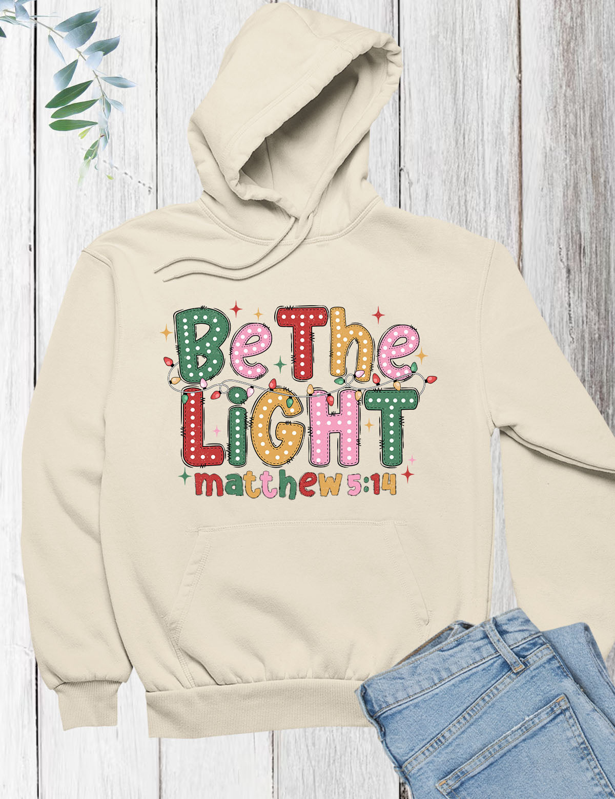 This Christmas Be The Light Hoodie is the perfect addition to your holiday wardrobe. Made with high-quality materials, this hoodie features a festive design that lights up, spreading holiday cheer wherever you go. Stay warm and stylish while showing your love for the season.